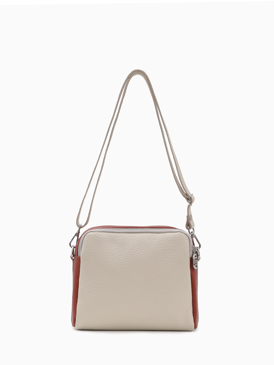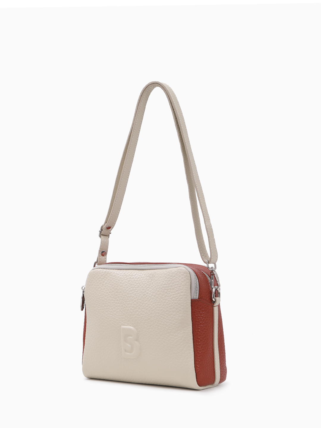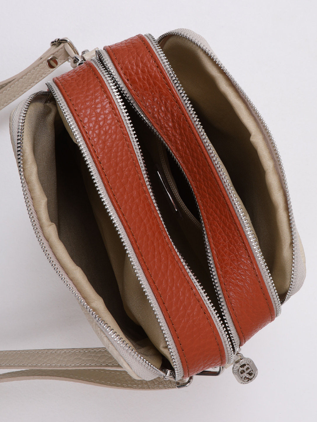 Кросс-боди с тремя отделениями и рельефной монограммой Sara Burglar в сочетании бежевого и рыжего оттенков
