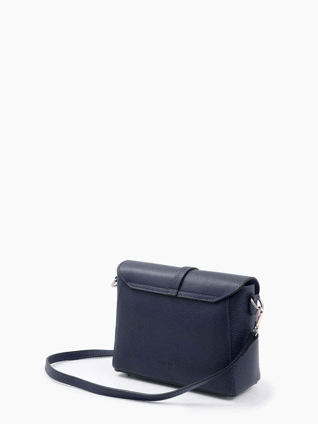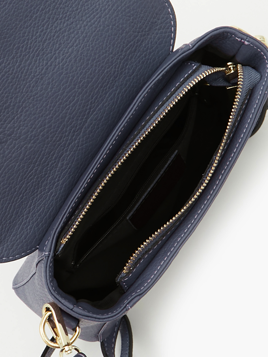 Кросс-боди на плечо с полукруглым клапаном и золотистой фурнитурой от FOLLE в тёмно-синем оттенке