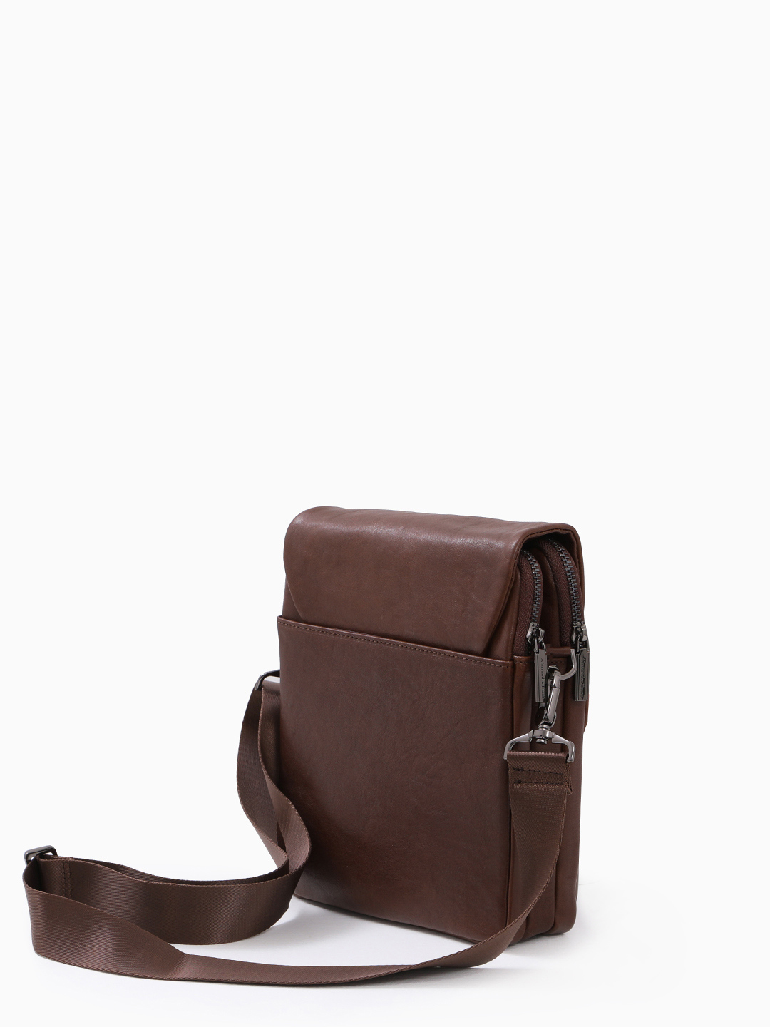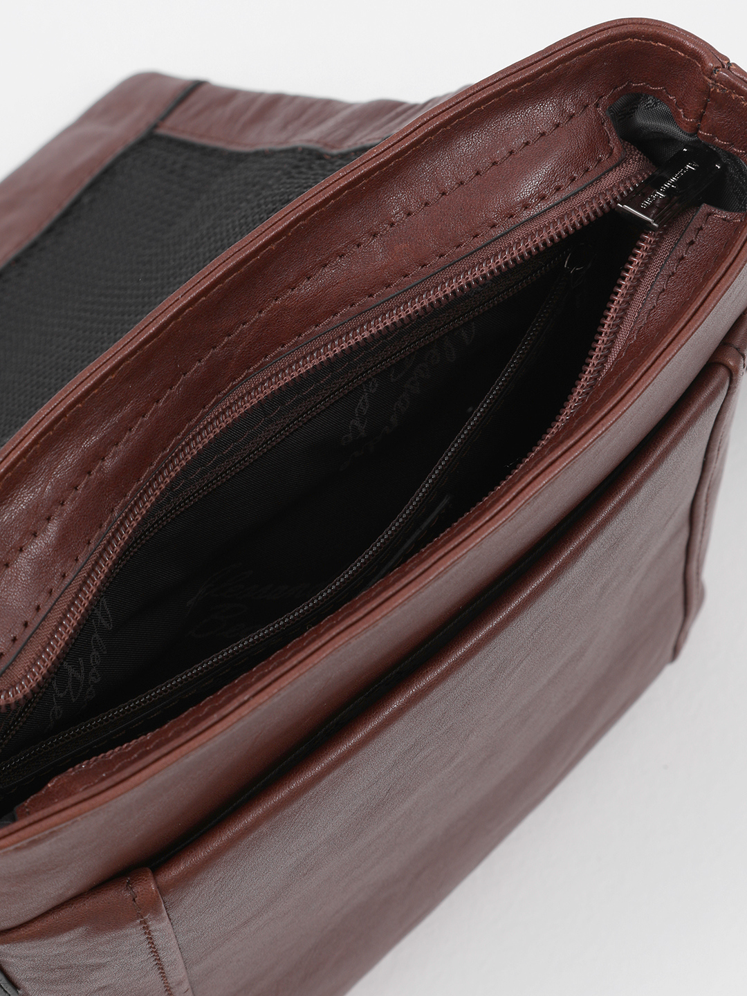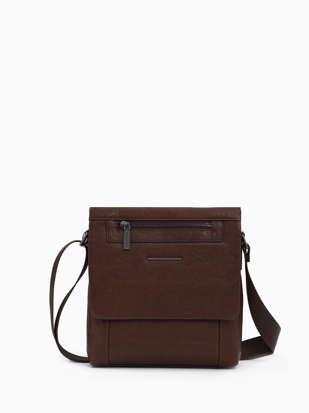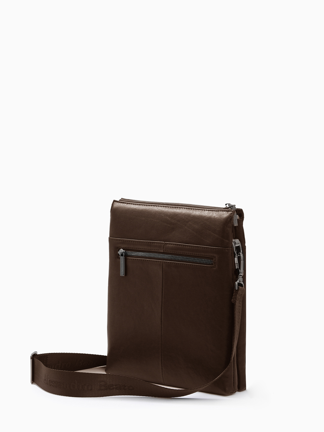 Сумка-планшет с передним клапаном с карманом на молнии в винтажной коже коричневого цвета от Alessandro Beato