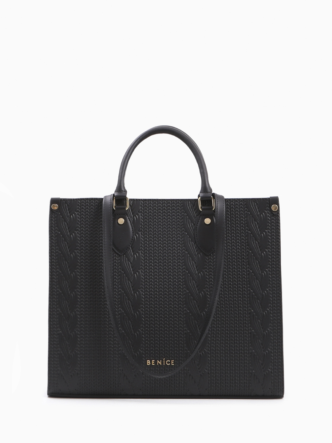 Сумка-шоппер "Polly" с двумя парами ручек и объёмным тиснением от BE NICE в чёрном цвете