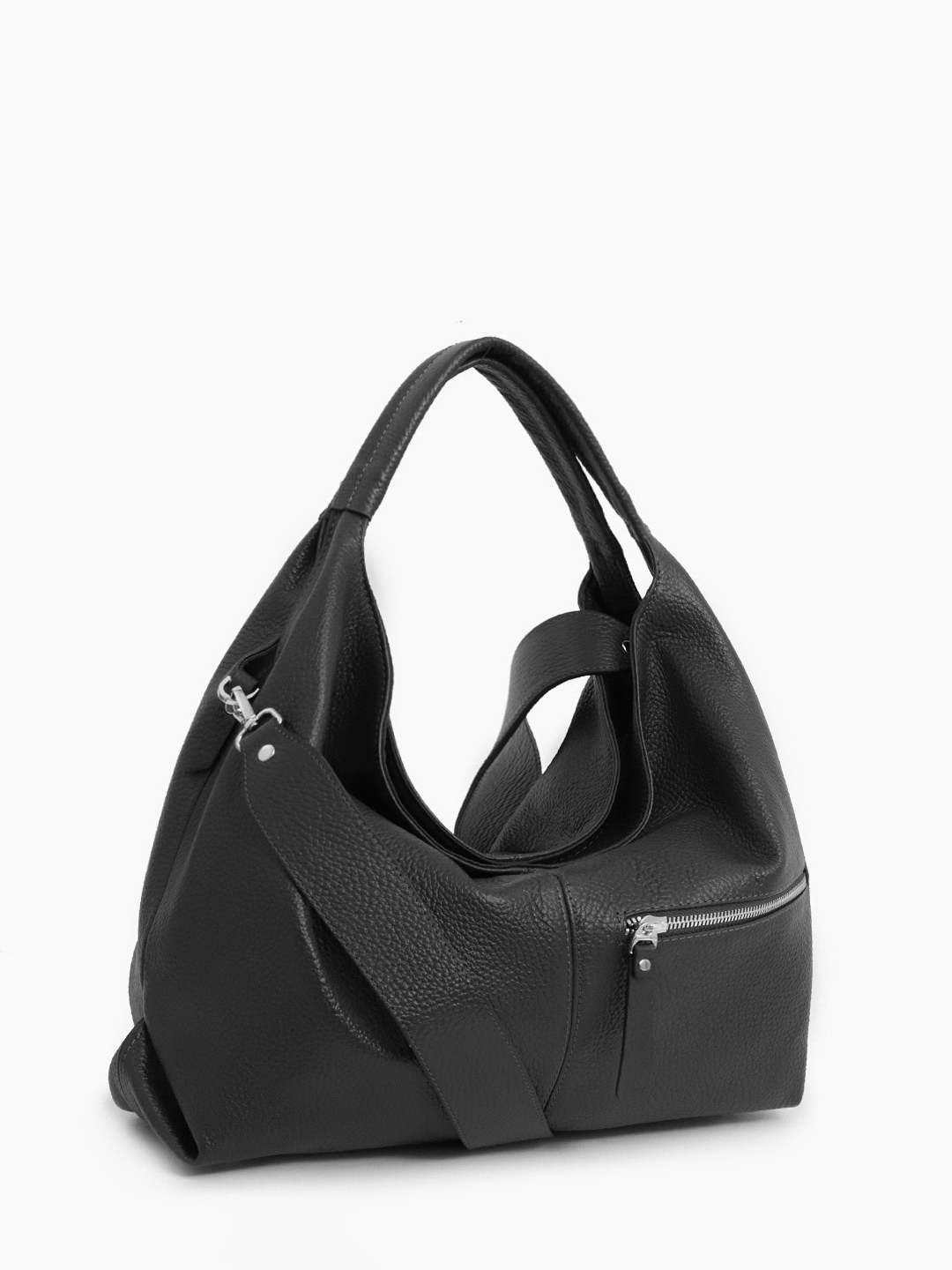 Сумка-хобо с дополнительным карманом и длинным плечевым ремнём от FOLLE чёрного цвета