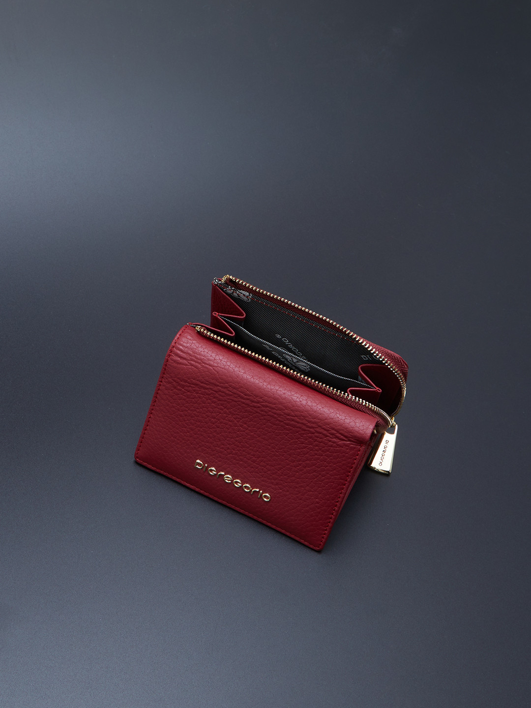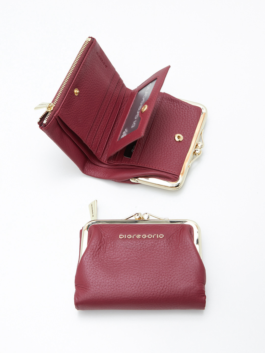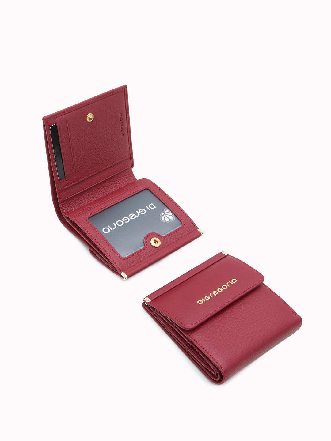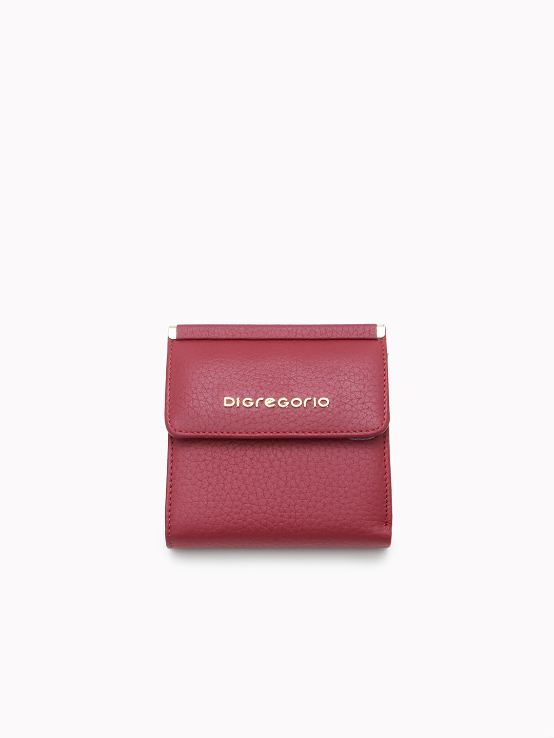 Миниатюрный кошелёк с золотистой фурнитурой и логотипом Di Gregorio из кожи бордового цвета