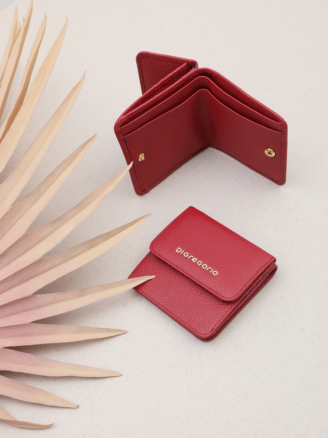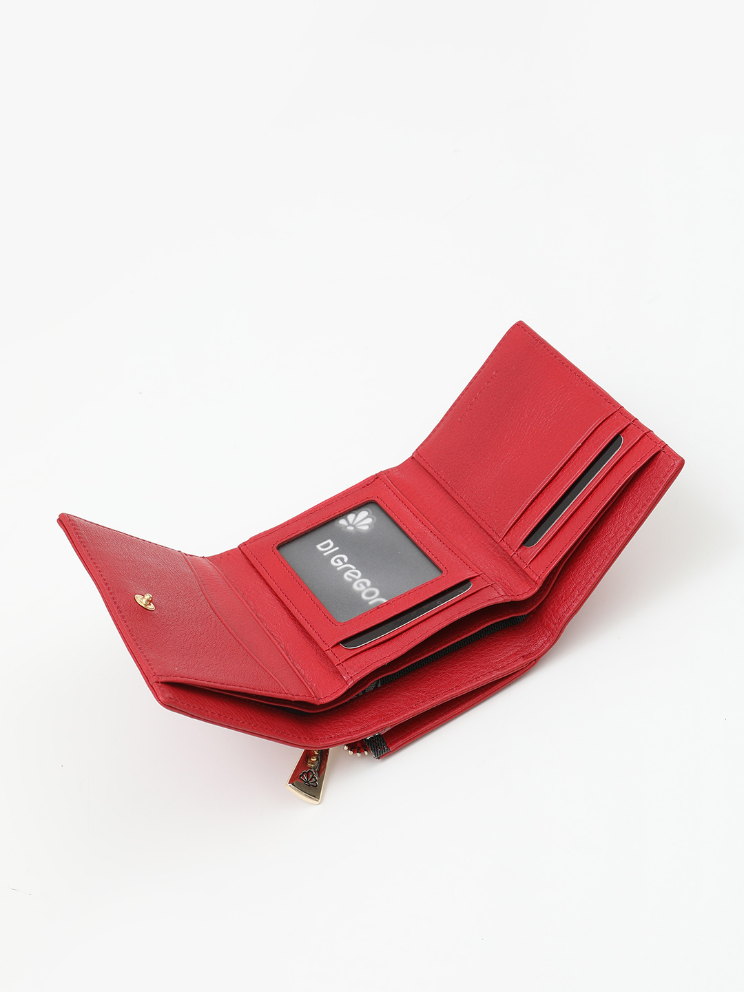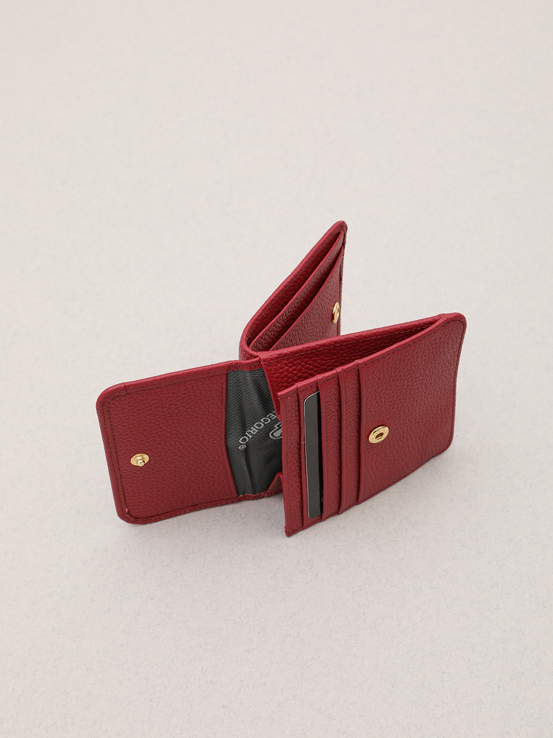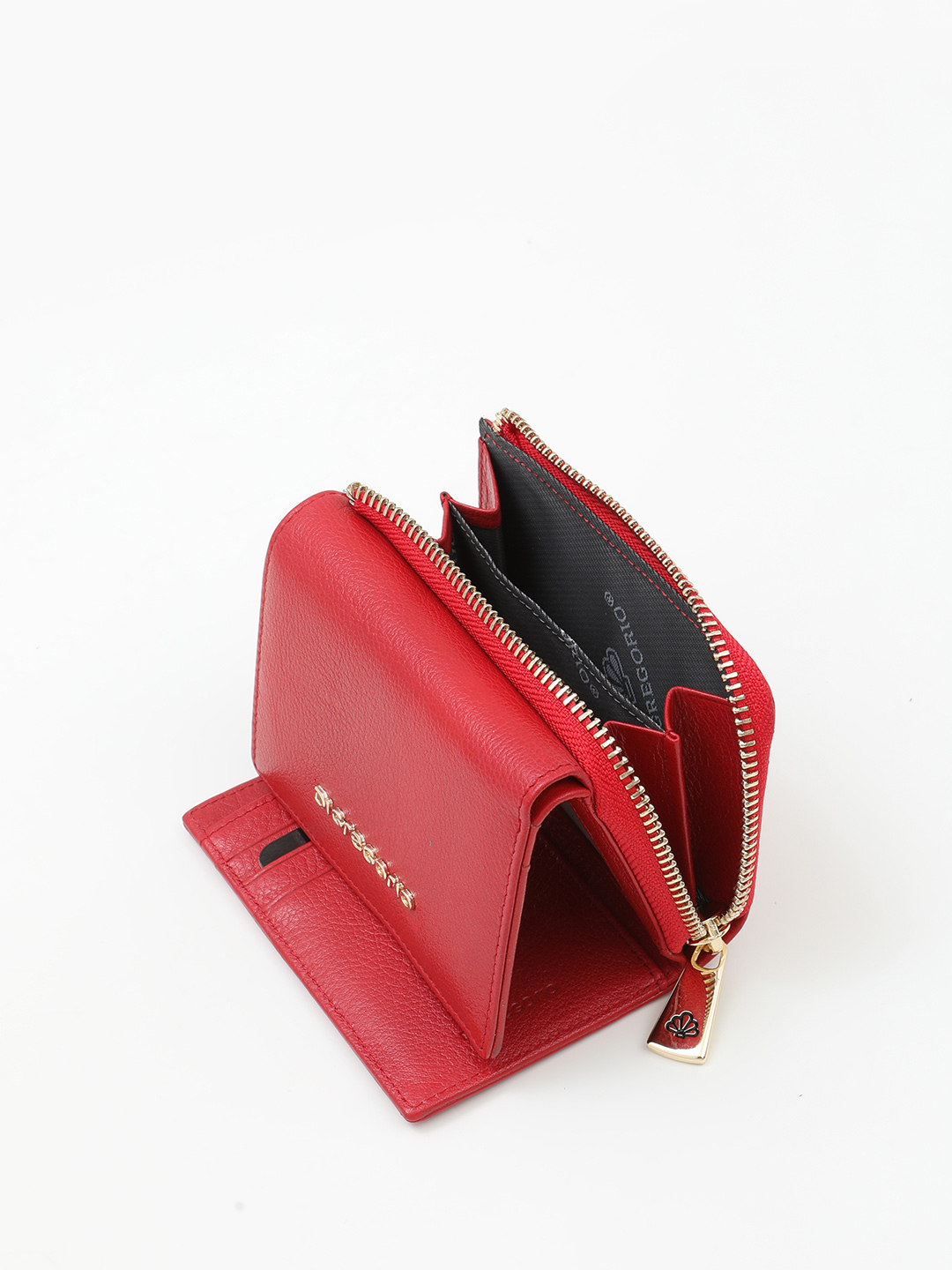 Миниатюрный кошелёк с золотистой фурнитурой и логотипом Di Gregorio из кожи бордового цвета