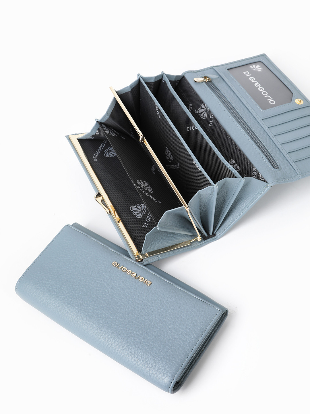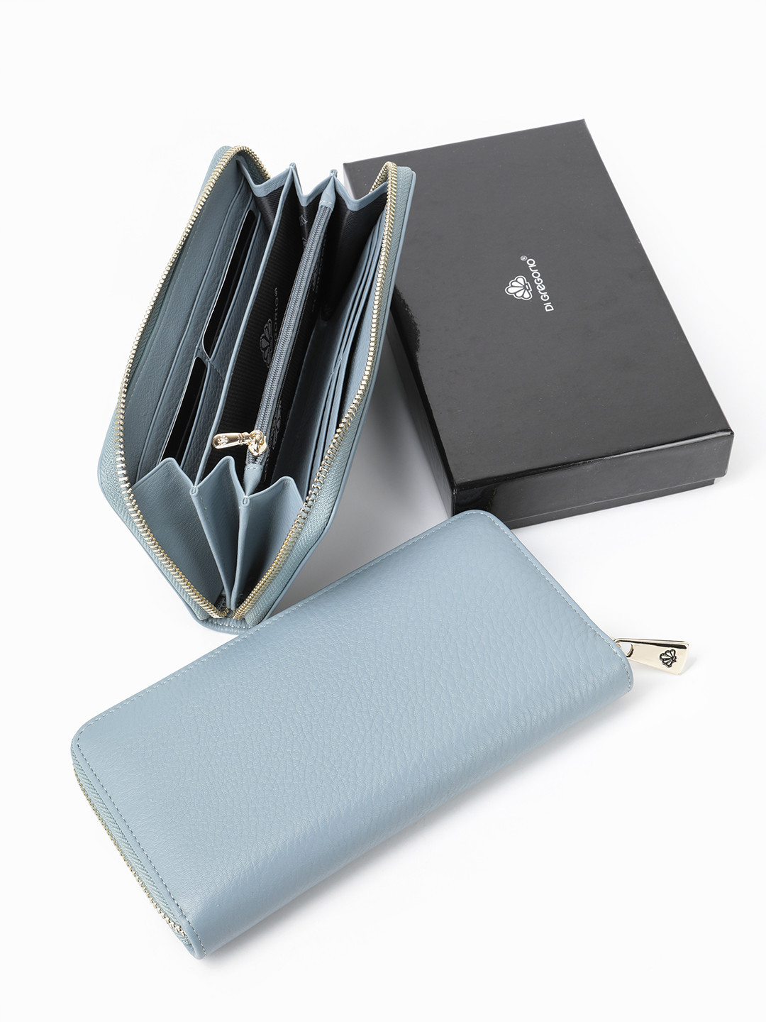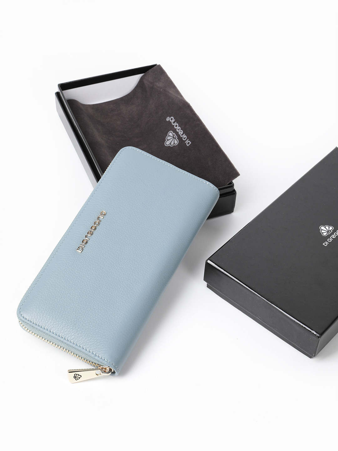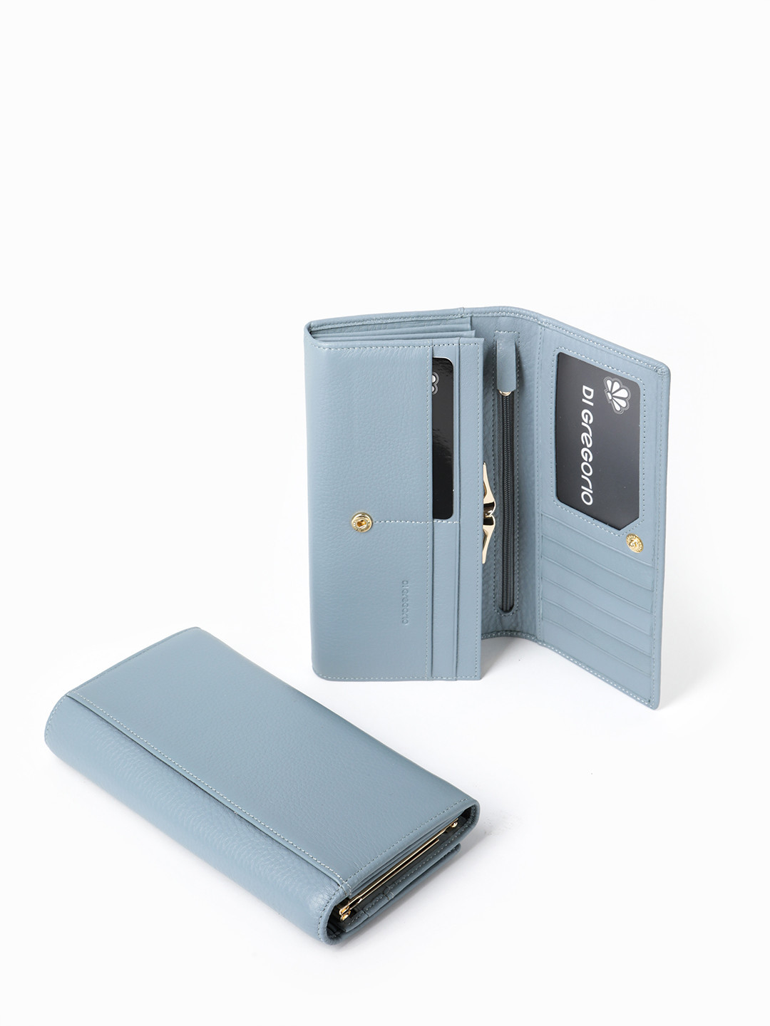Прямоугольный кошелёк из натуральной кожи голубого цвета от Di Gregorio