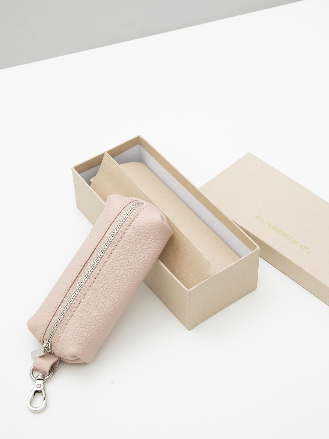 Ключница в пудровом цвете от Alessandro Beato из натуральной кожи с серебристой фурнитурой