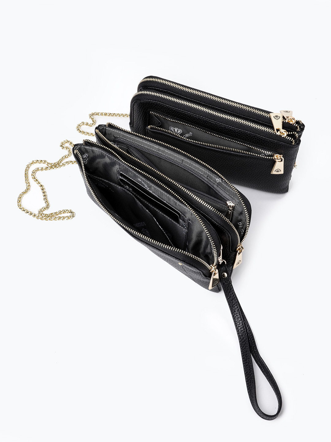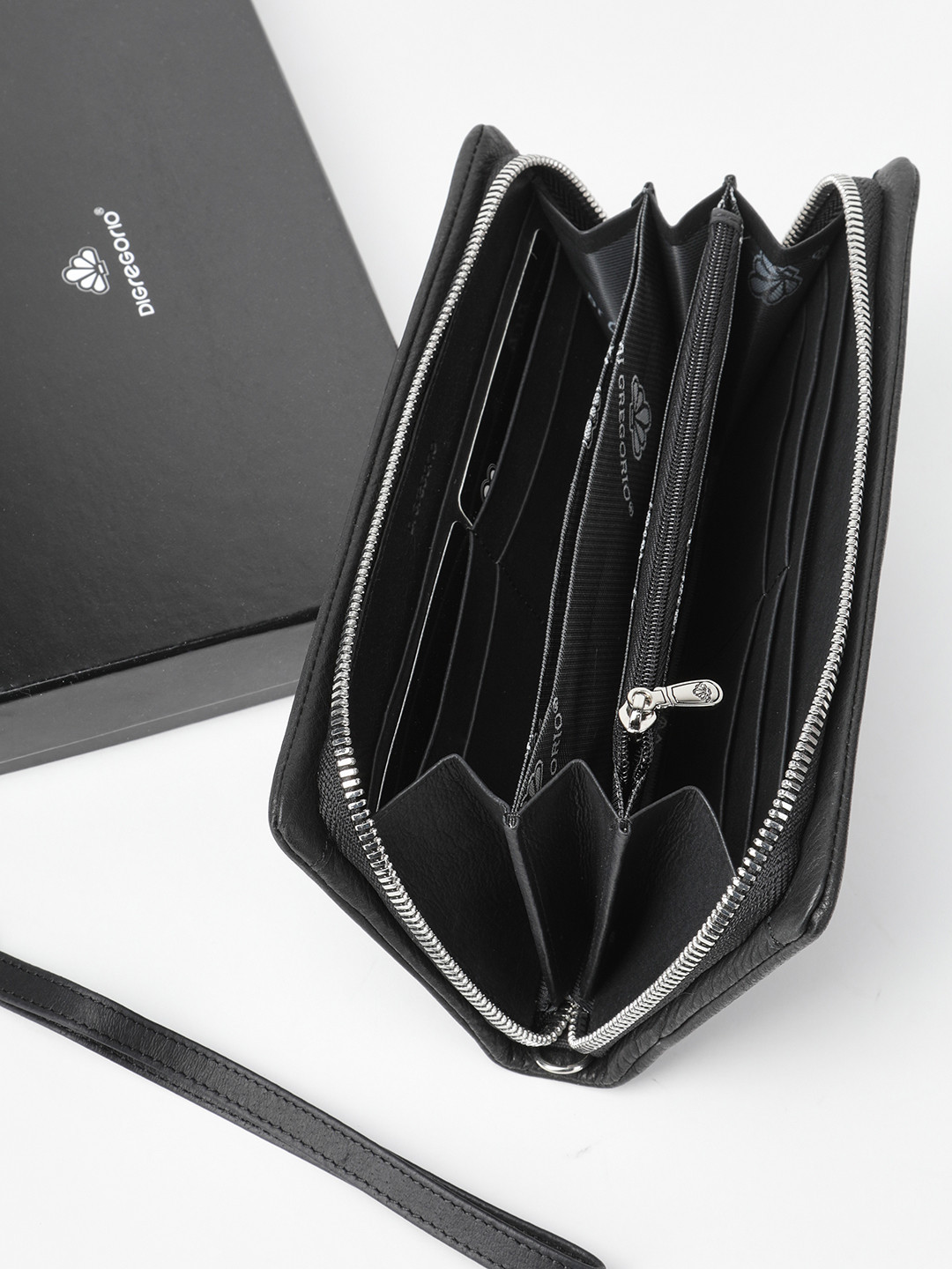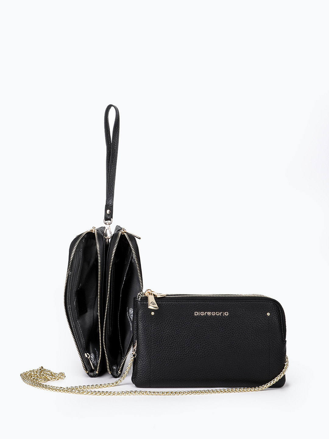Кошелёк-сумка с металлической гравировкой Di Gregorio в черном цвете