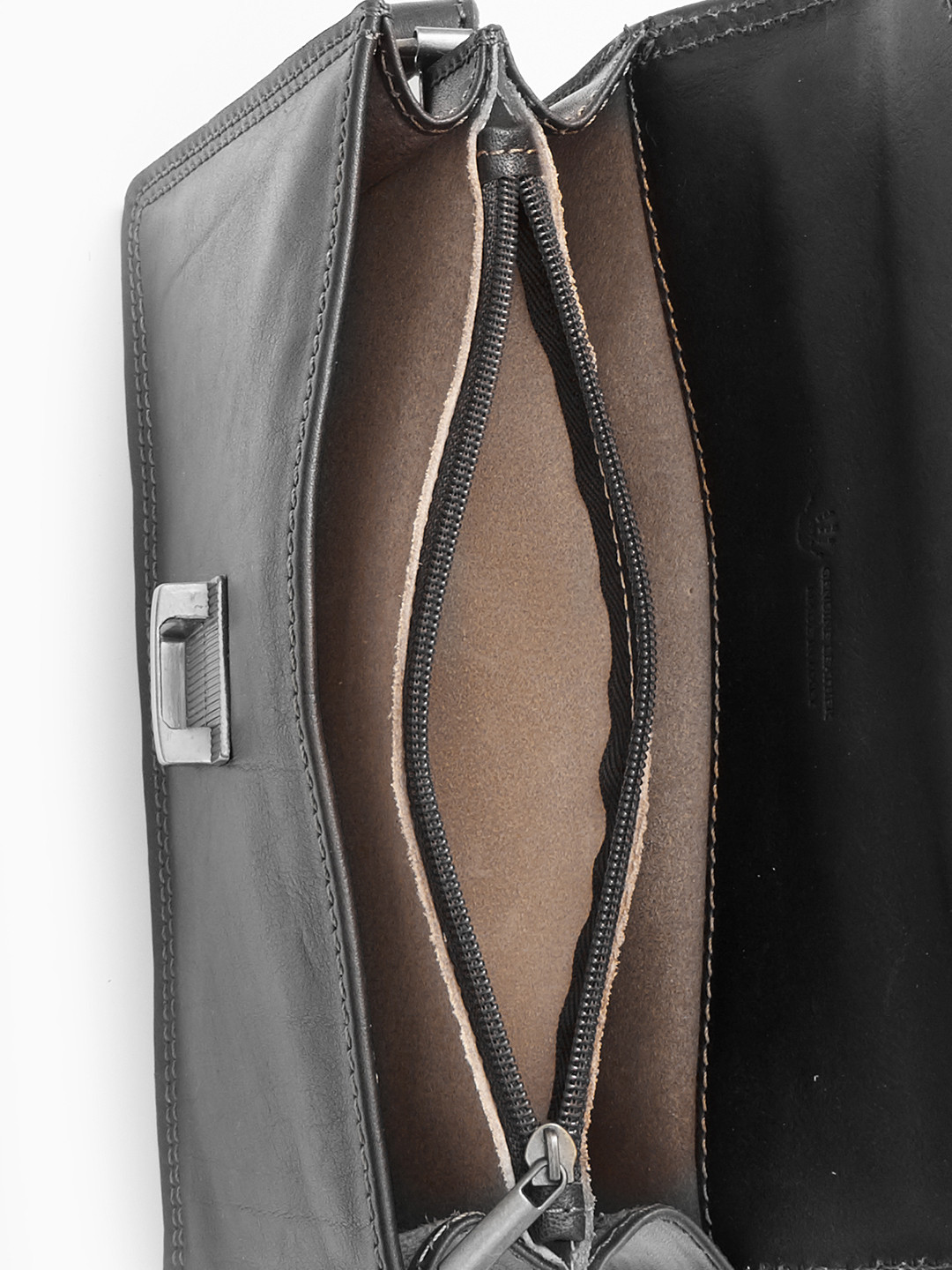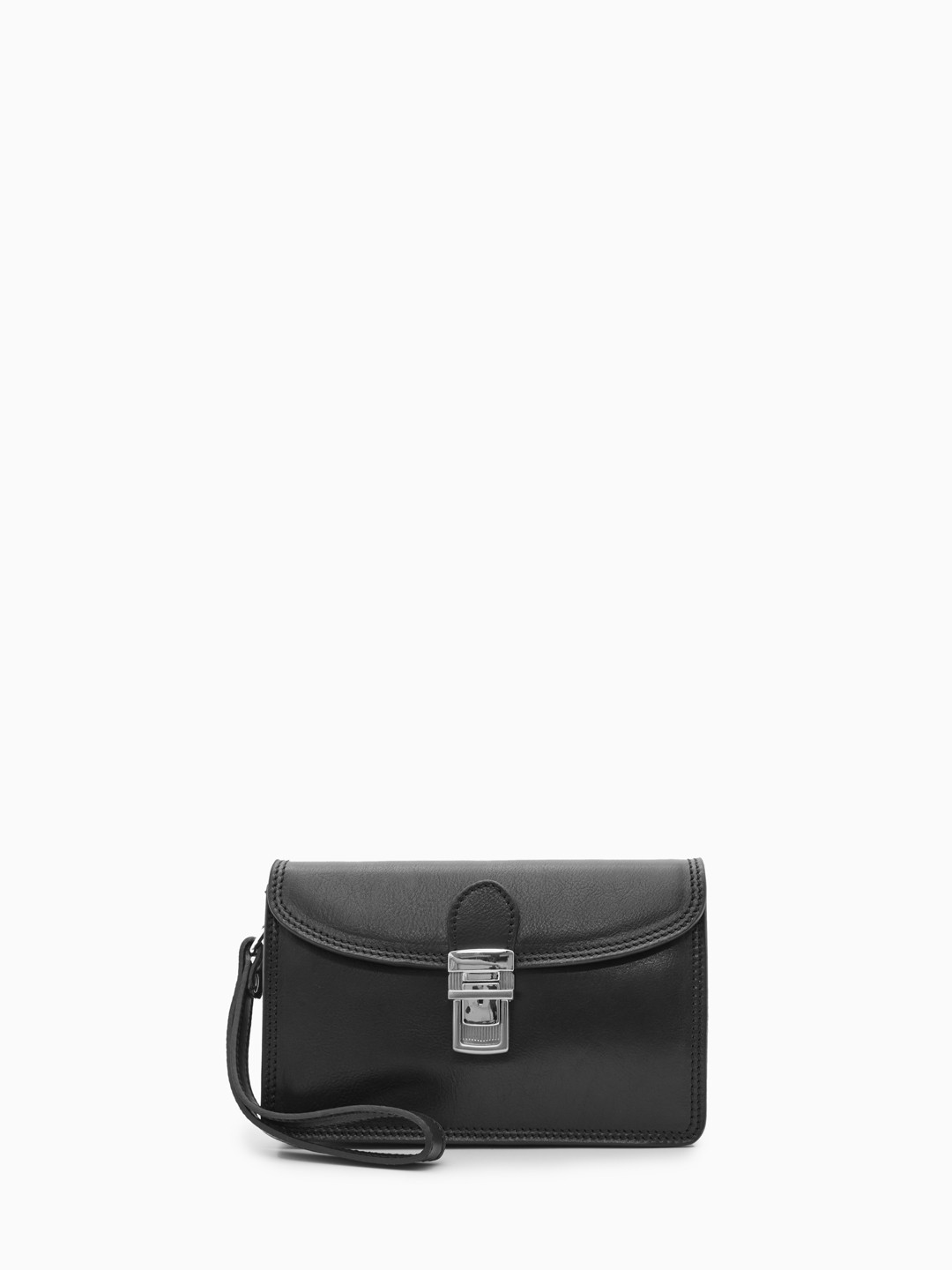 Сумка-барсетка чёрного цвета с дополнительной ручкой из винтажной кожи vacchetta от Folle uomo
