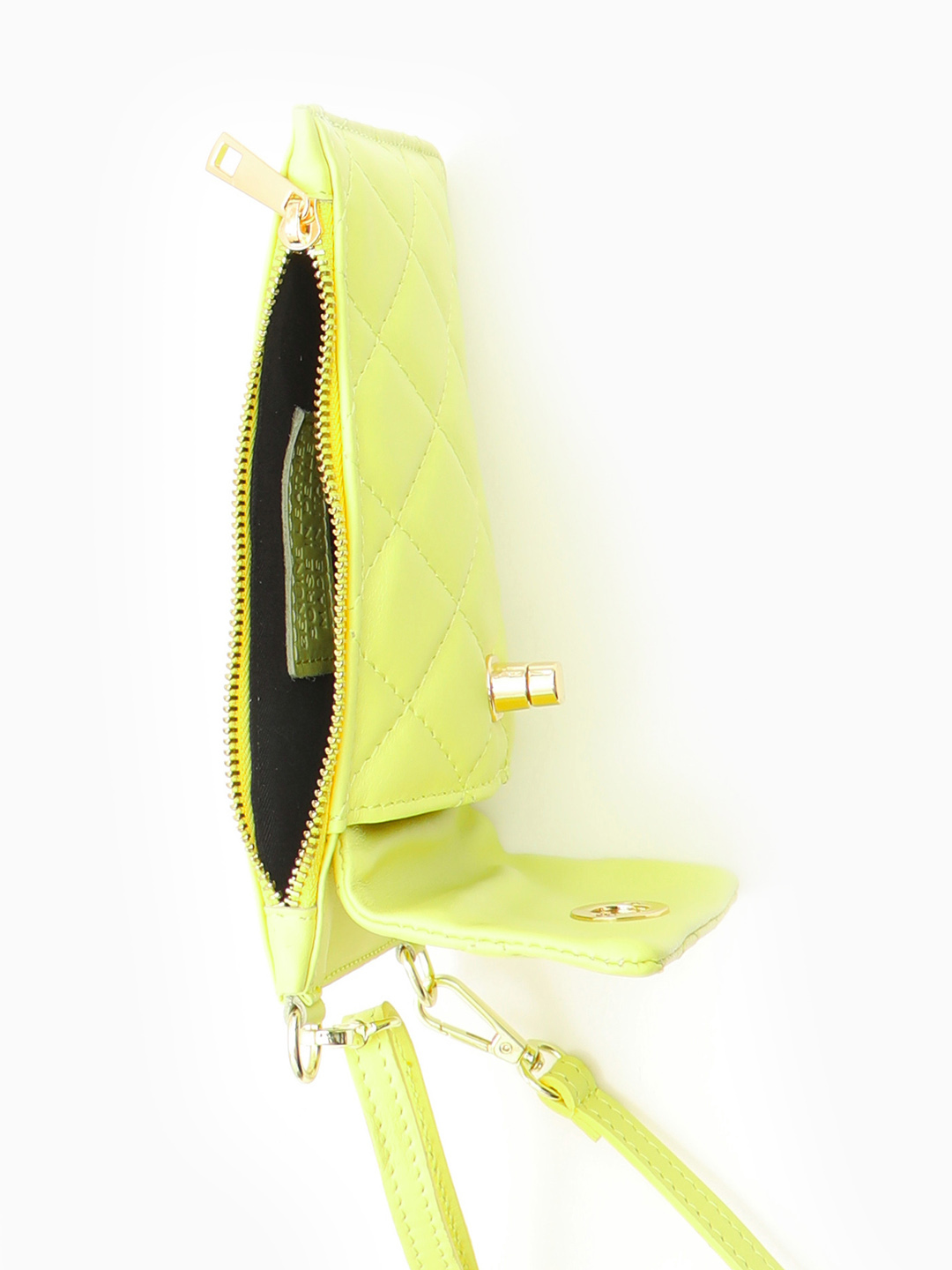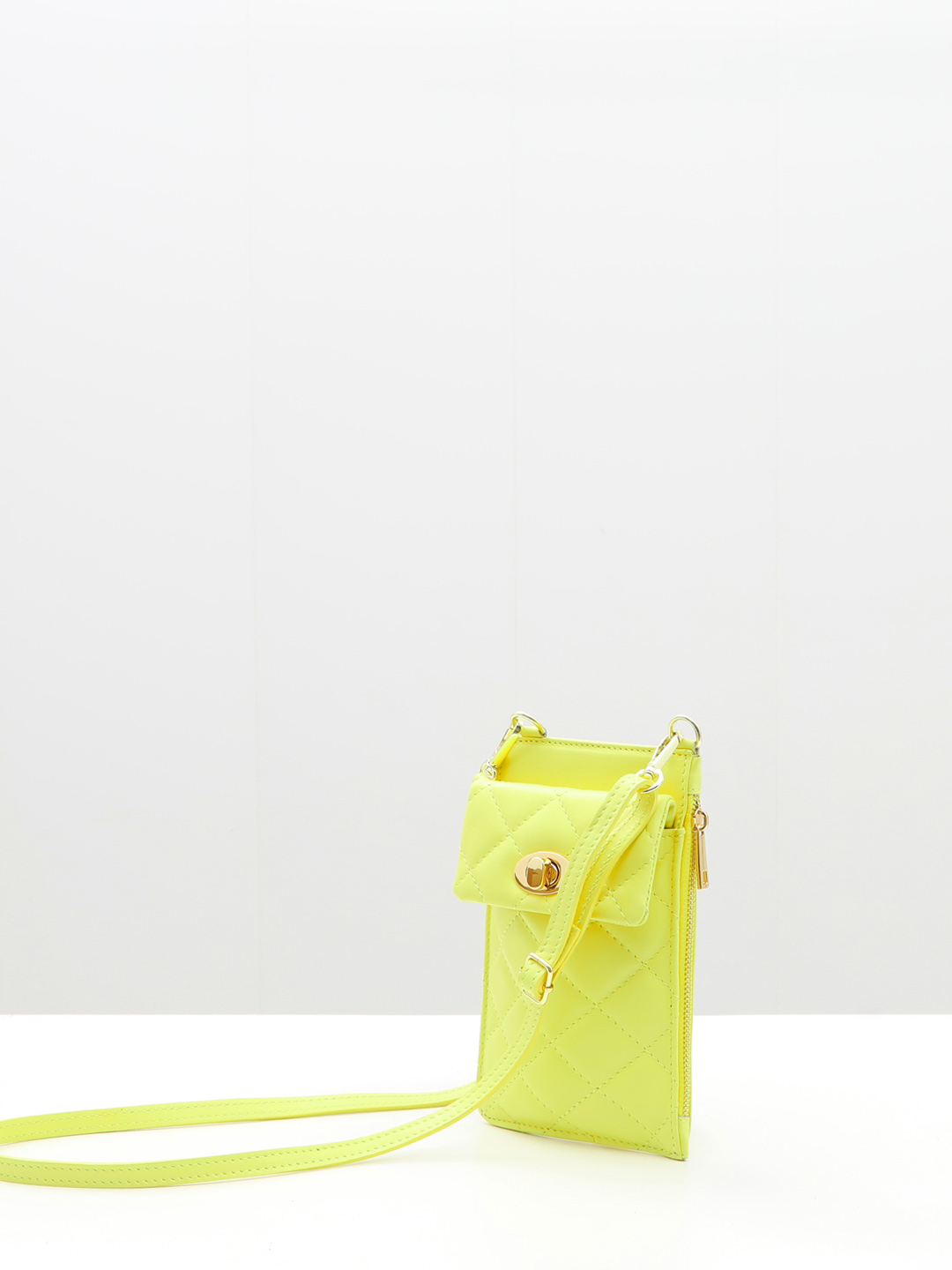 Мини сумка для телефона с ромбовидной стёжкой от FOLLE в лимонном цвете