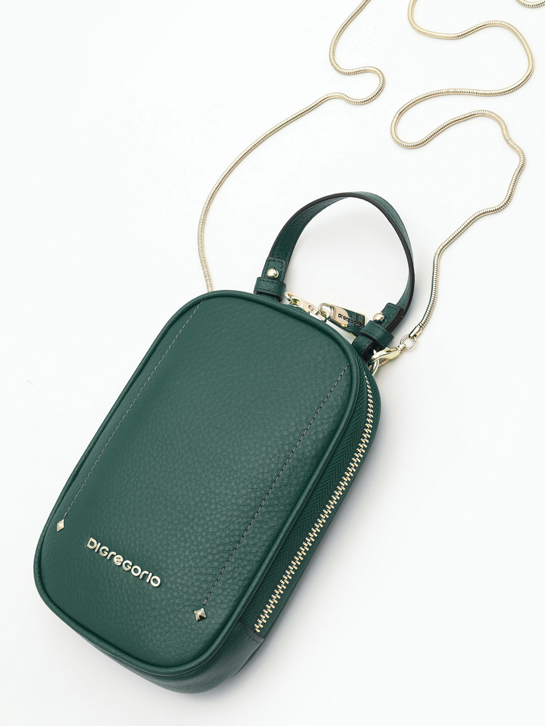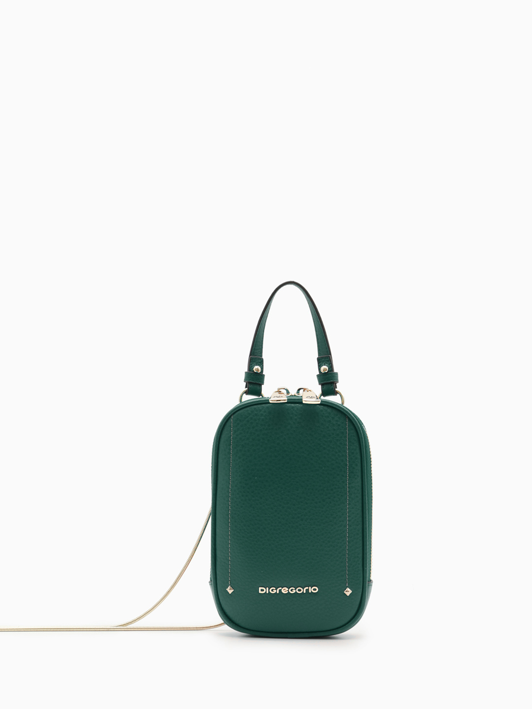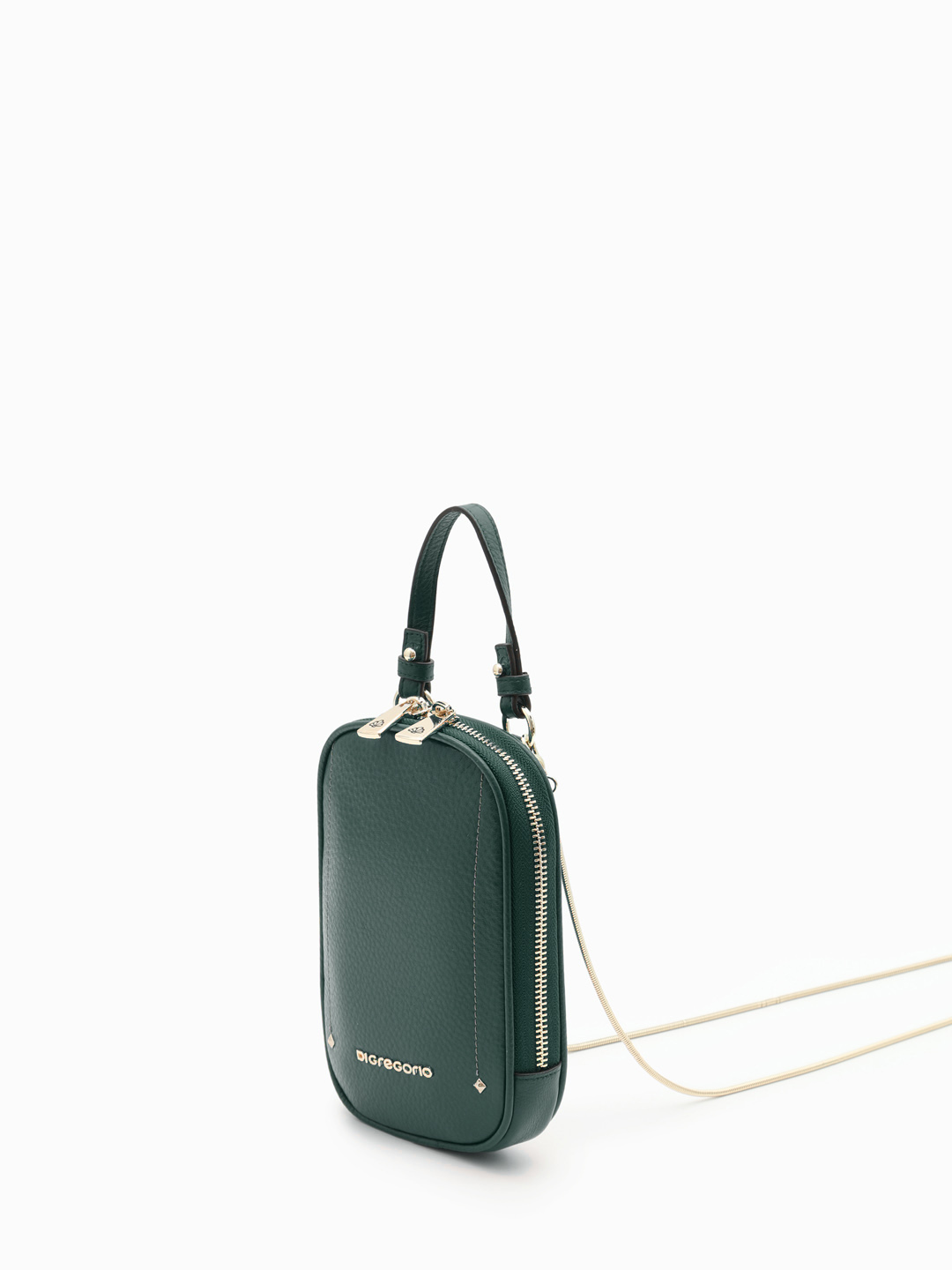 Сумка-кошелёк на шею / через плечо с именной гравировкой Di Gregorio из натуральной кожи изумрудного цвета