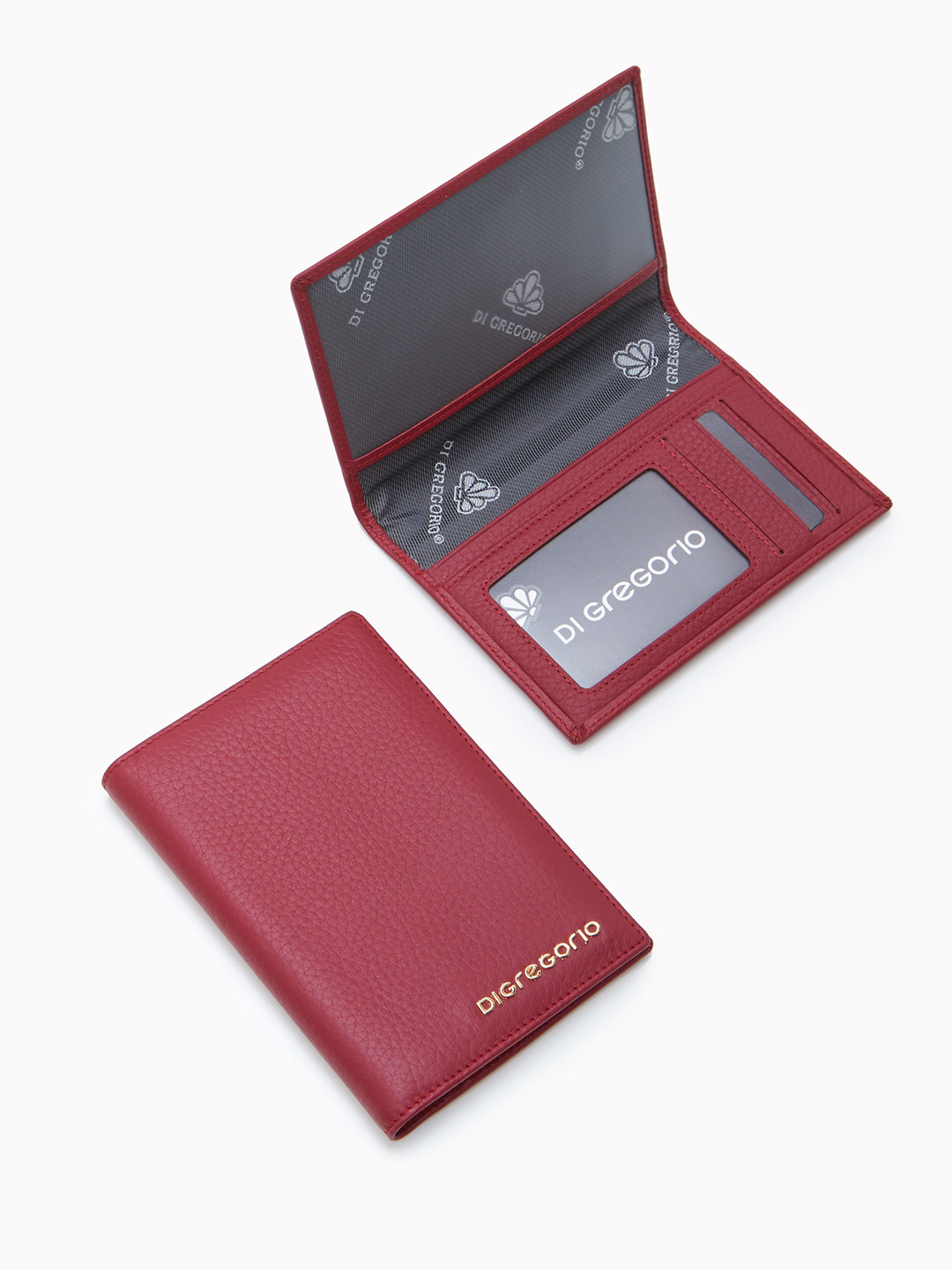 Минималистичная обложка для паспорта c золотистым логотипом Di Gregorio бордового цвета