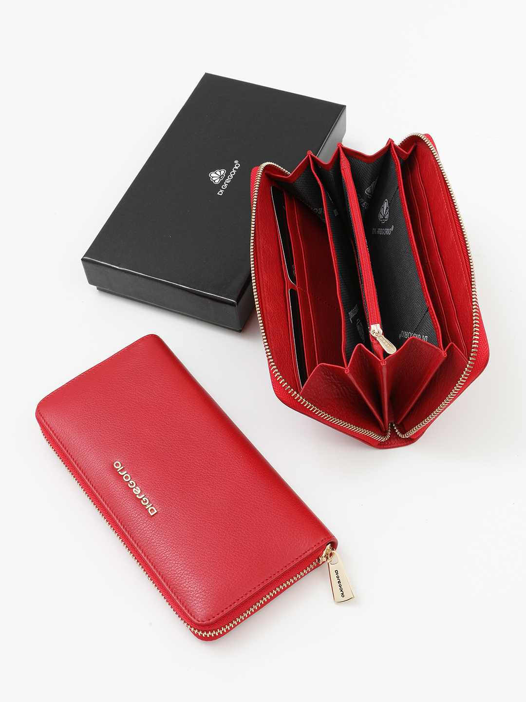 Минималистичный бумажник с металлическим логотипом Di Gregorio из натуральной кожи красного цвета