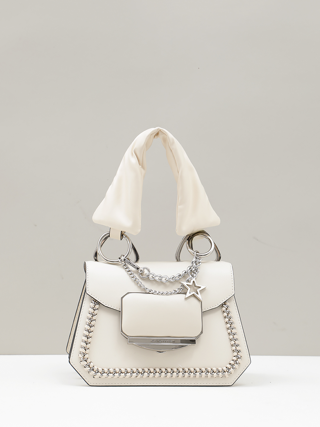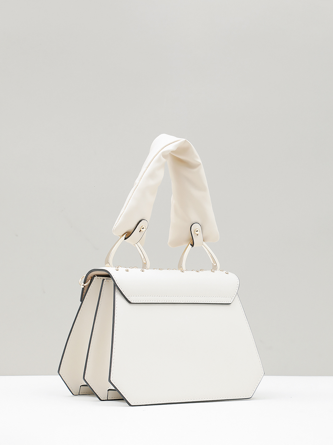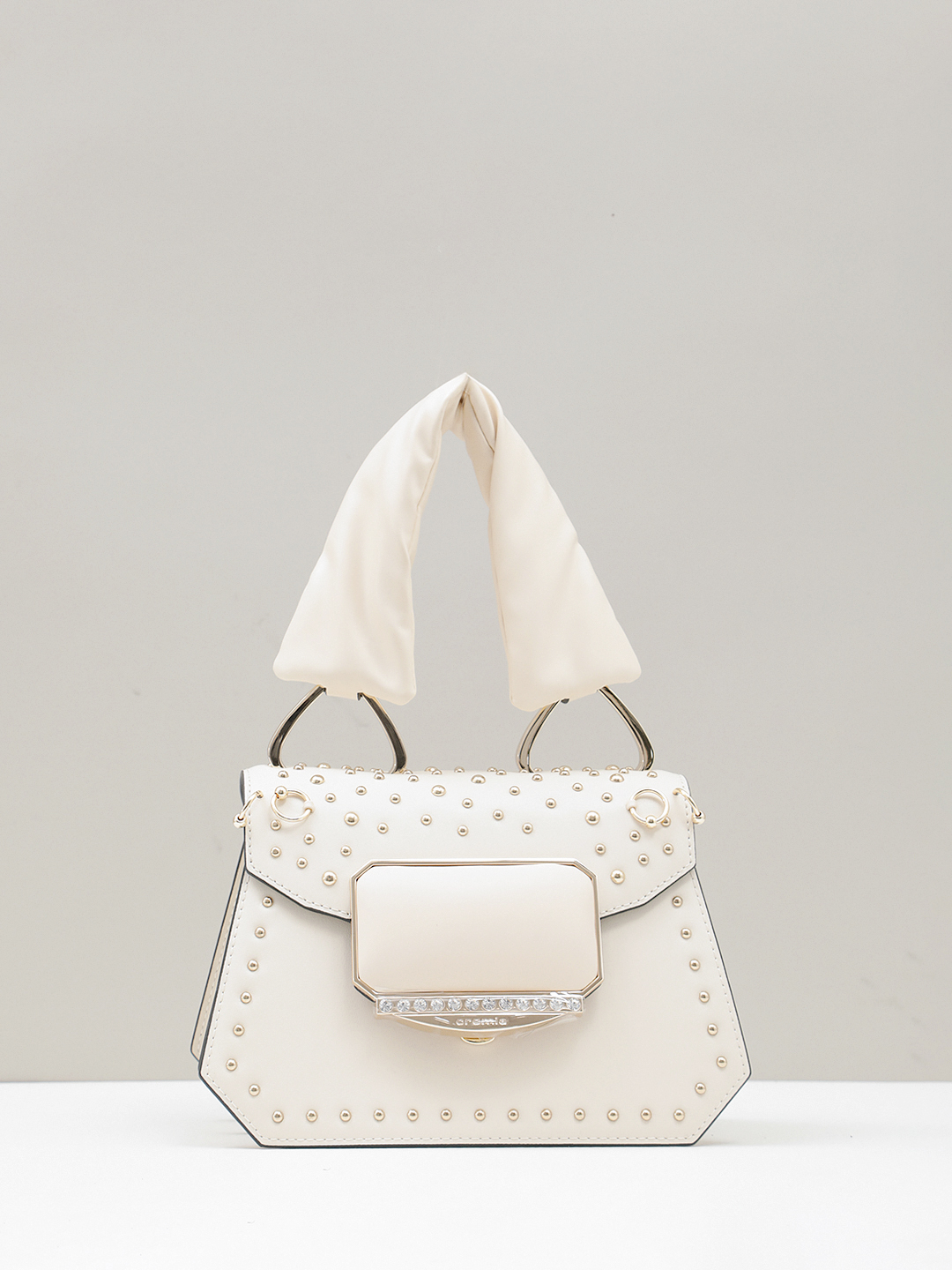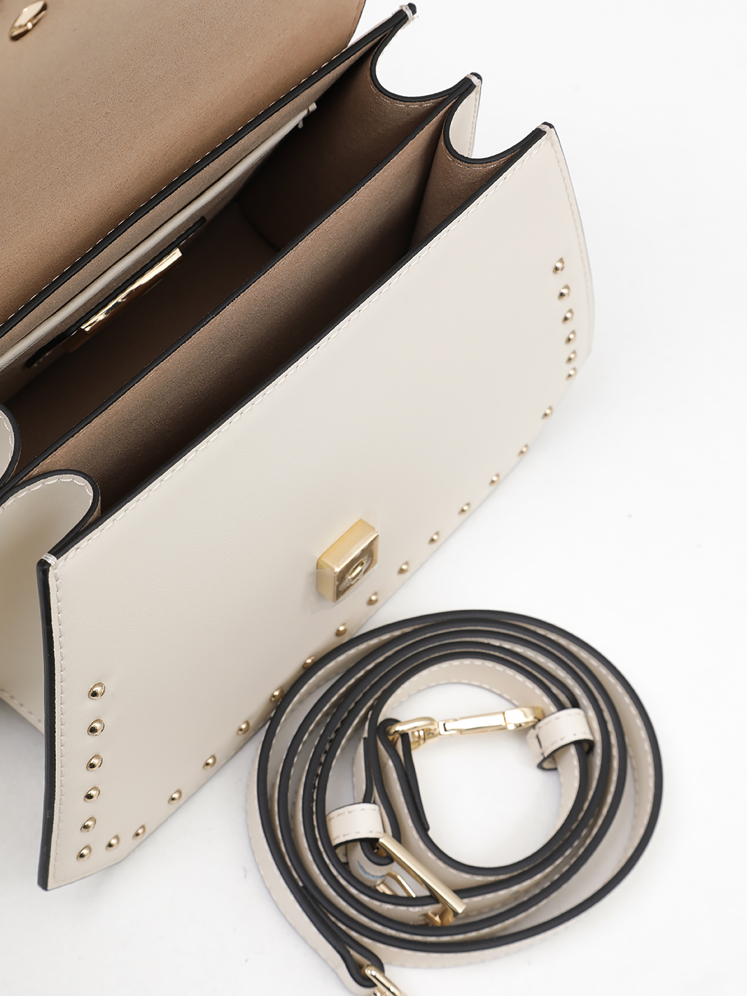 Сэтчел от Cromia в натуральной коже молочного оттенка с клепками и стразами