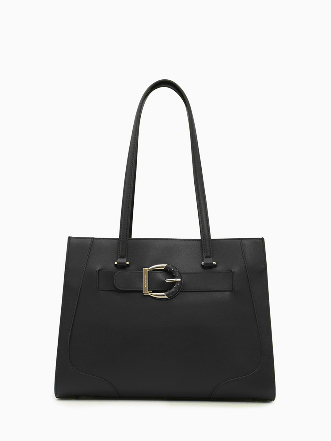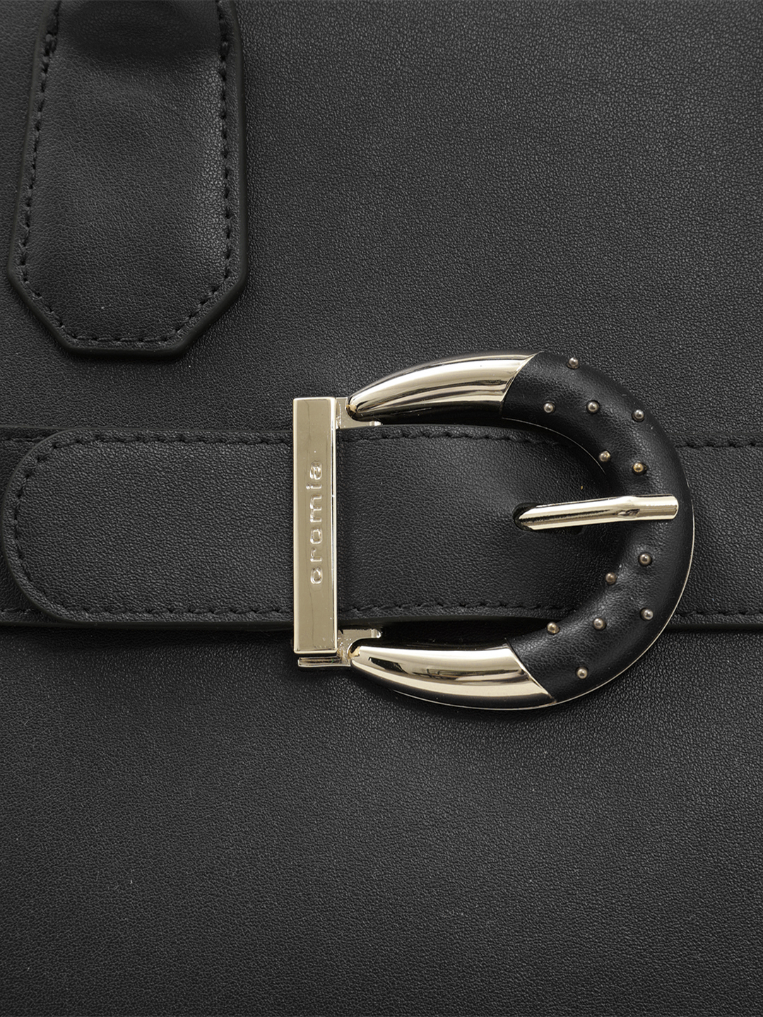 Тоут от Cromia в натуральной гладкой коже черного цвета с фурнитурой в виде пряжки