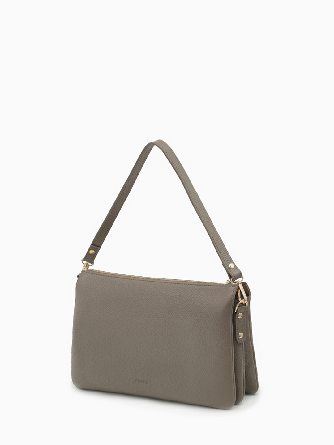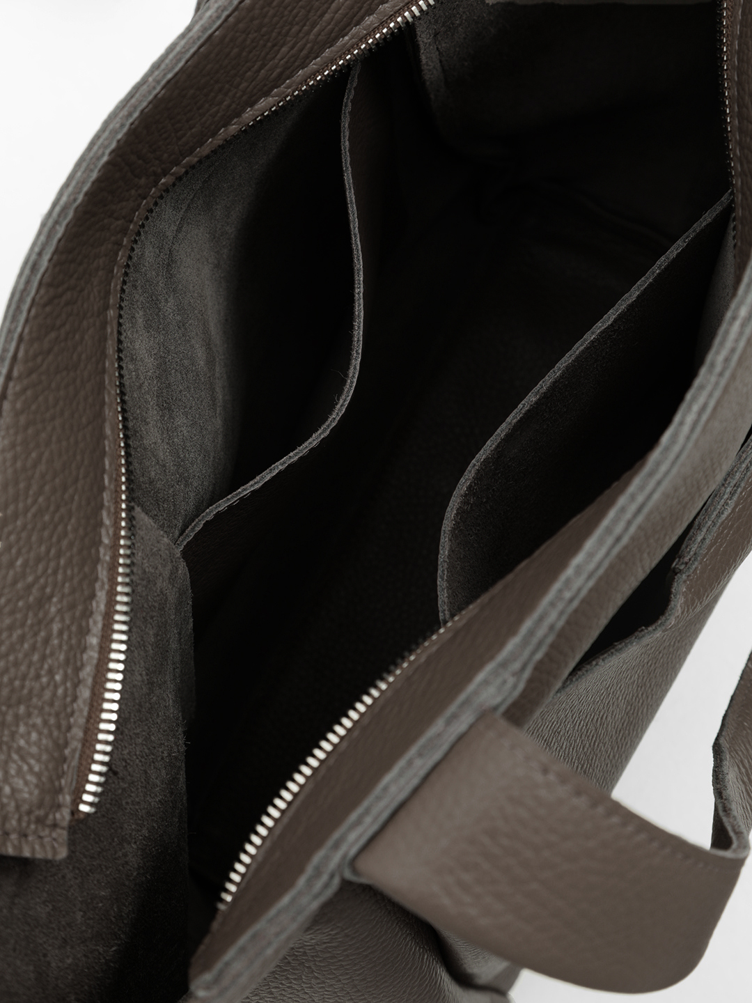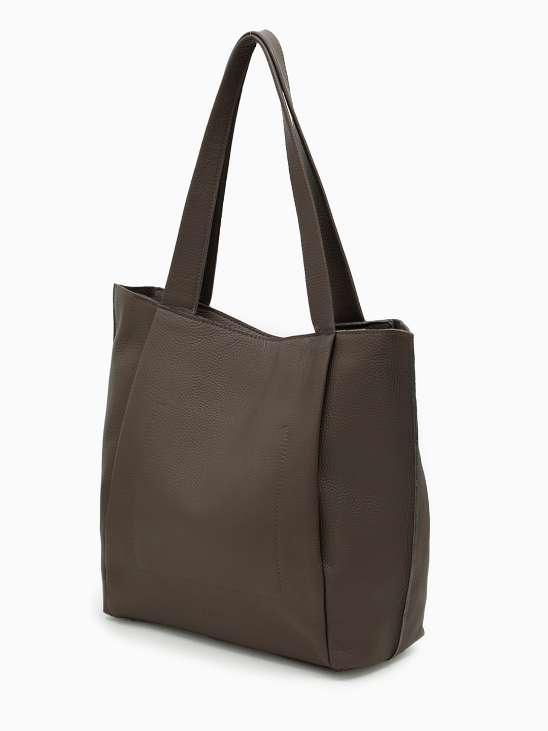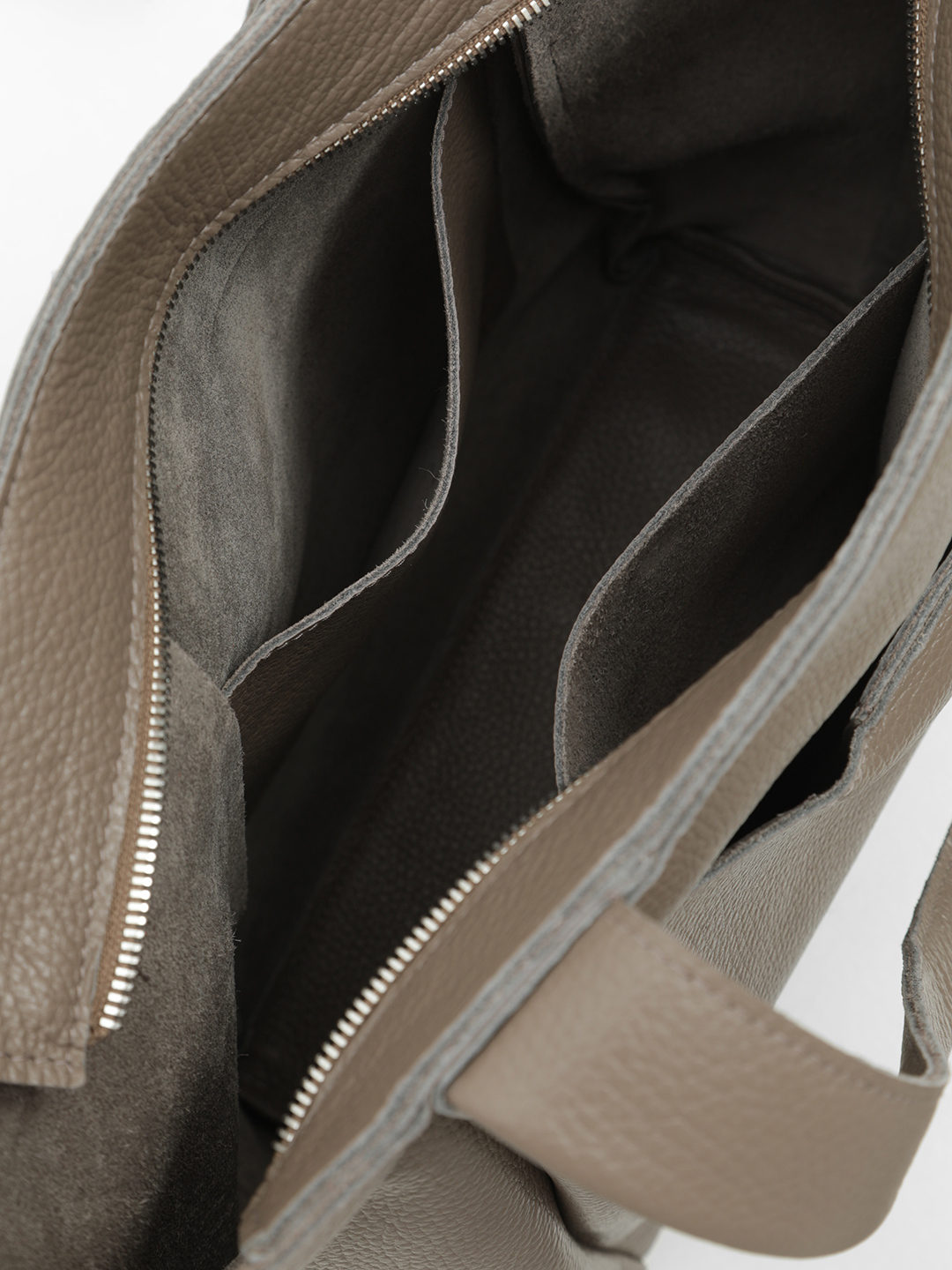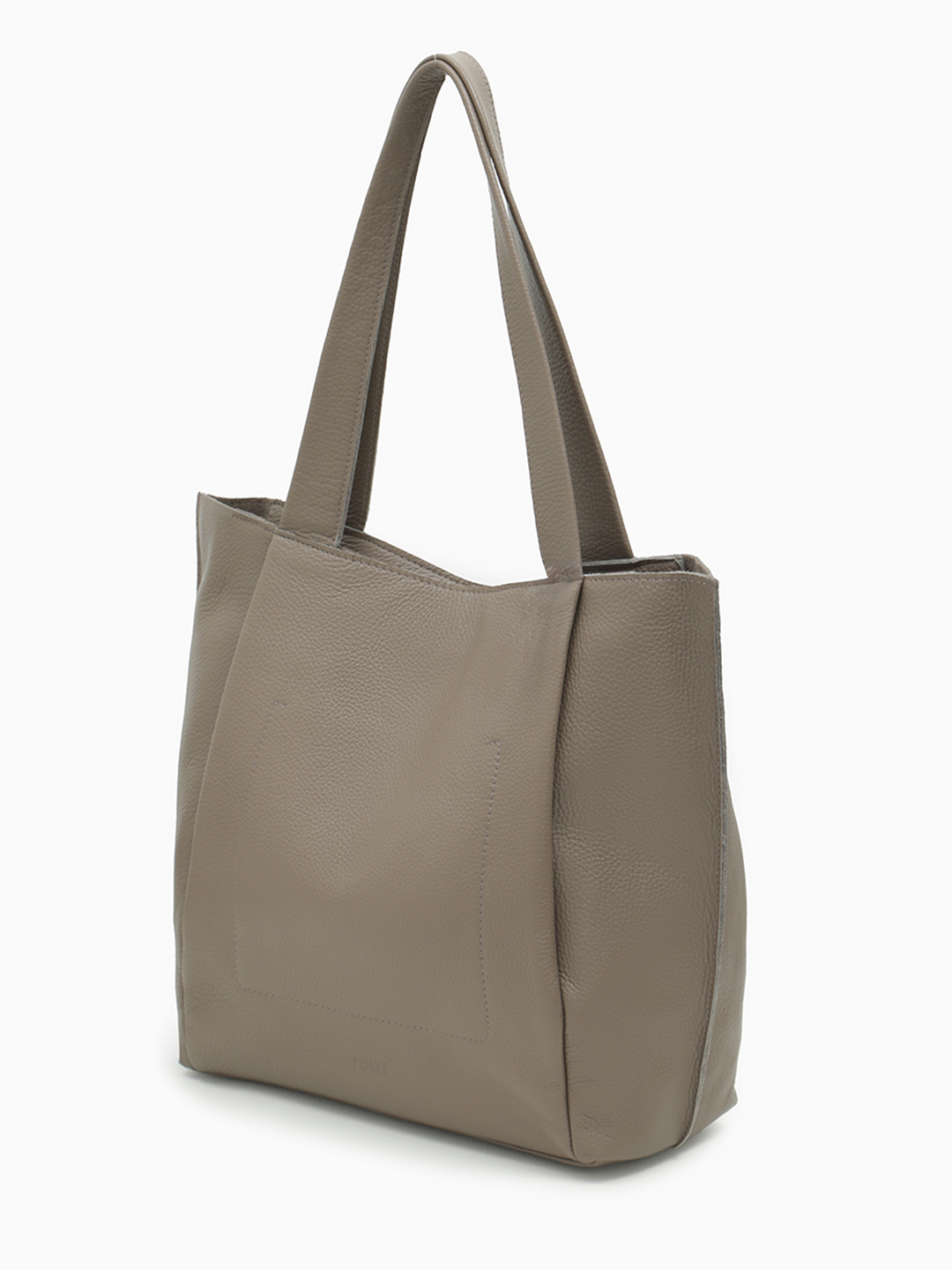Объёмный шоппер из натуральной кожи с карманом на магните от FOLLE в цвете тауп