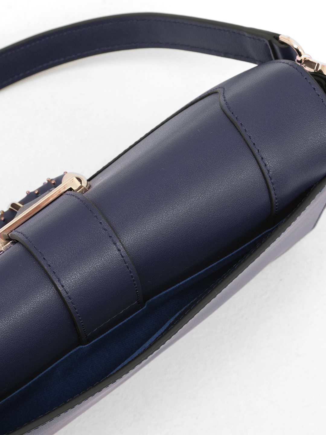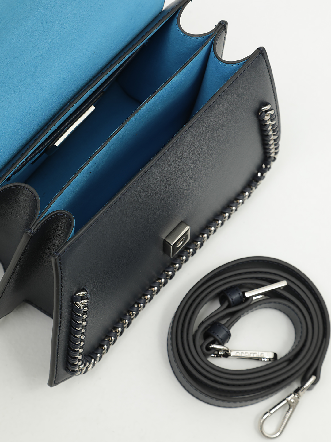Багет от Cromia в натуральной гладкой коже синего цвета с фурнитурой в виде пряжки