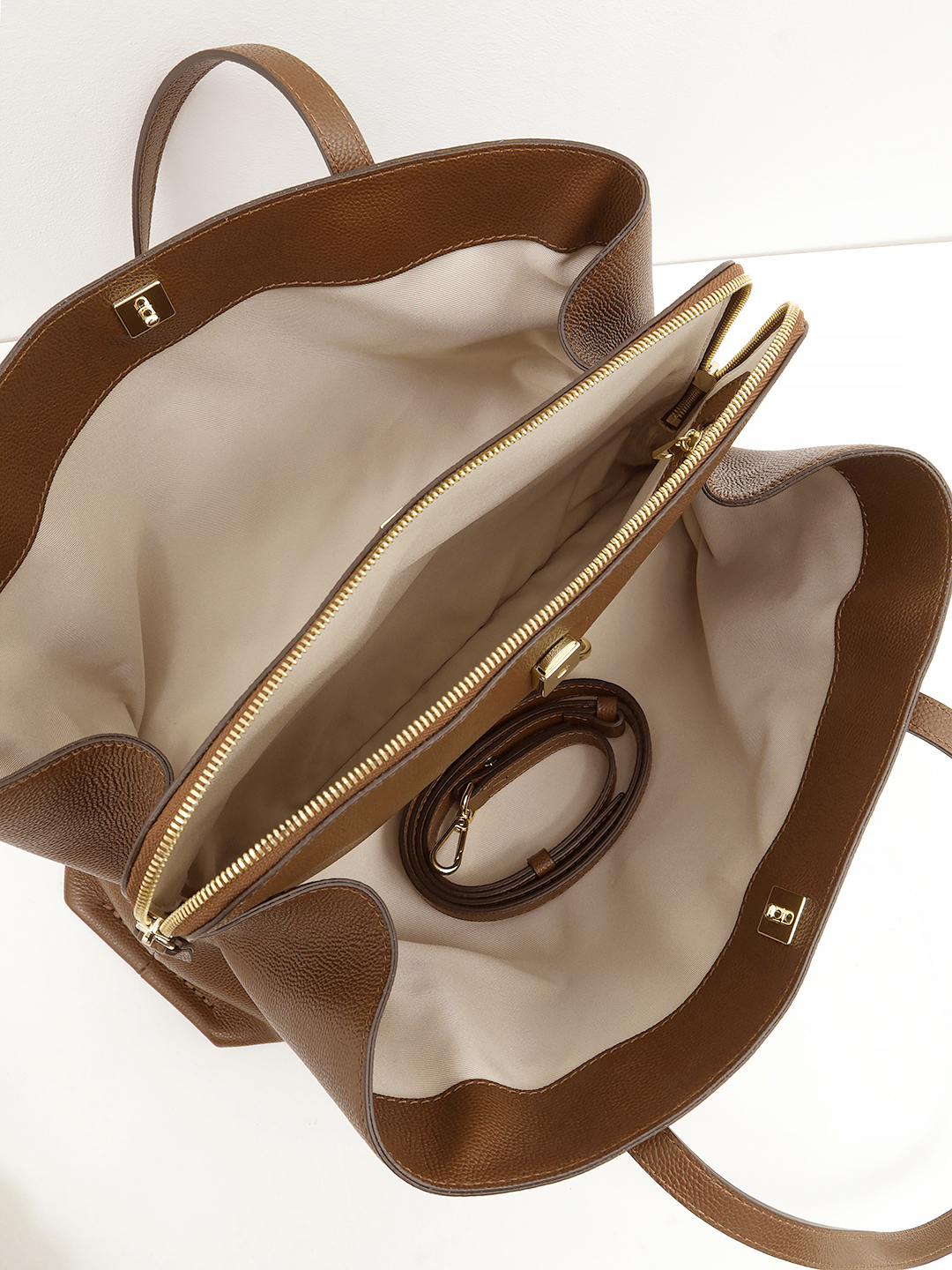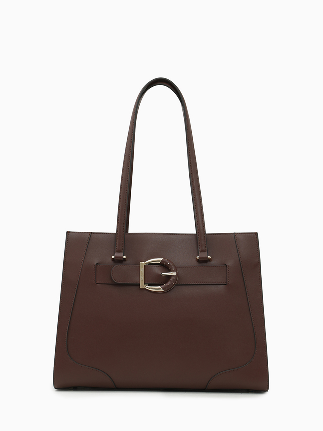 Тоут от Cromia в натуральной гладкой коже коричневого цвета с фурнитурой в виде пряжки