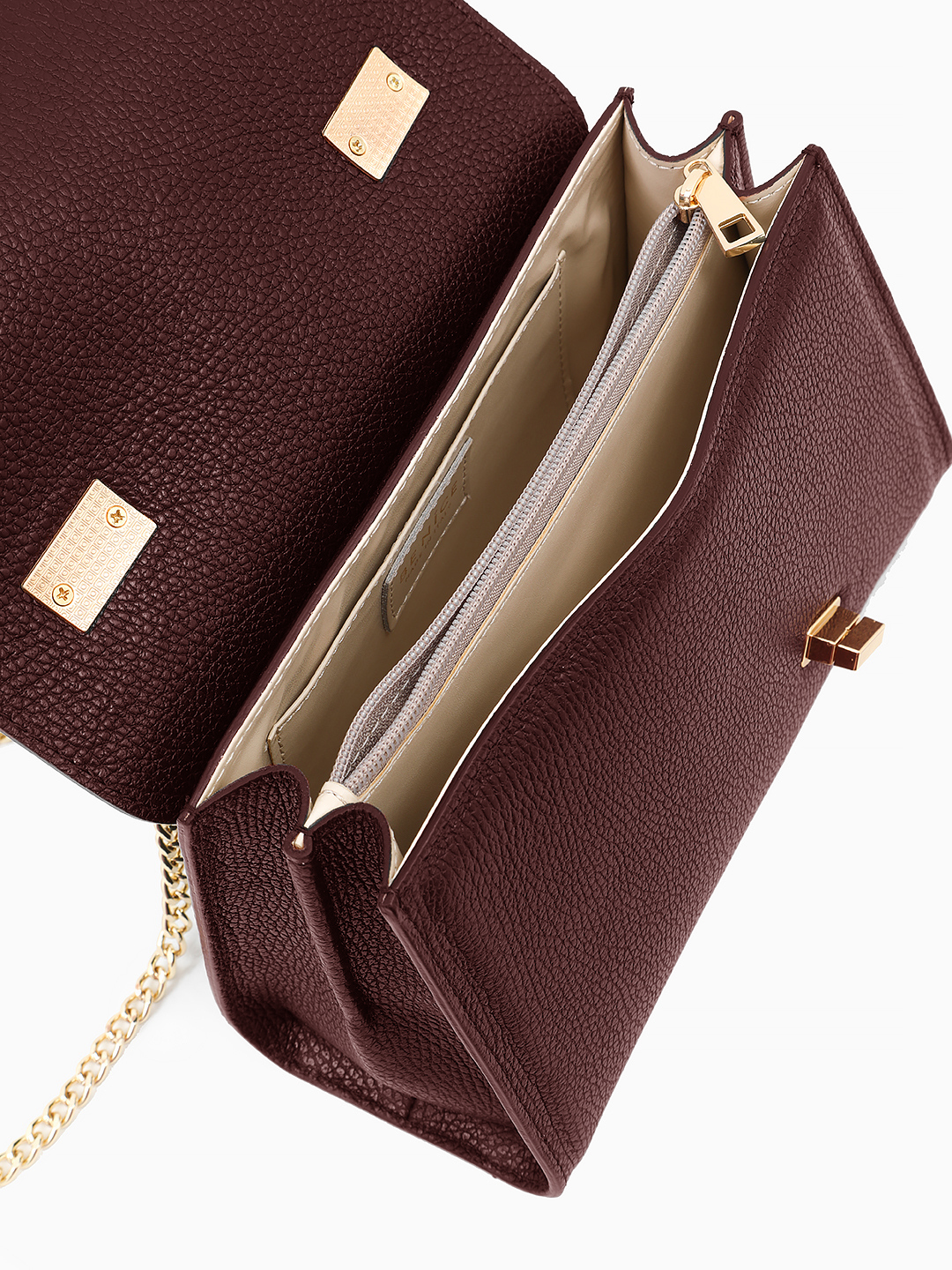 Кросс-боди на плечо с металлическим логотипом FOLLE в бордовом цвете