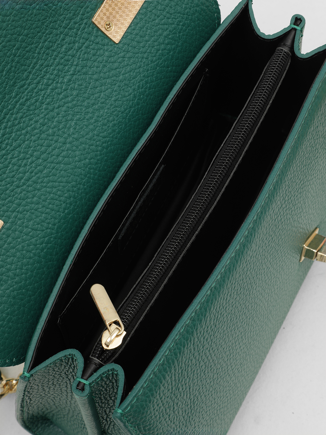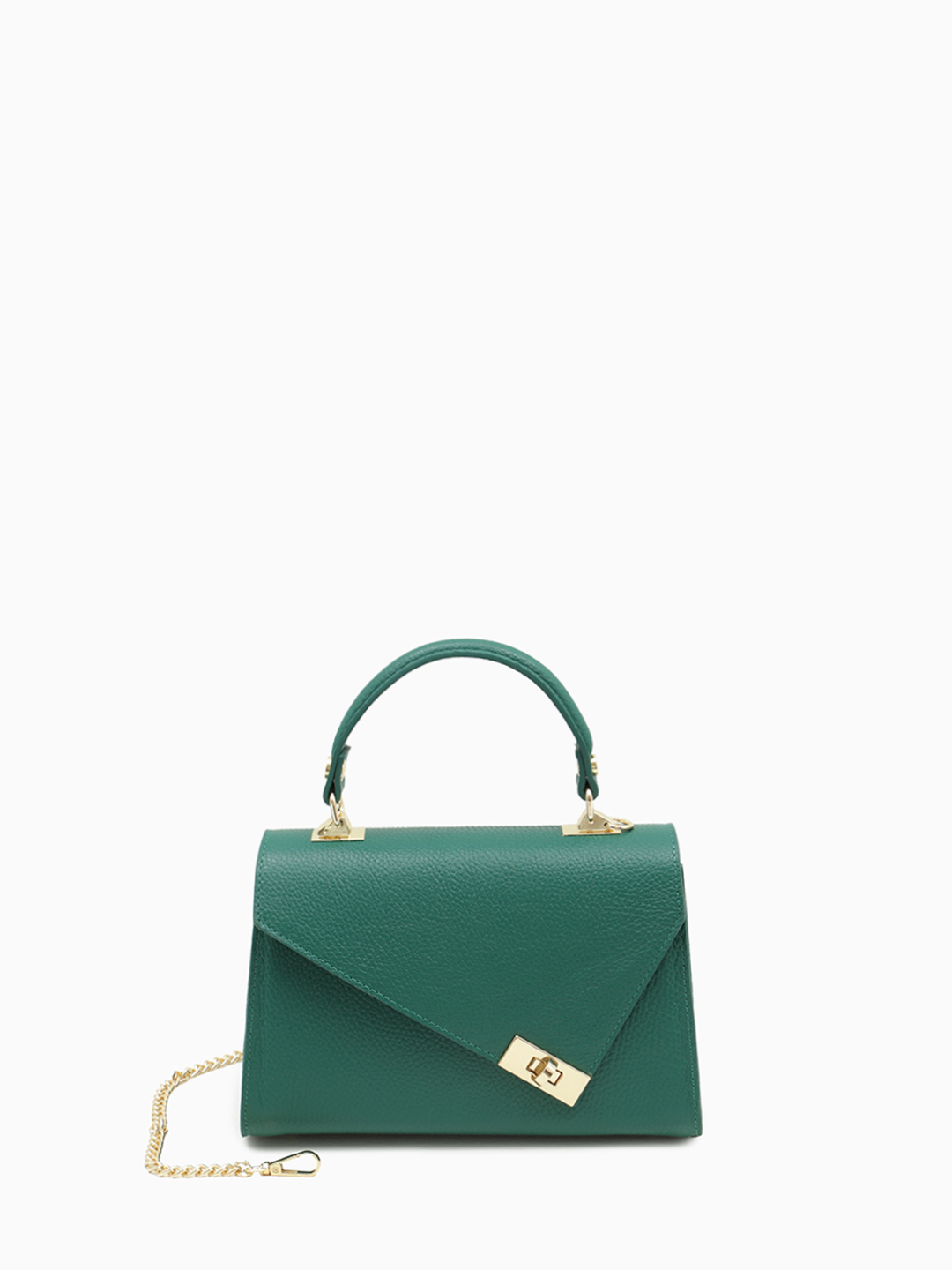 Сумка-сэтчел с треугольным клапаном от BE NICE из натуральной кожи изумрудного цвета