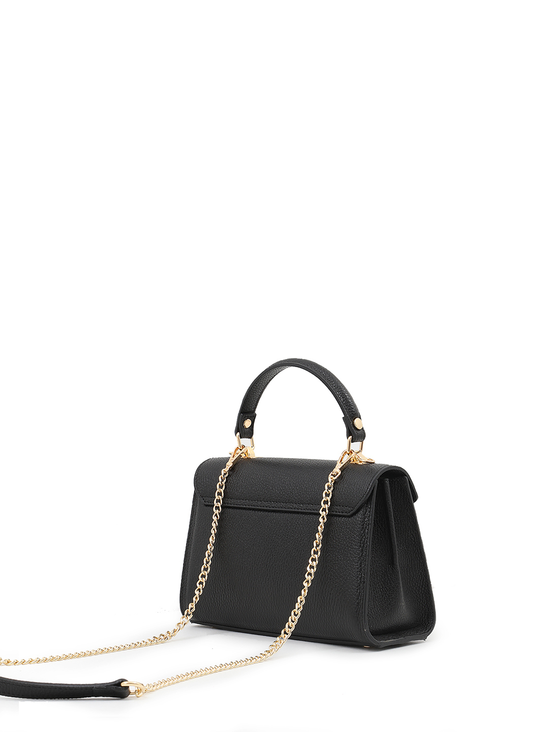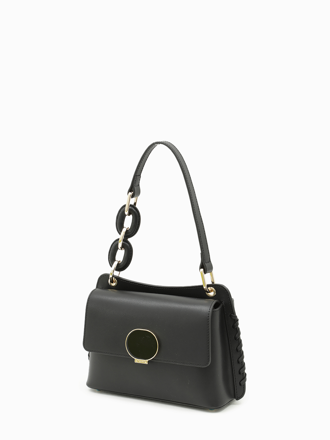 Сэтчел от Cromia в натуральной коже черного цвета с акцентной крупной цепочкой и мягкой ручкой