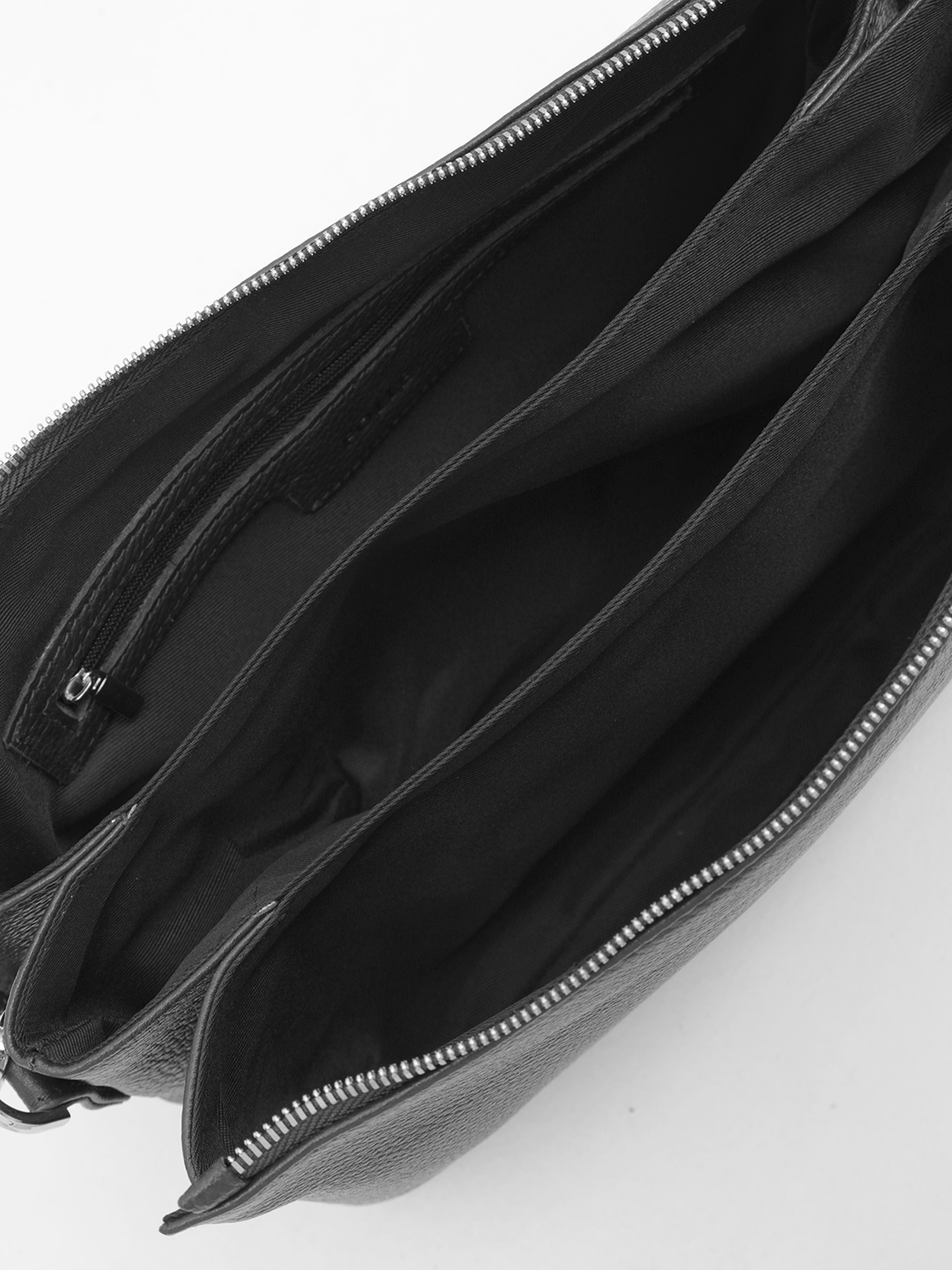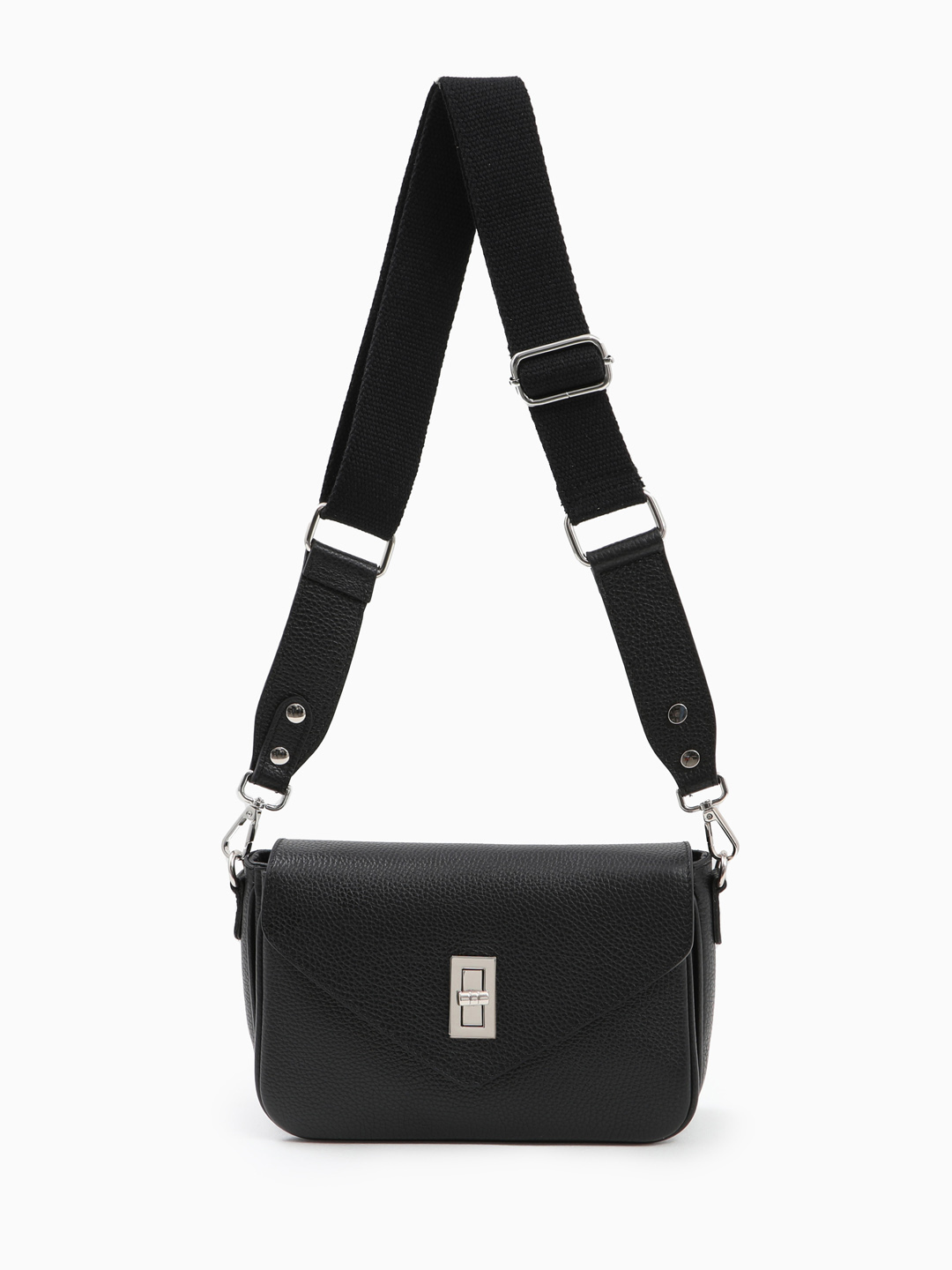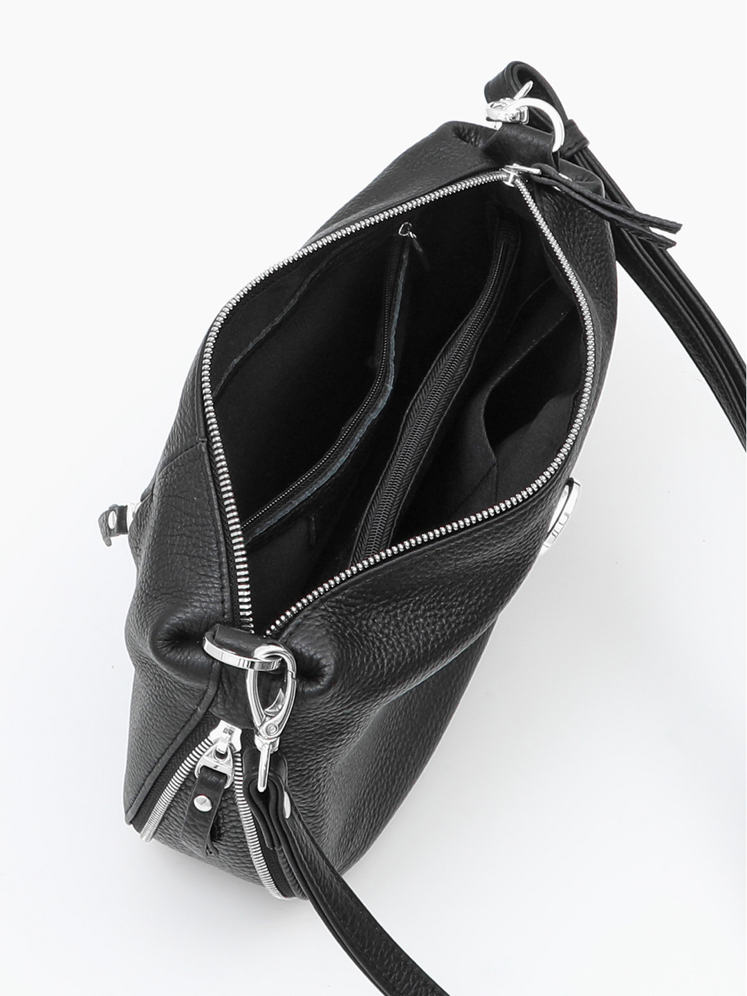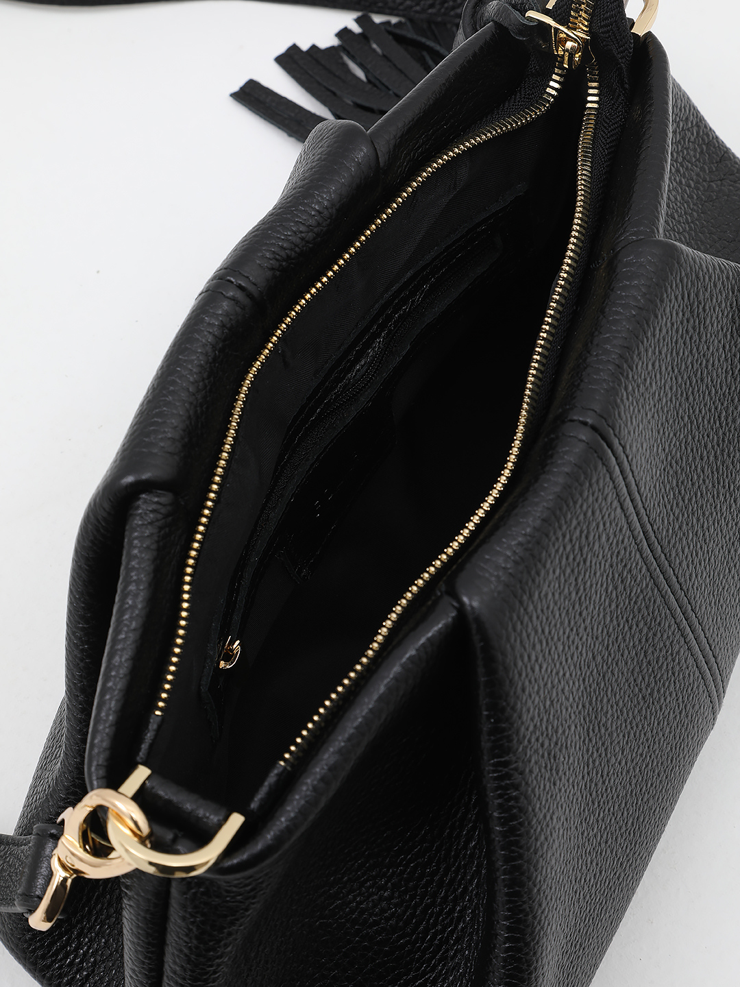 Сумка кросс-боди от итальянского бренда FOLLE из черной натуральной кожи