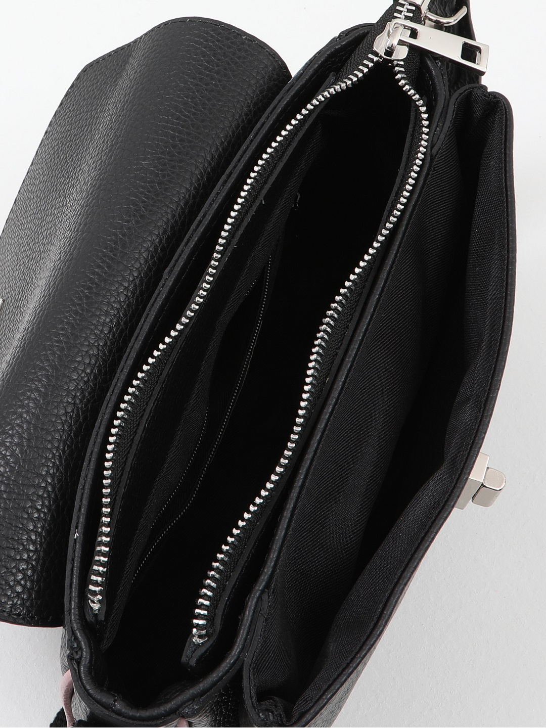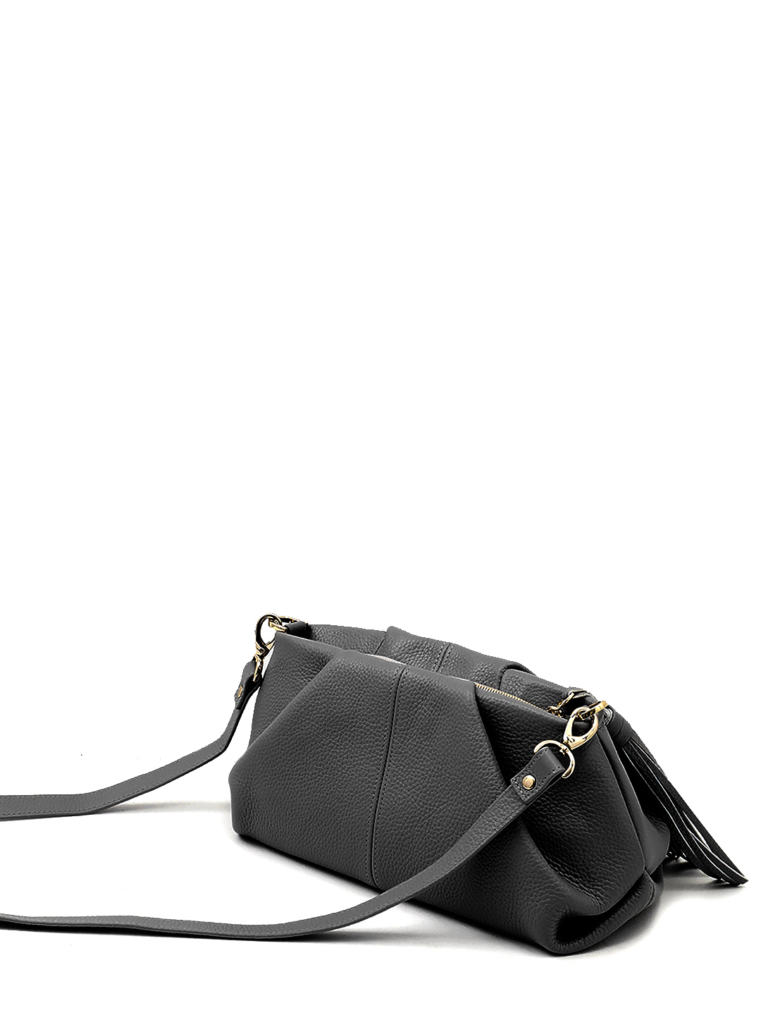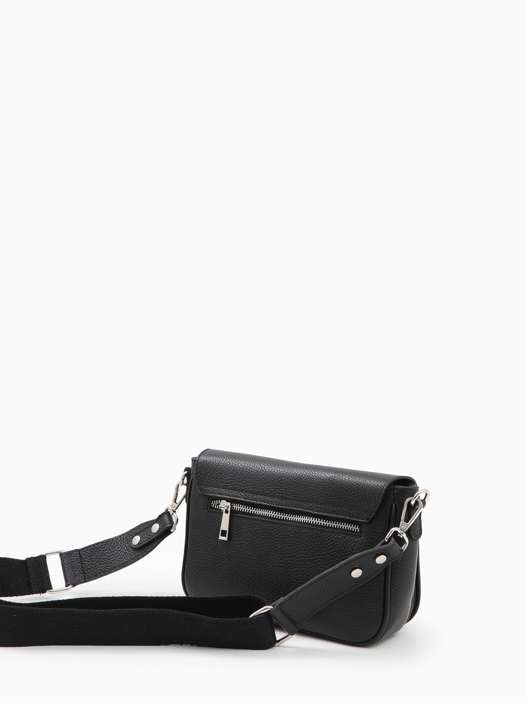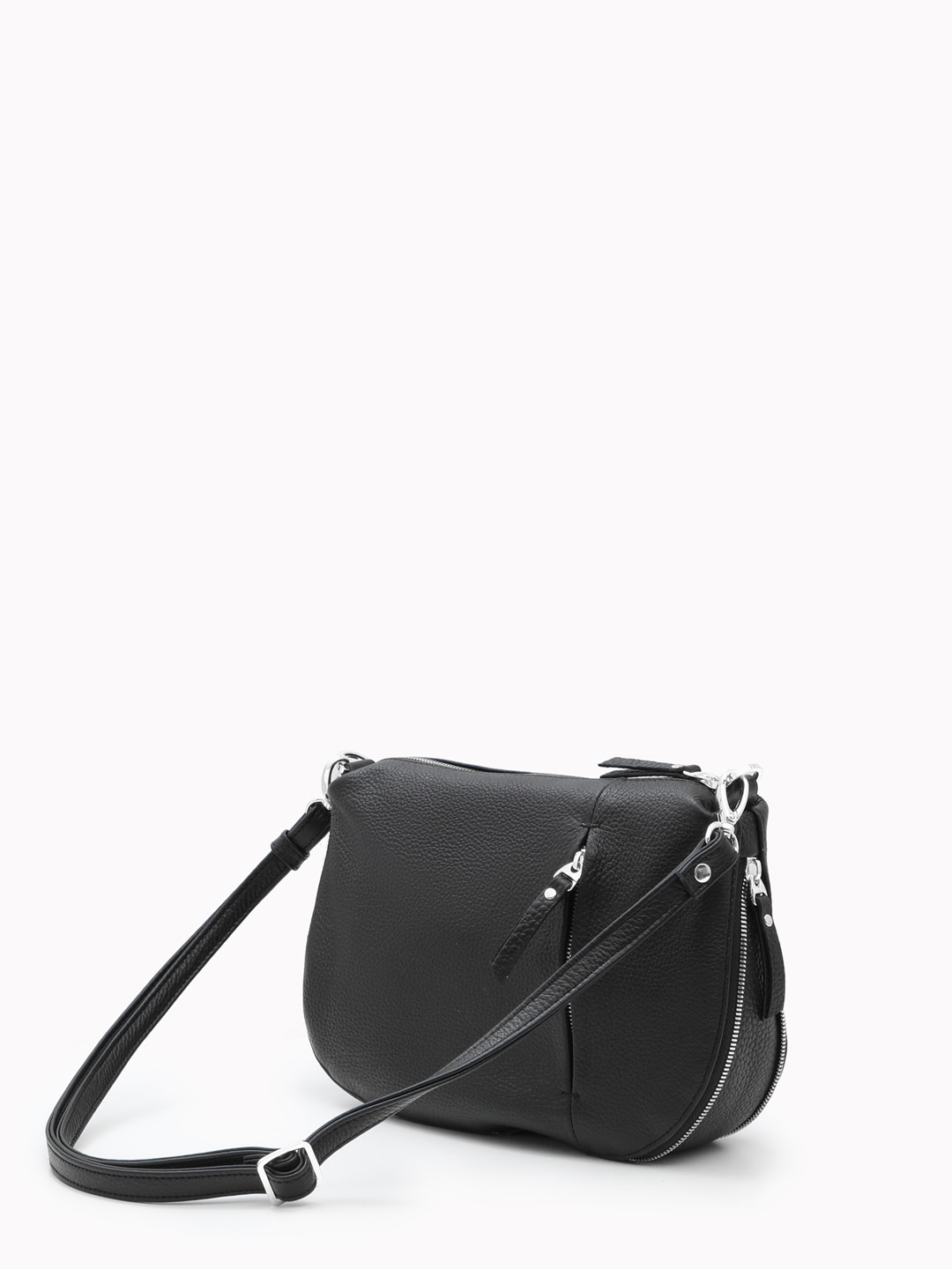 Сумка кросс-боди от итальянского бренда FOLLE из черной натуральной кожи