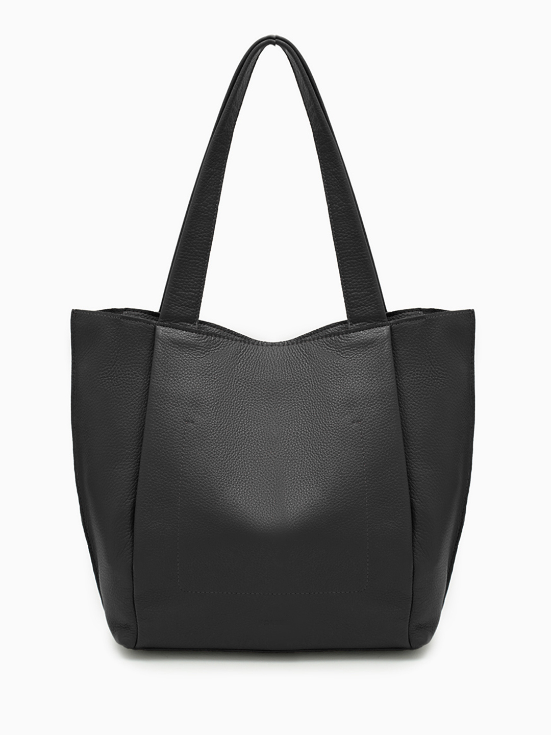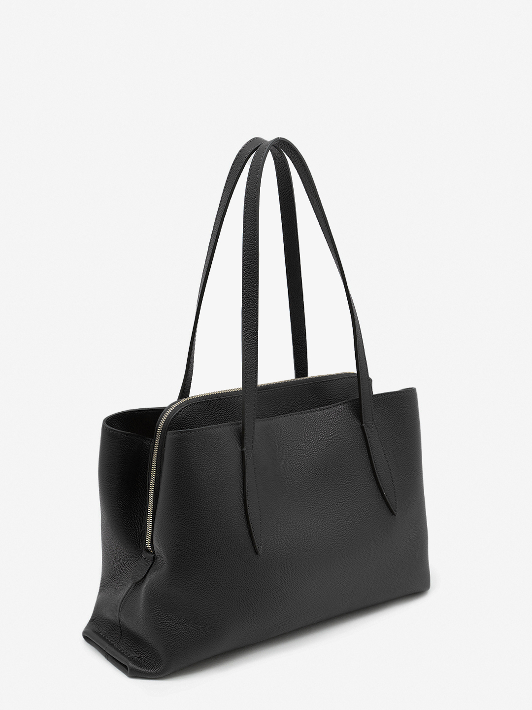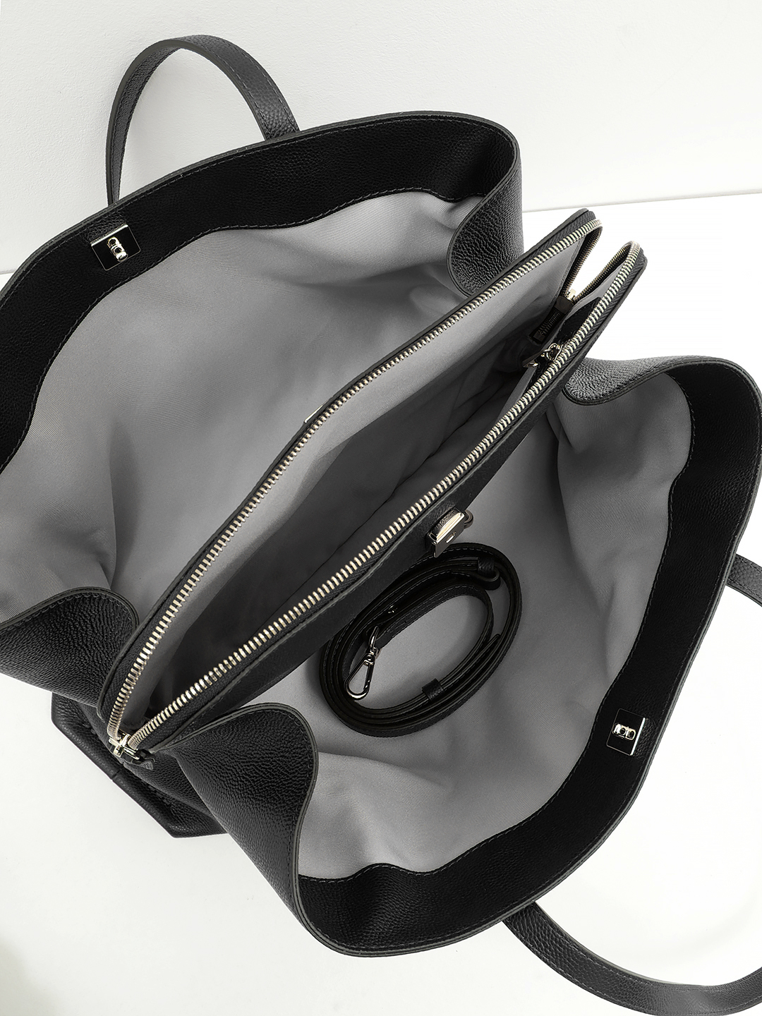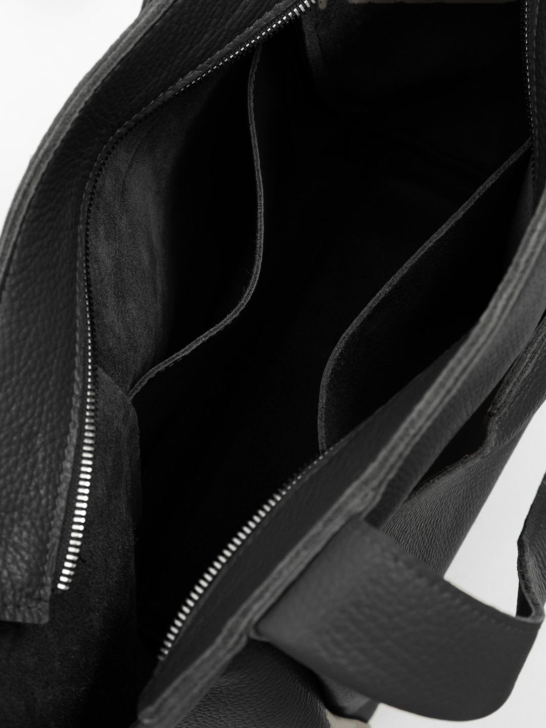Объёмный шоппер из натуральной кожи с карманом на магните от FOLLE в чёрном цвете