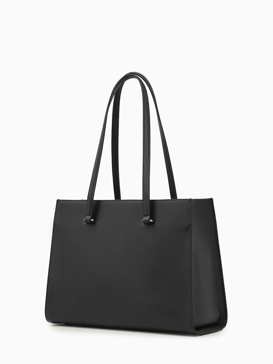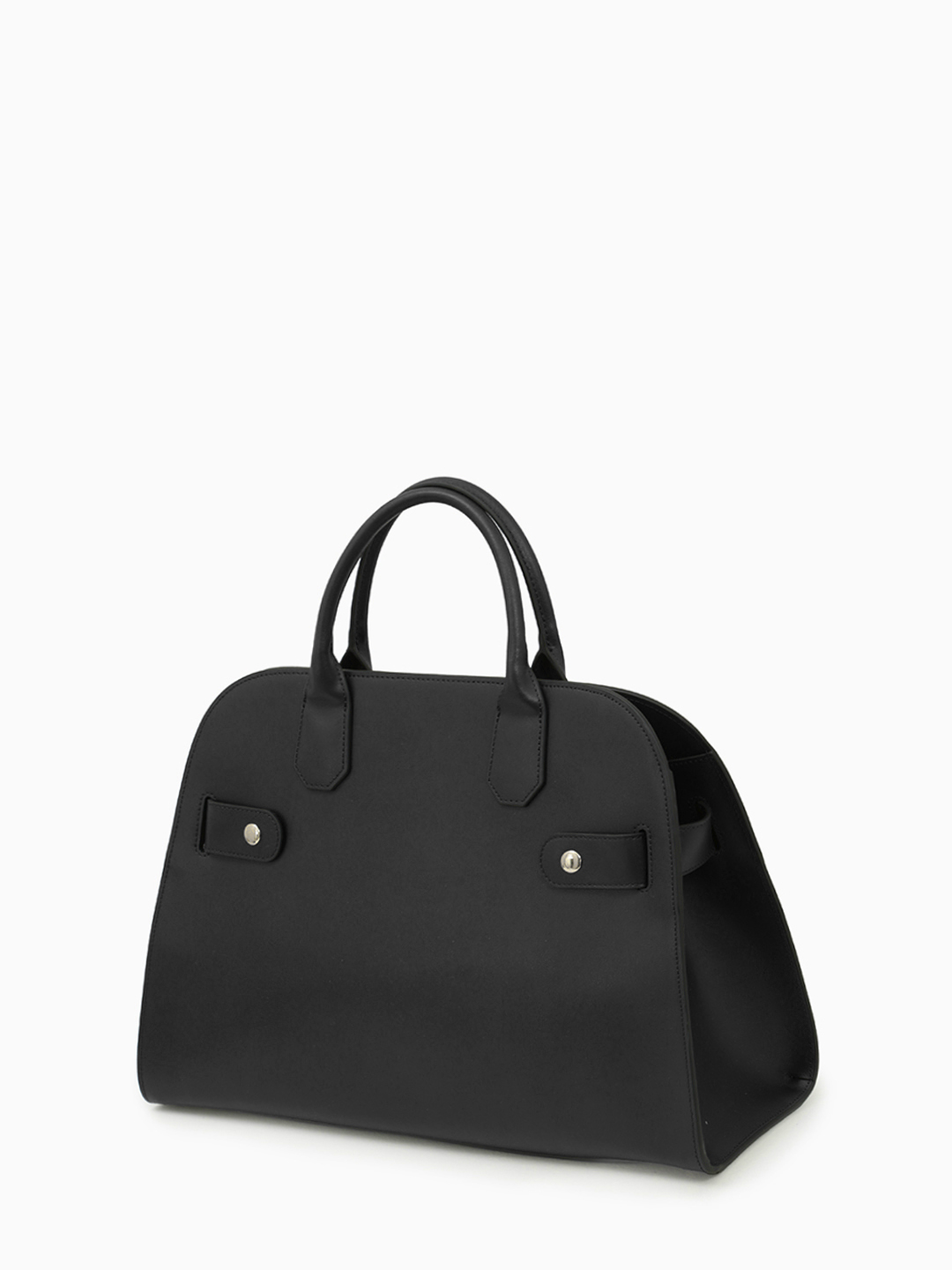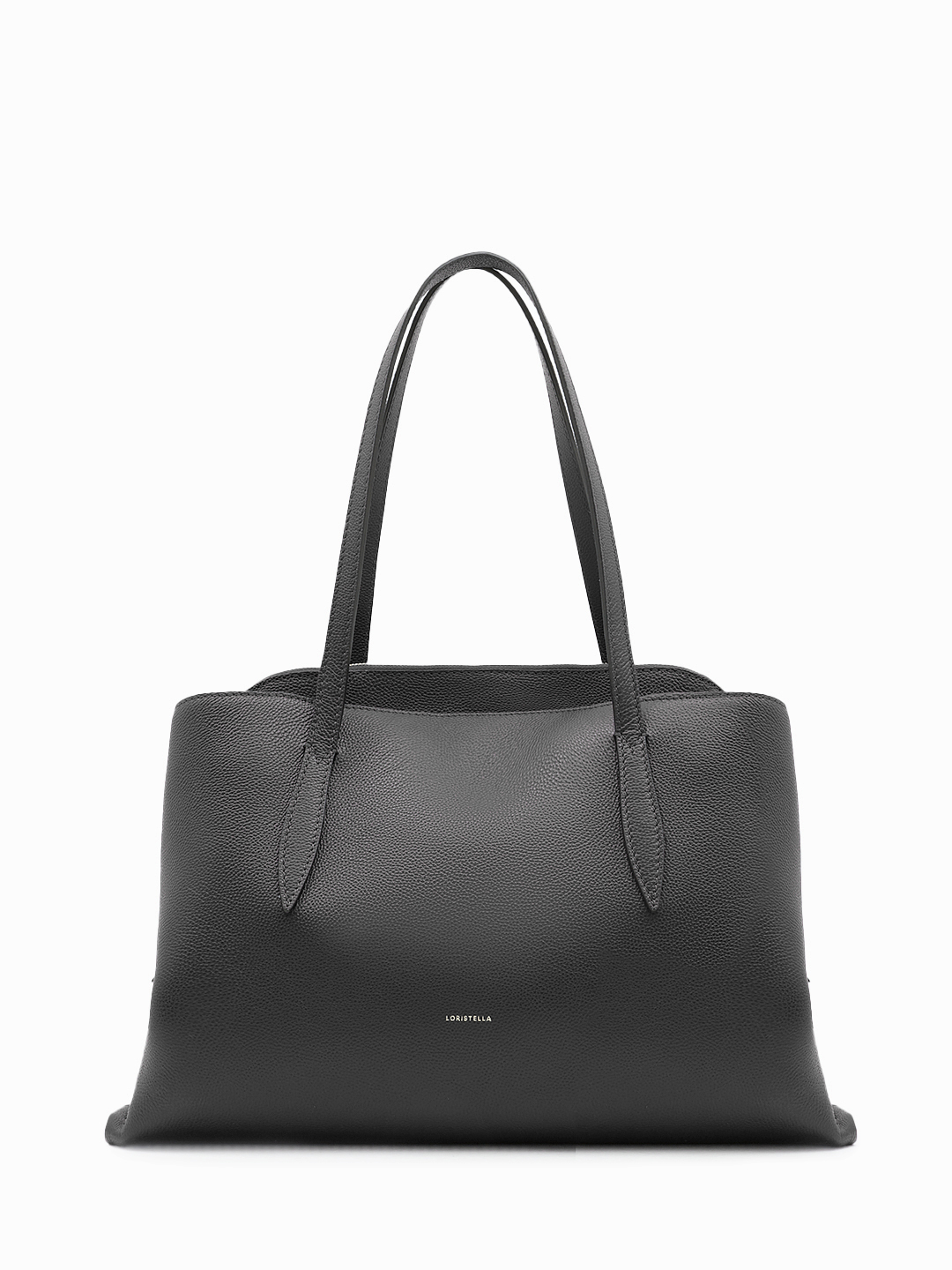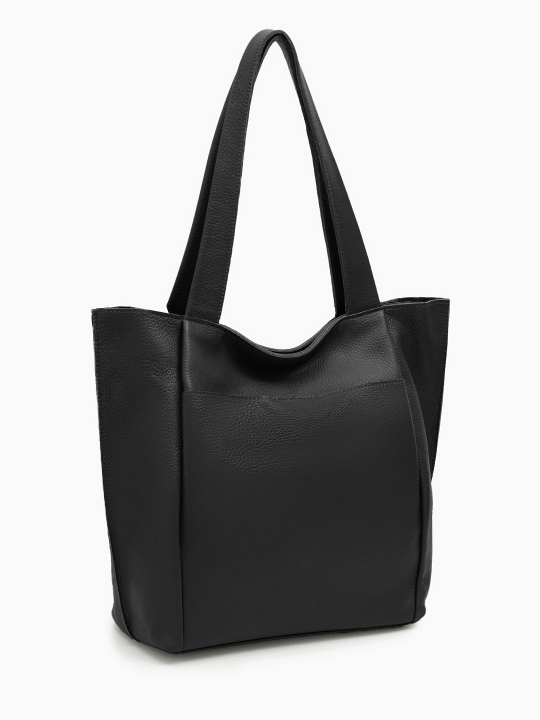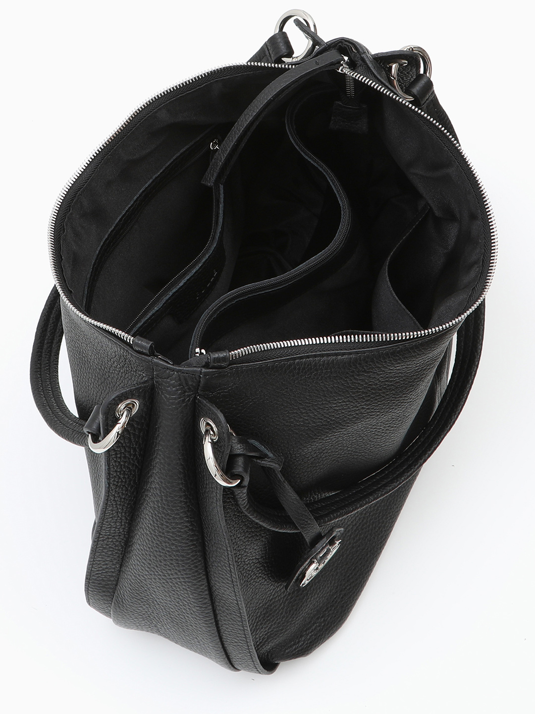 Объёмный шоппер из натуральной кожи с карманом на магните от FOLLE в чёрном цвете