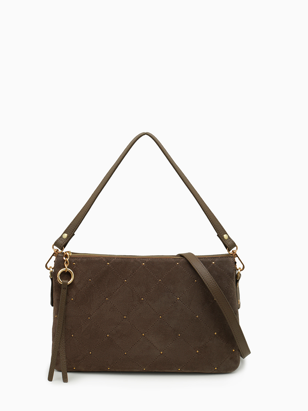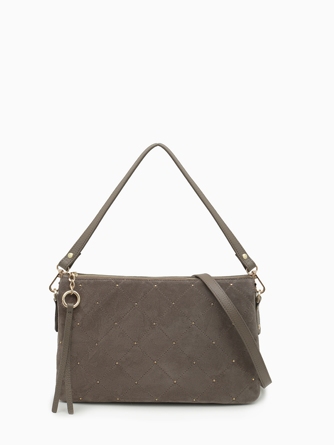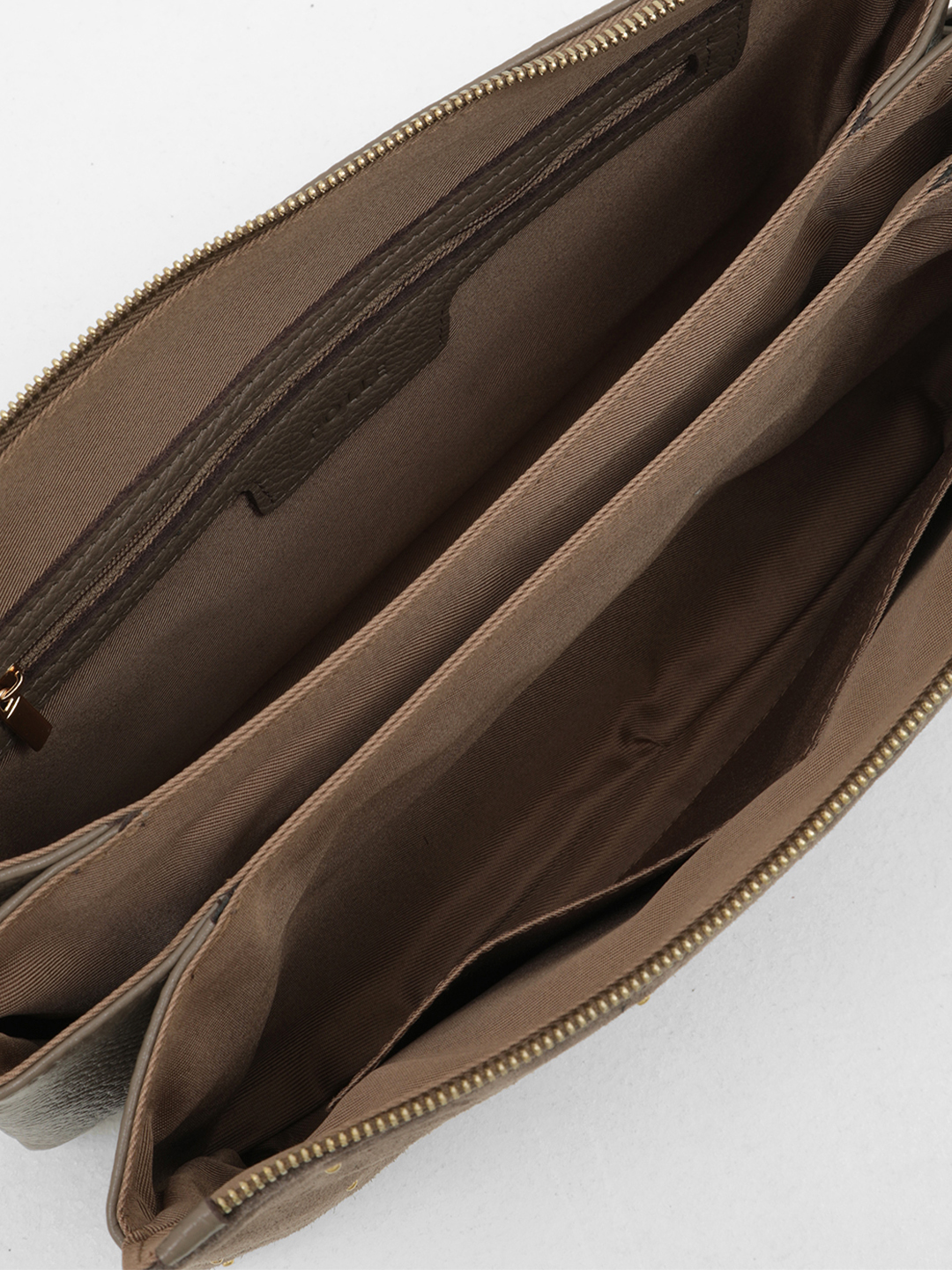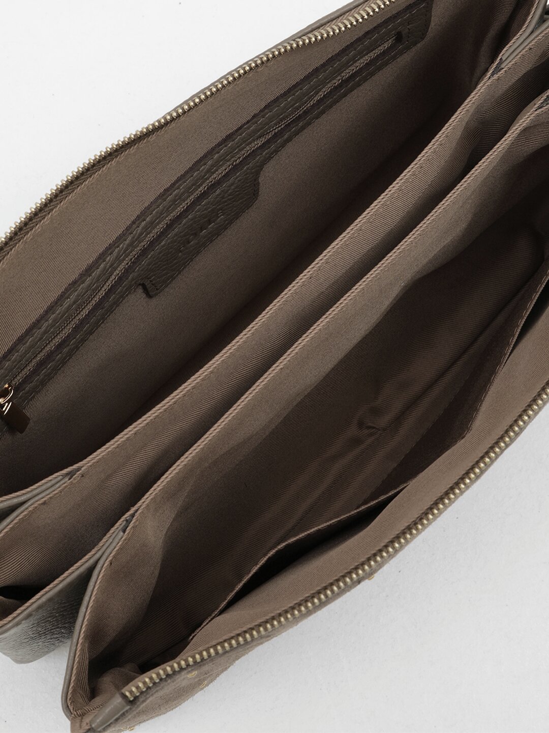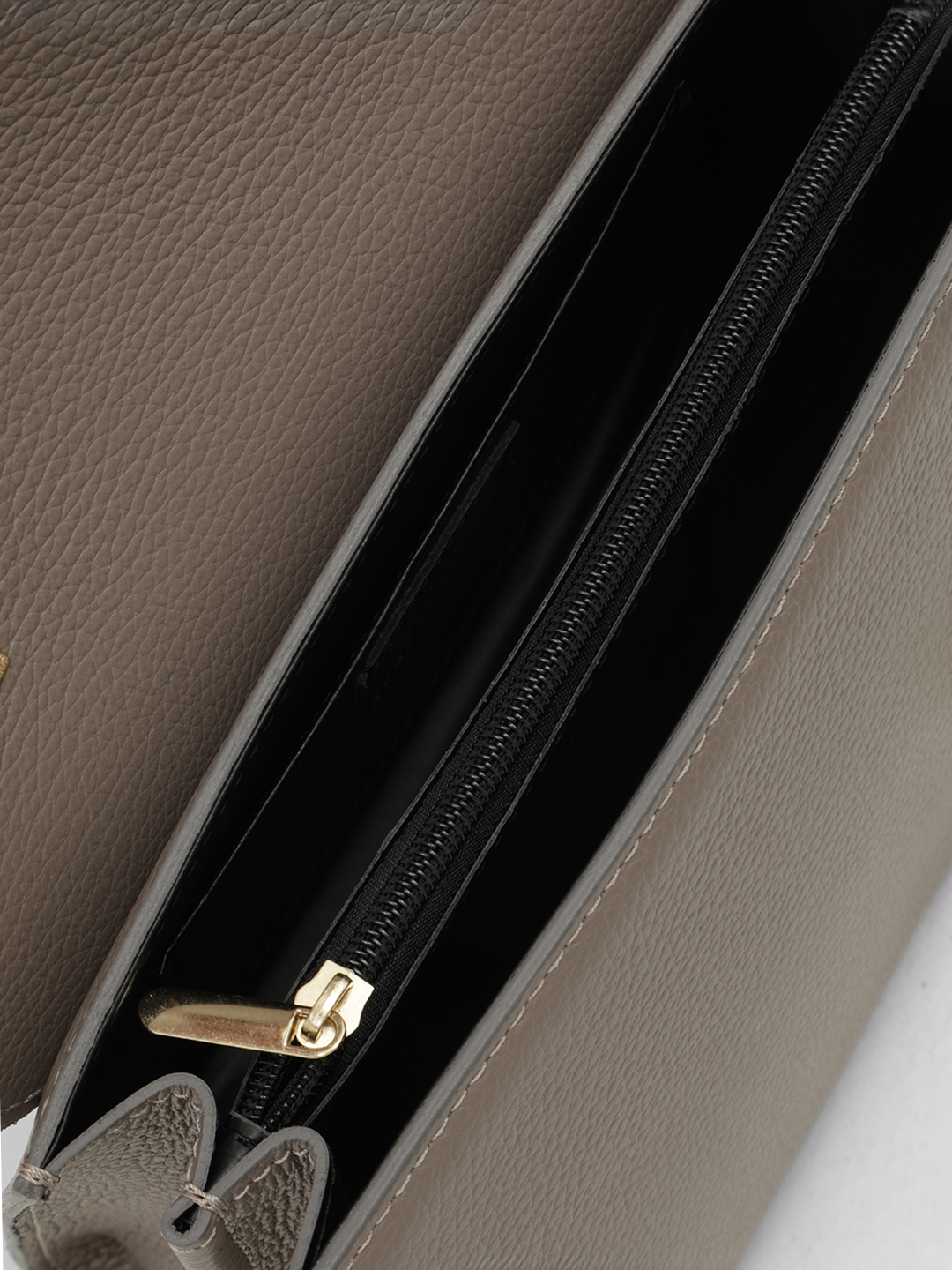 Сумка клатч прямоугольной формы из натуральной замши и кожи цвета таупе от FOLLE