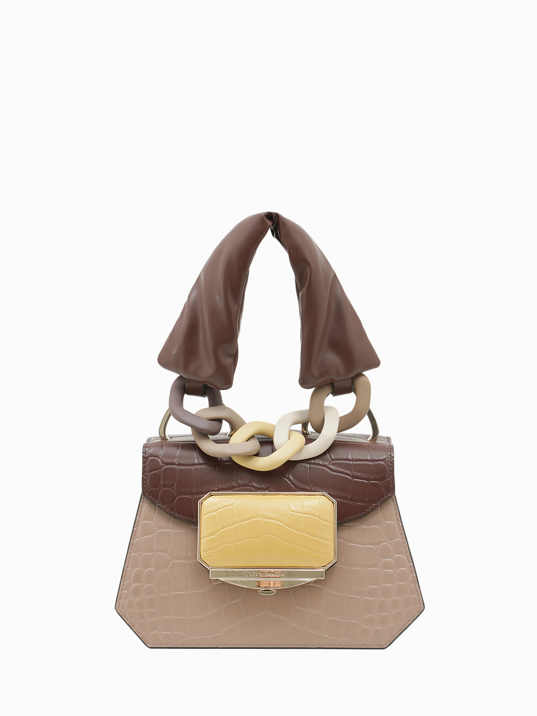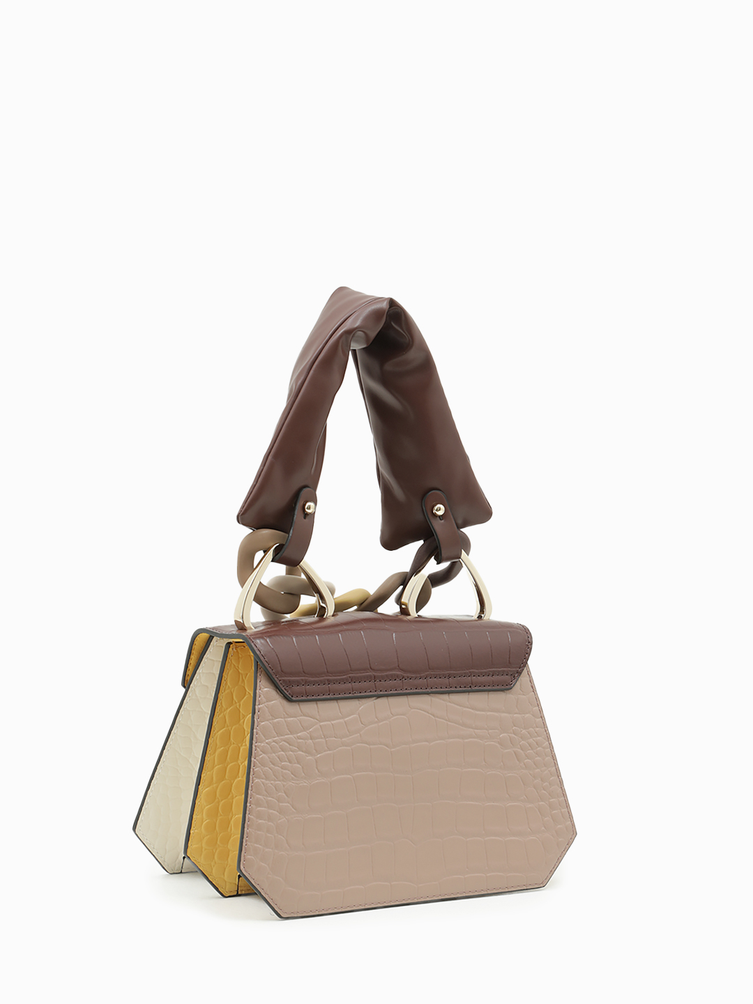 Сэтчел от Cromia в натуральной коже с выделкой под крокодила с акцентной крупной цепочкой и мягкой ручкой