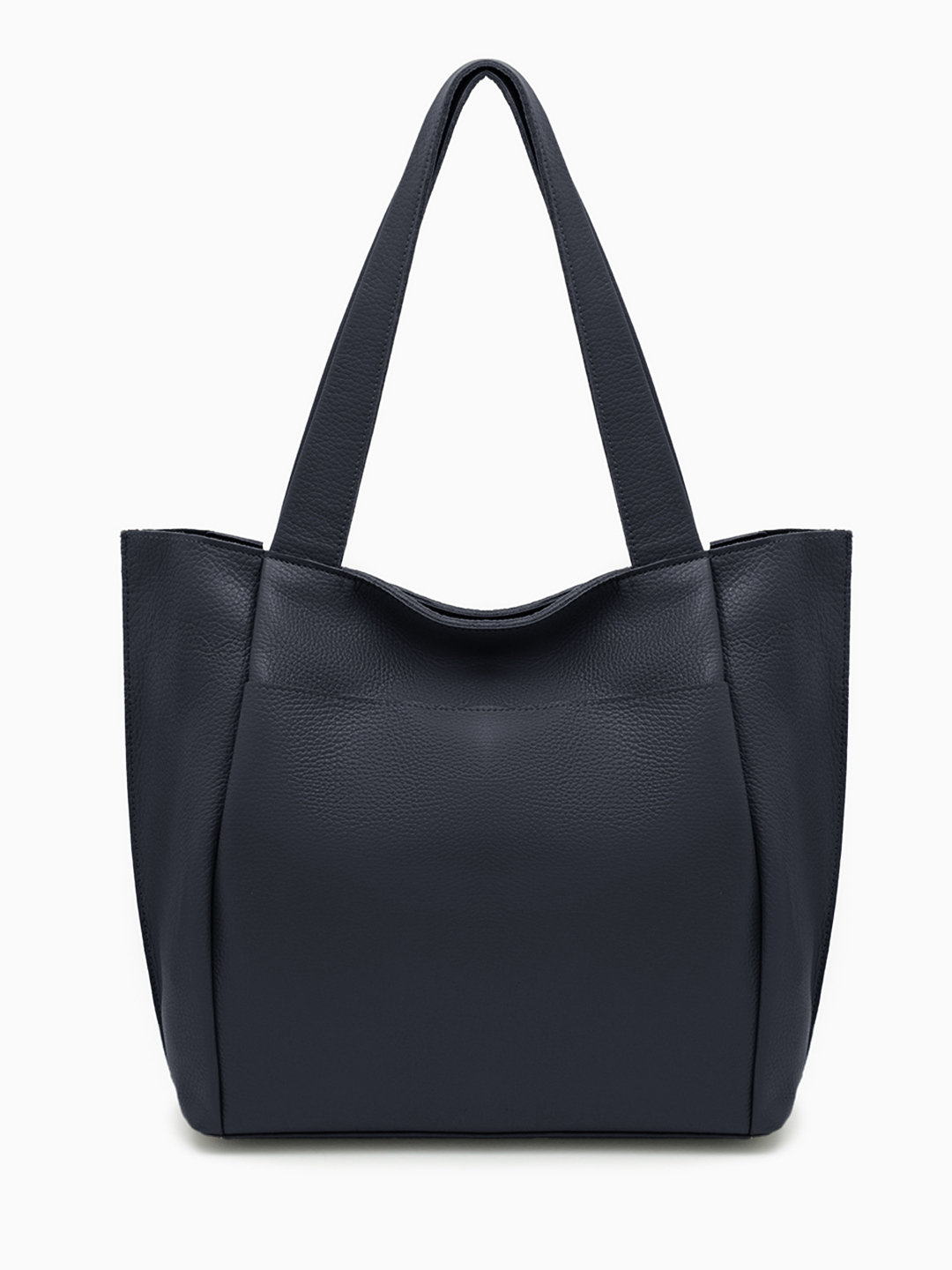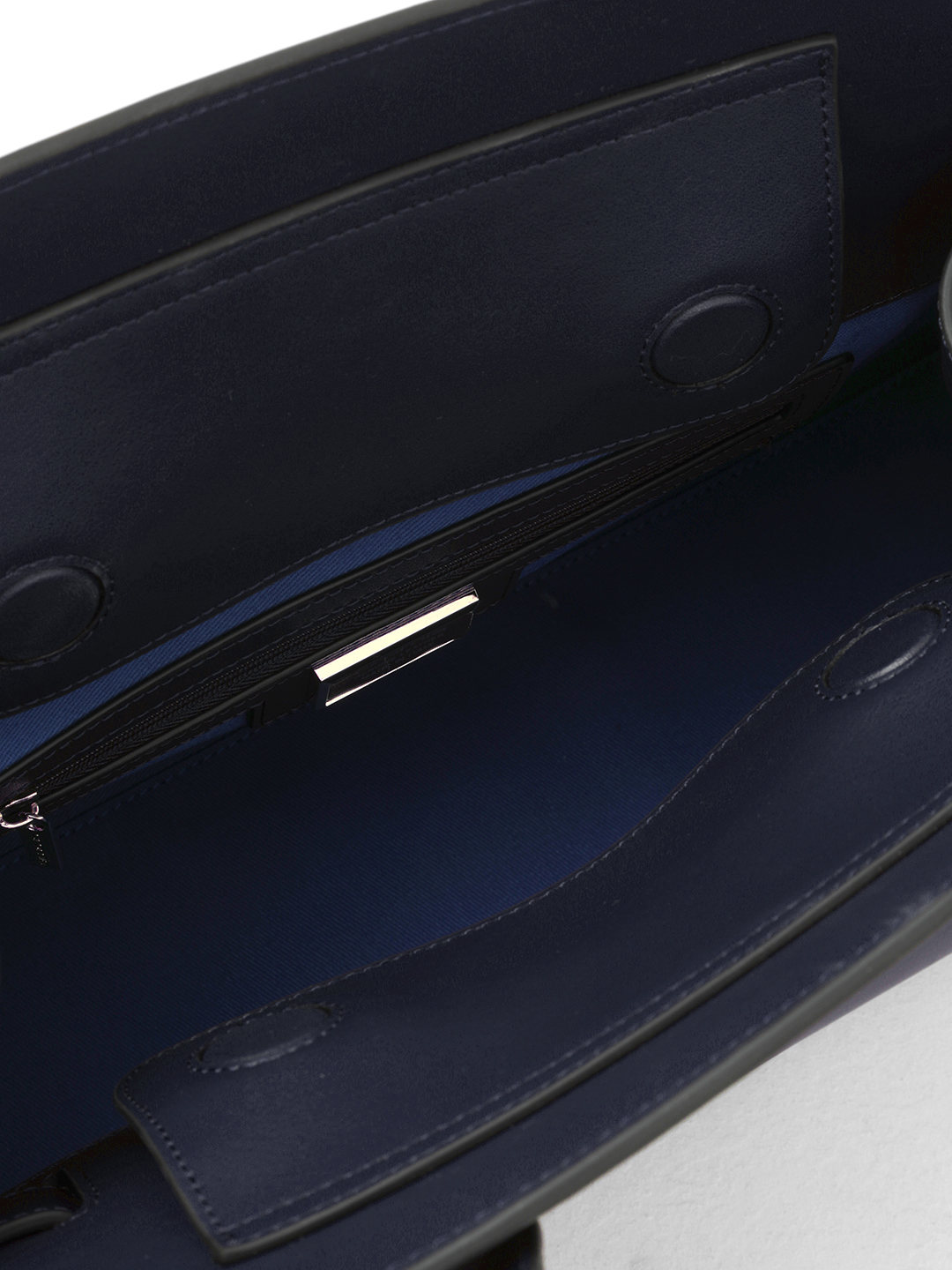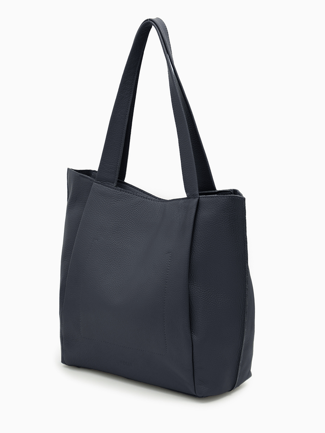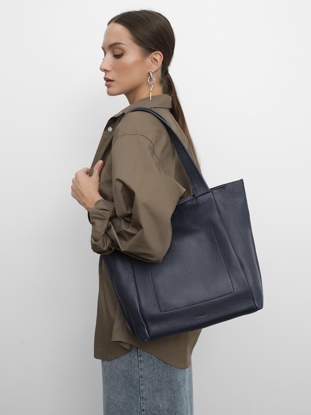 Объёмный шоппер из натуральной кожи с карманом на магните от FOLLE в синем цвете