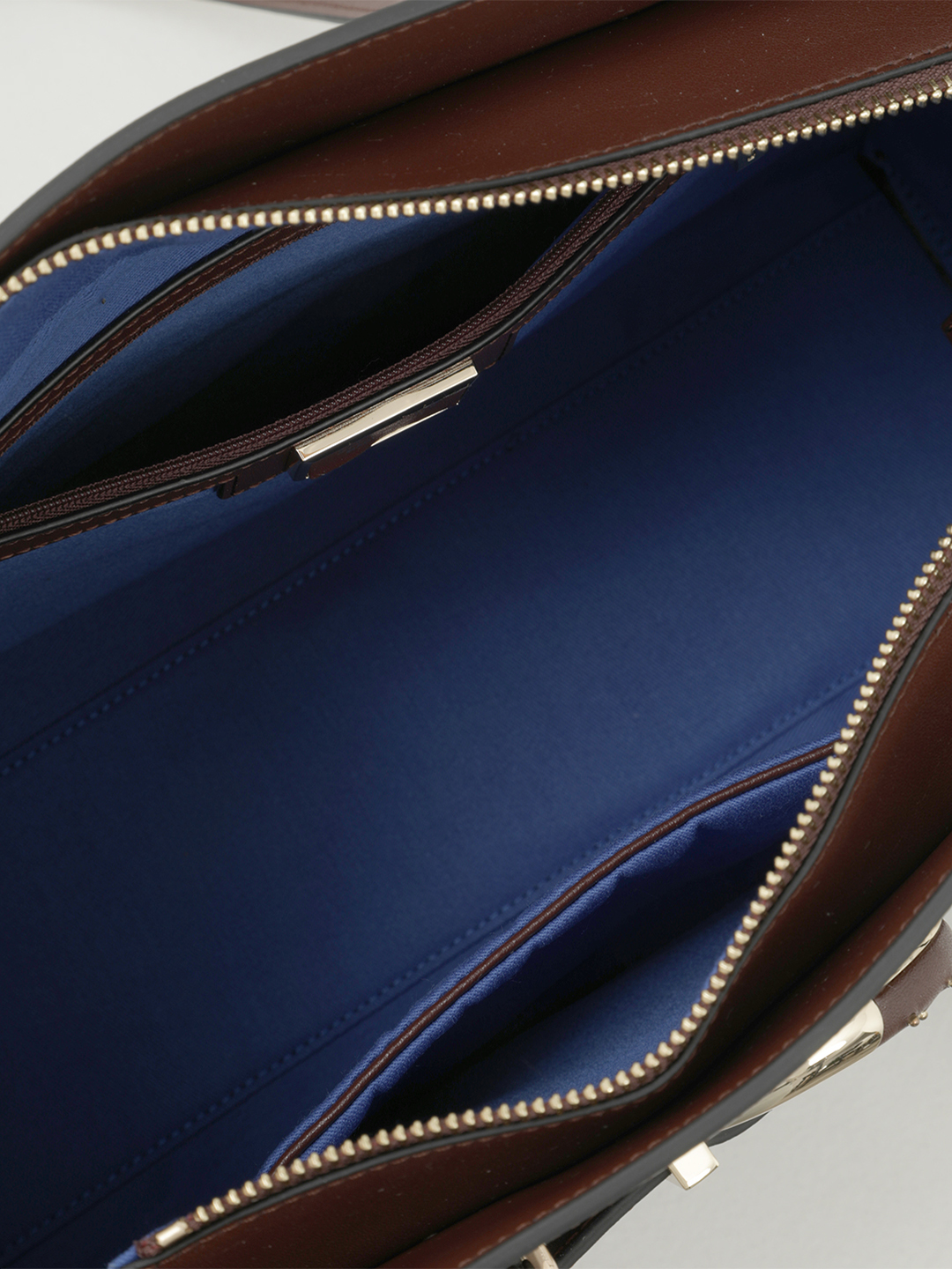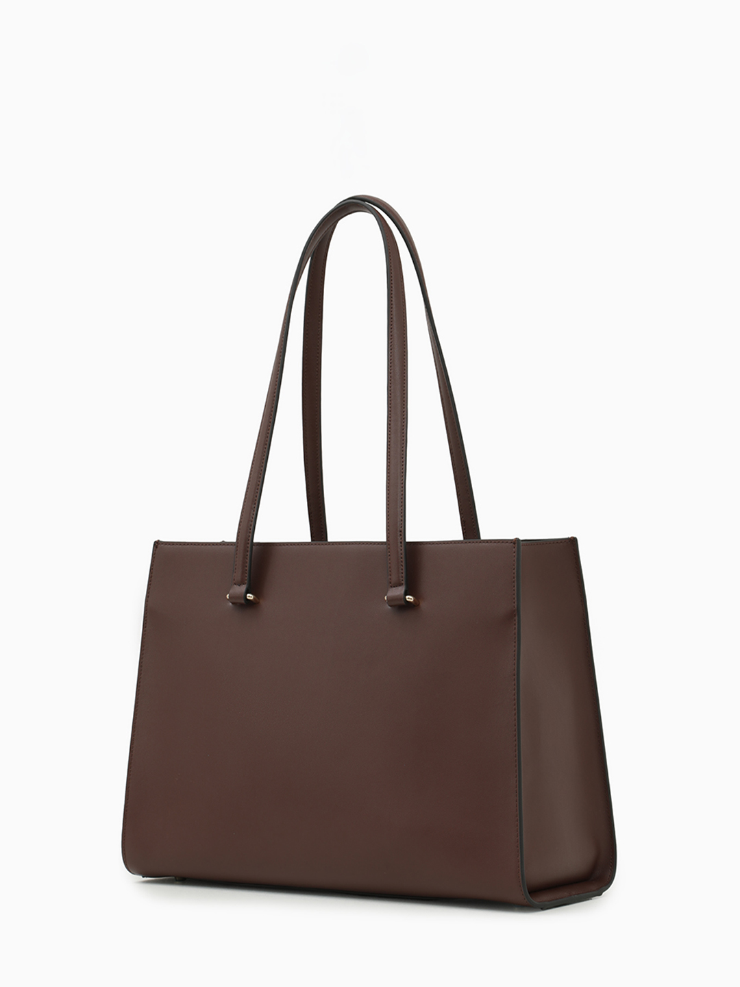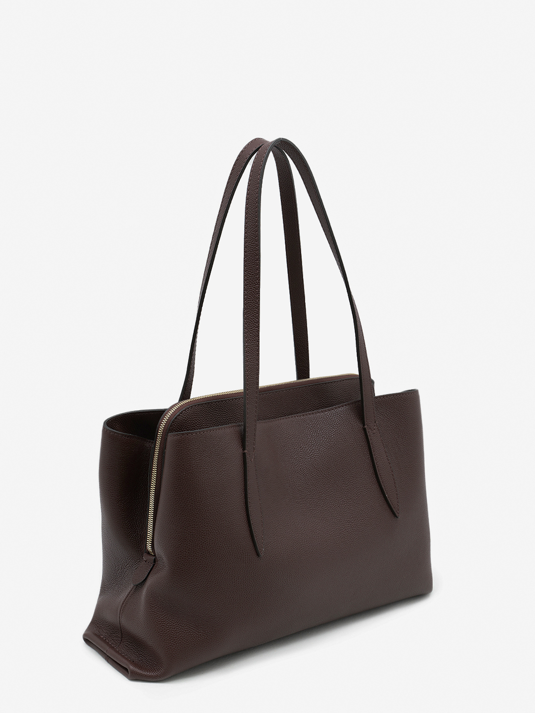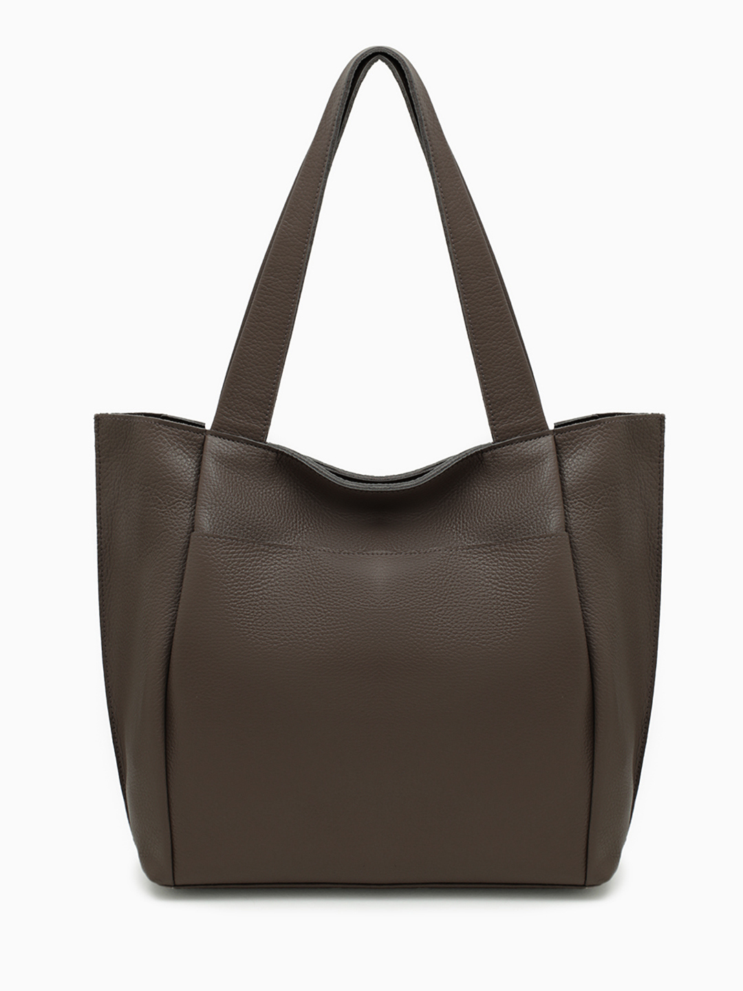 Объёмный шоппер из натуральной кожи с карманом на магните от FOLLE в шоколадном оттенке