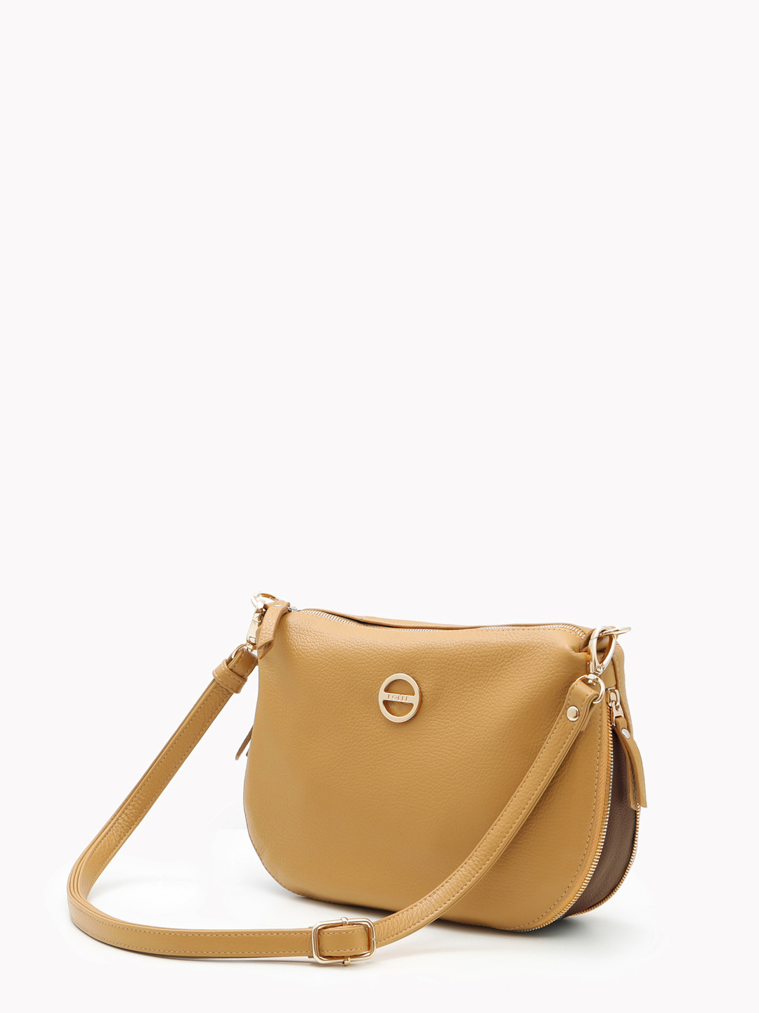 Кросс-боди на плечо с металлическим логотипом FOLLE в горчичном оттенке с шоколадной отделкой