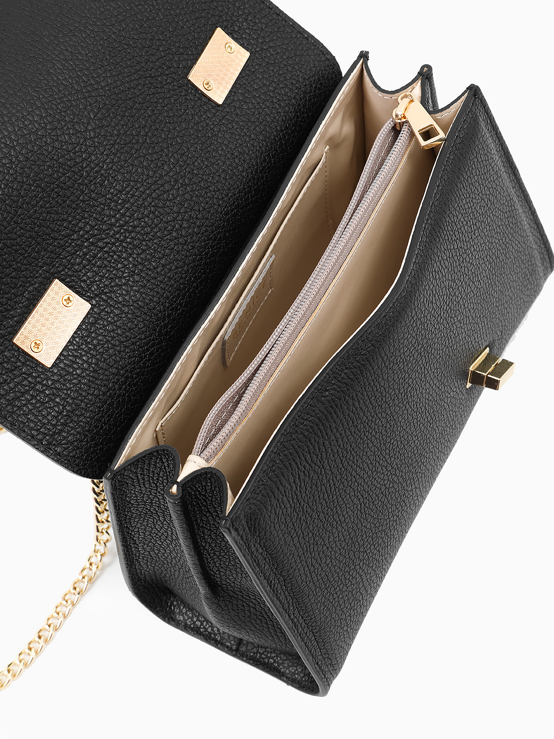 Кросс-боди на плечо с металлическим логотипом FOLLE в черном цвете