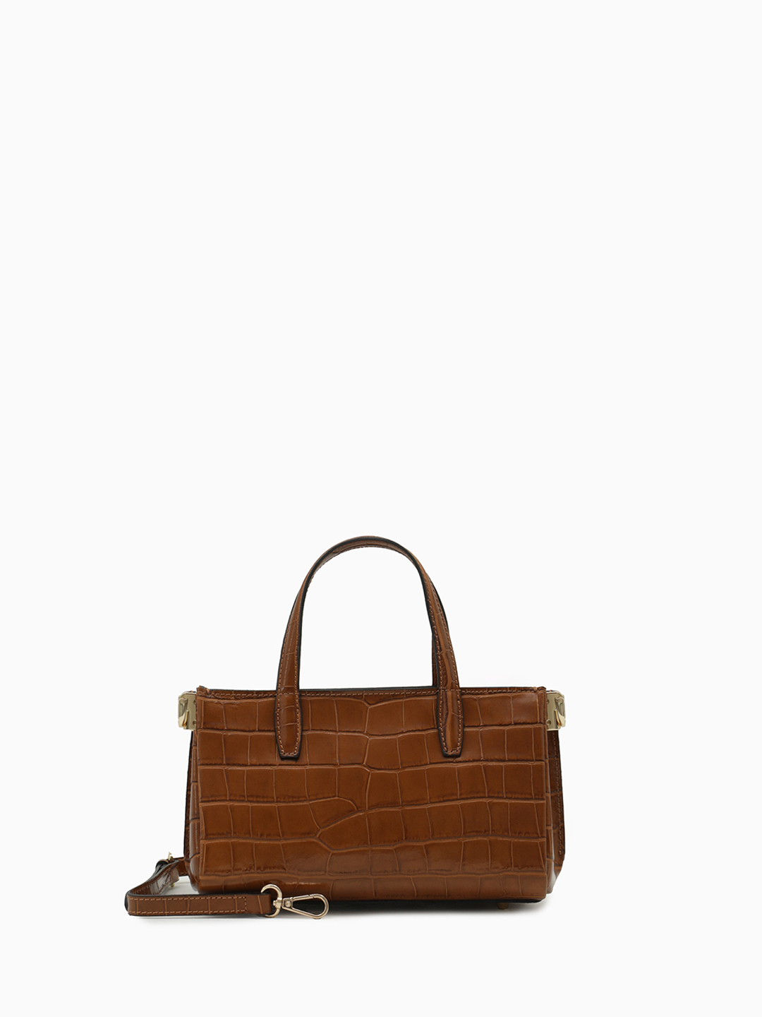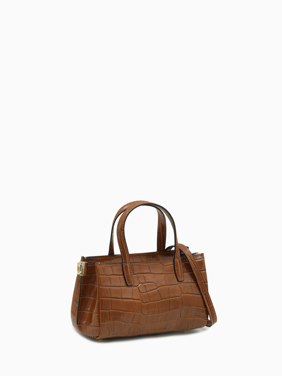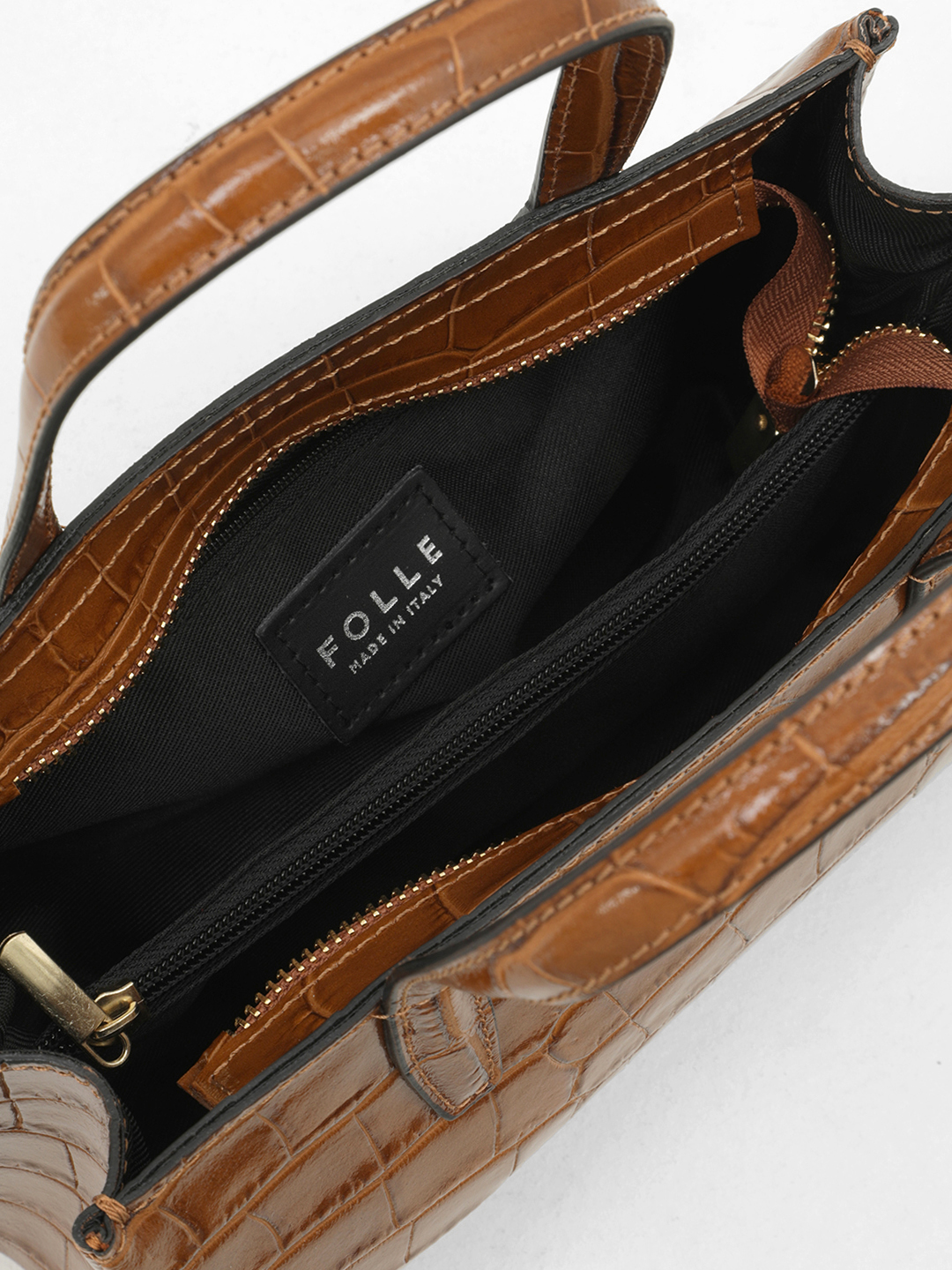 Небольшая сумка тоут через плечо от итальянского бренда FOLLE из кожи с выделкой под крокодила рыжего оттенка
