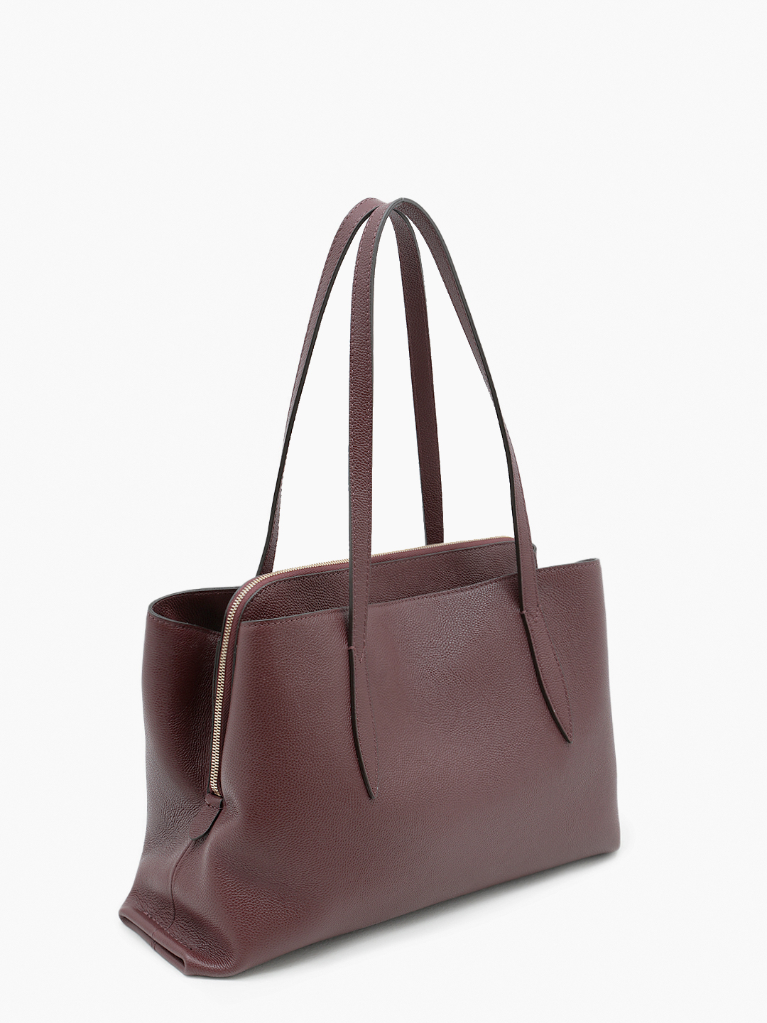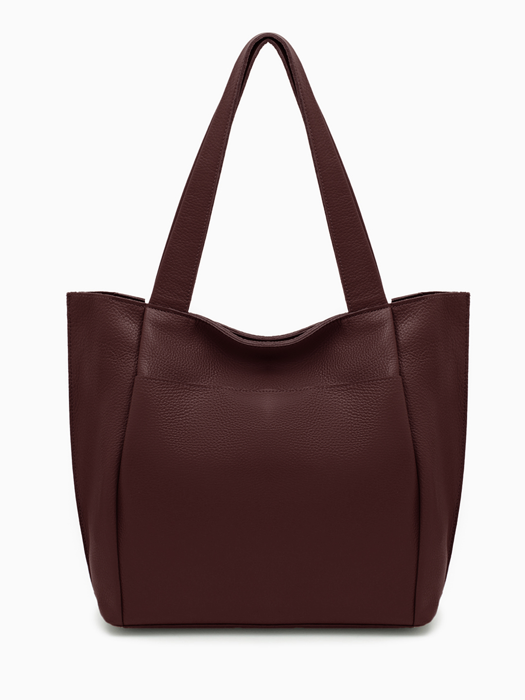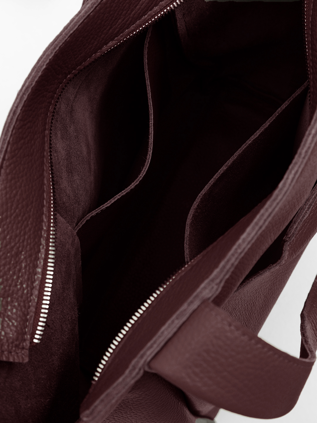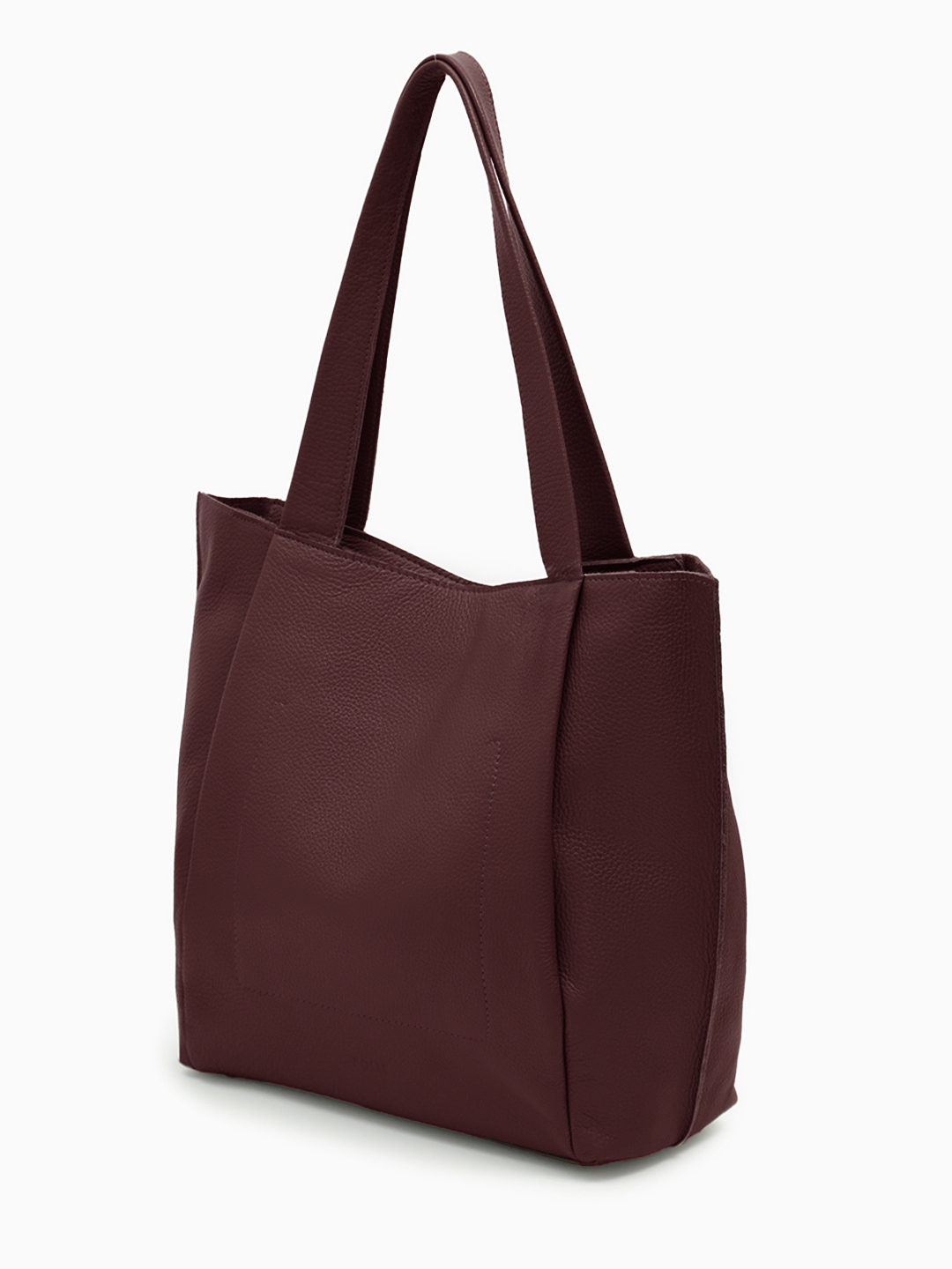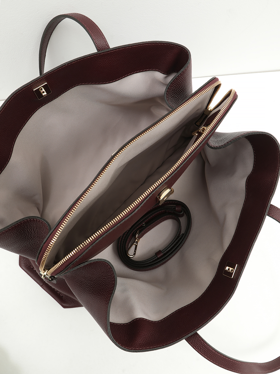 Объёмный шоппер из натуральной кожи с карманом на магните от FOLLE в бордовом оттенке