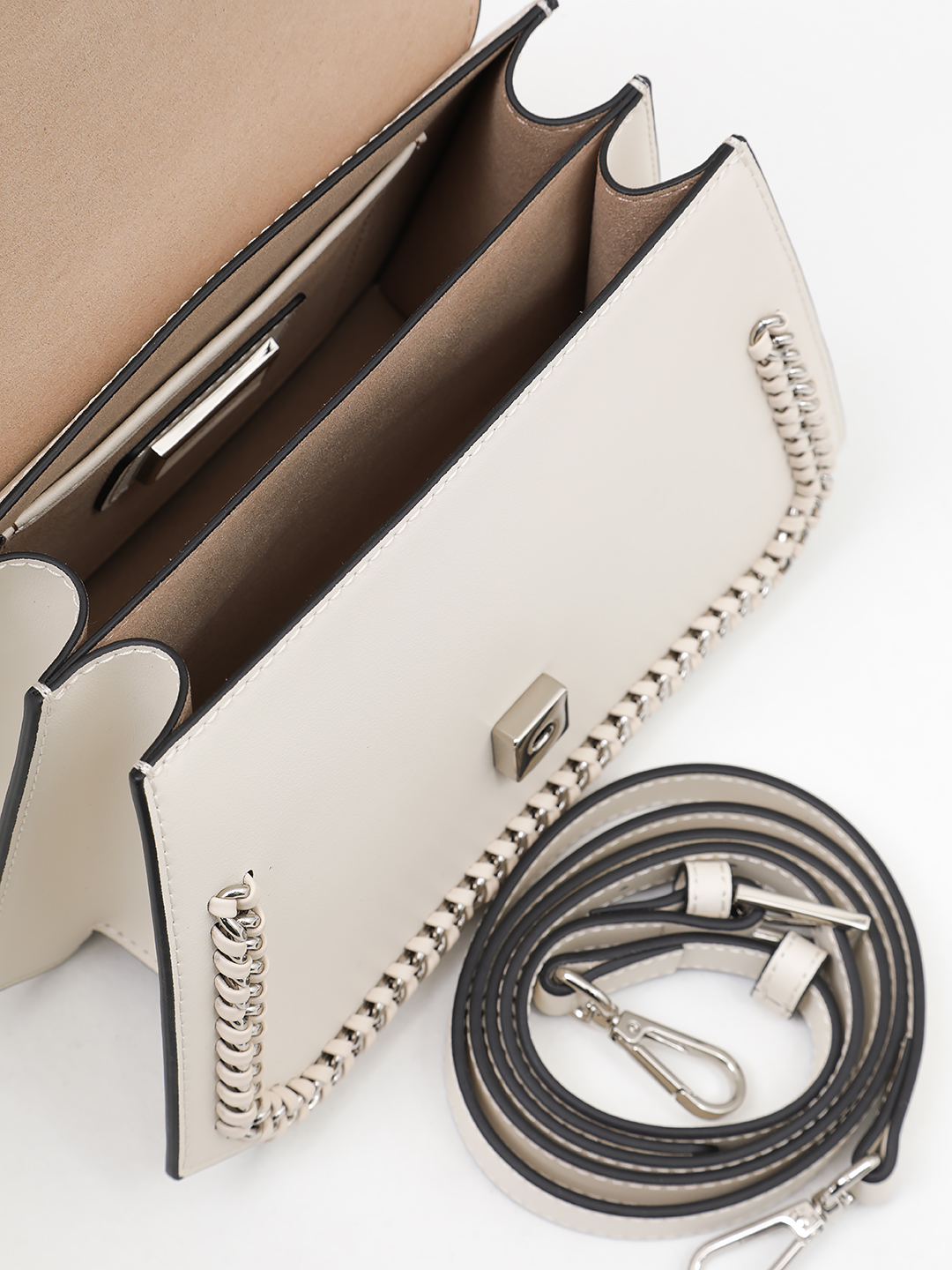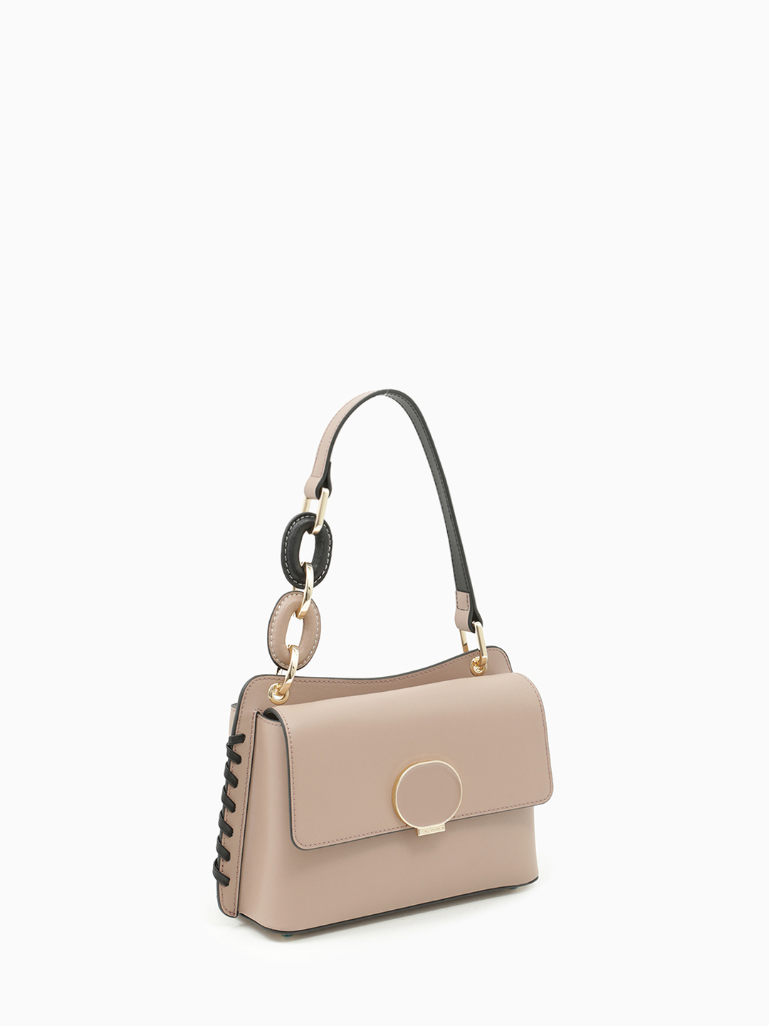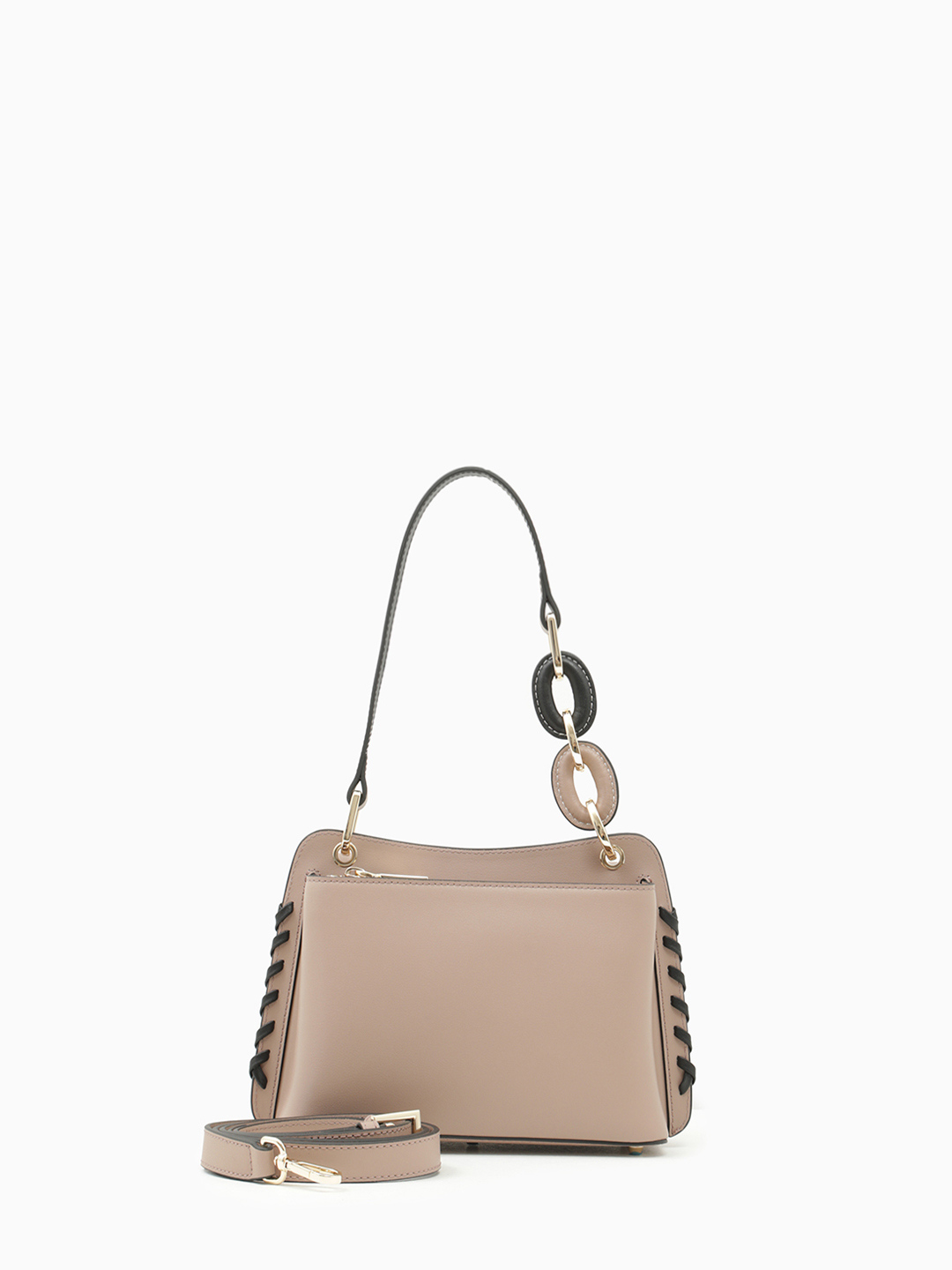 Сэтчел от Cromia в пудровом оттенке со звеньями из натуральной кожи и фирменной фурнитурой