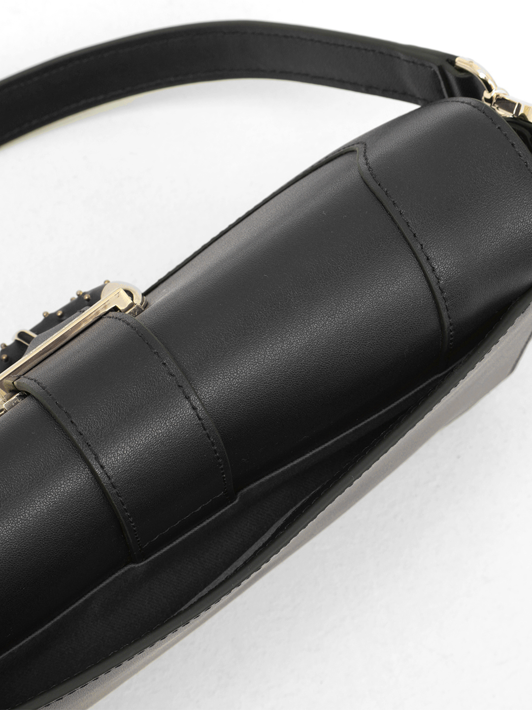 Багет от Cromia в натуральной гладкой коже черного цвета с фурнитурой в виде пряжки