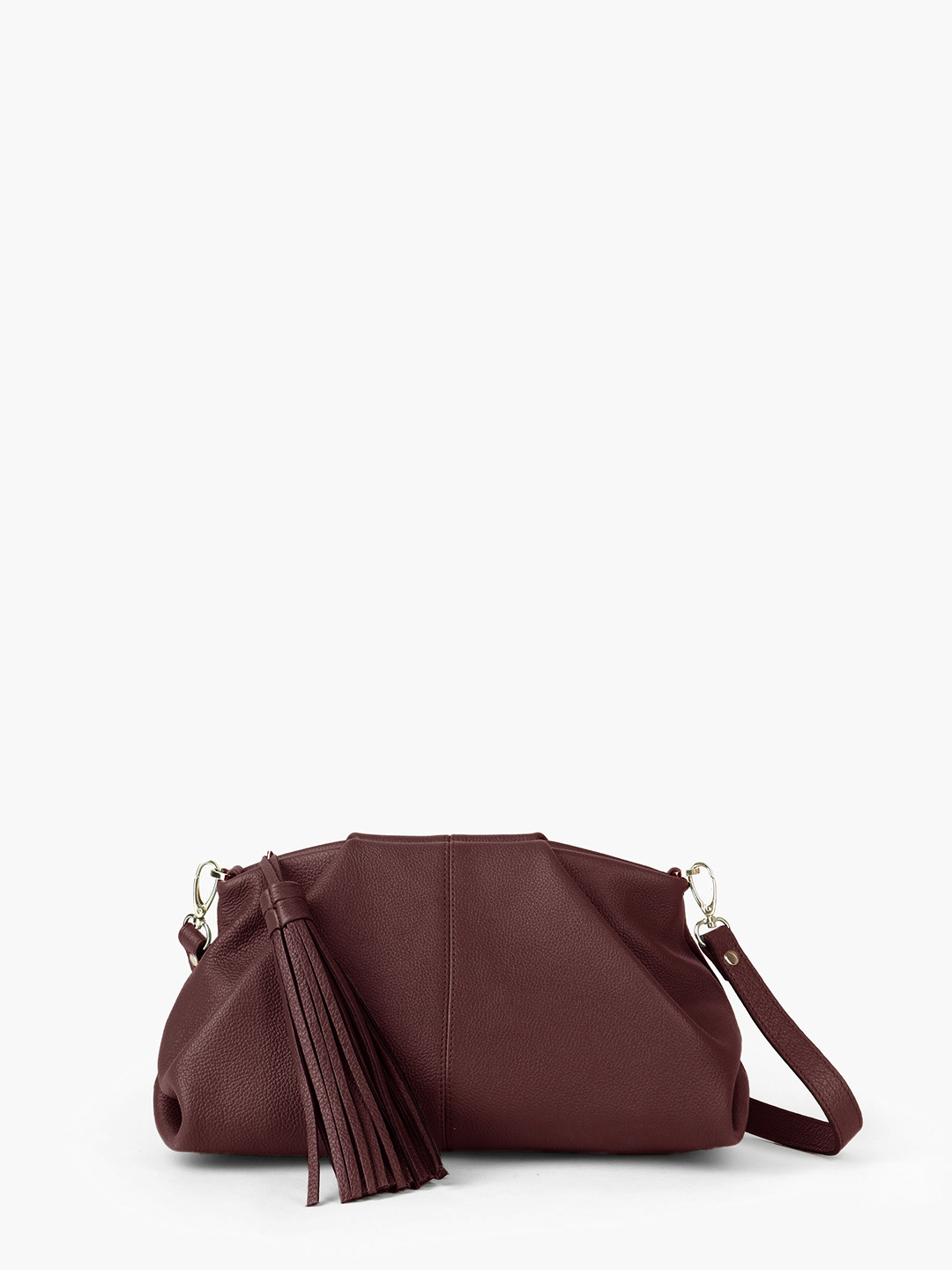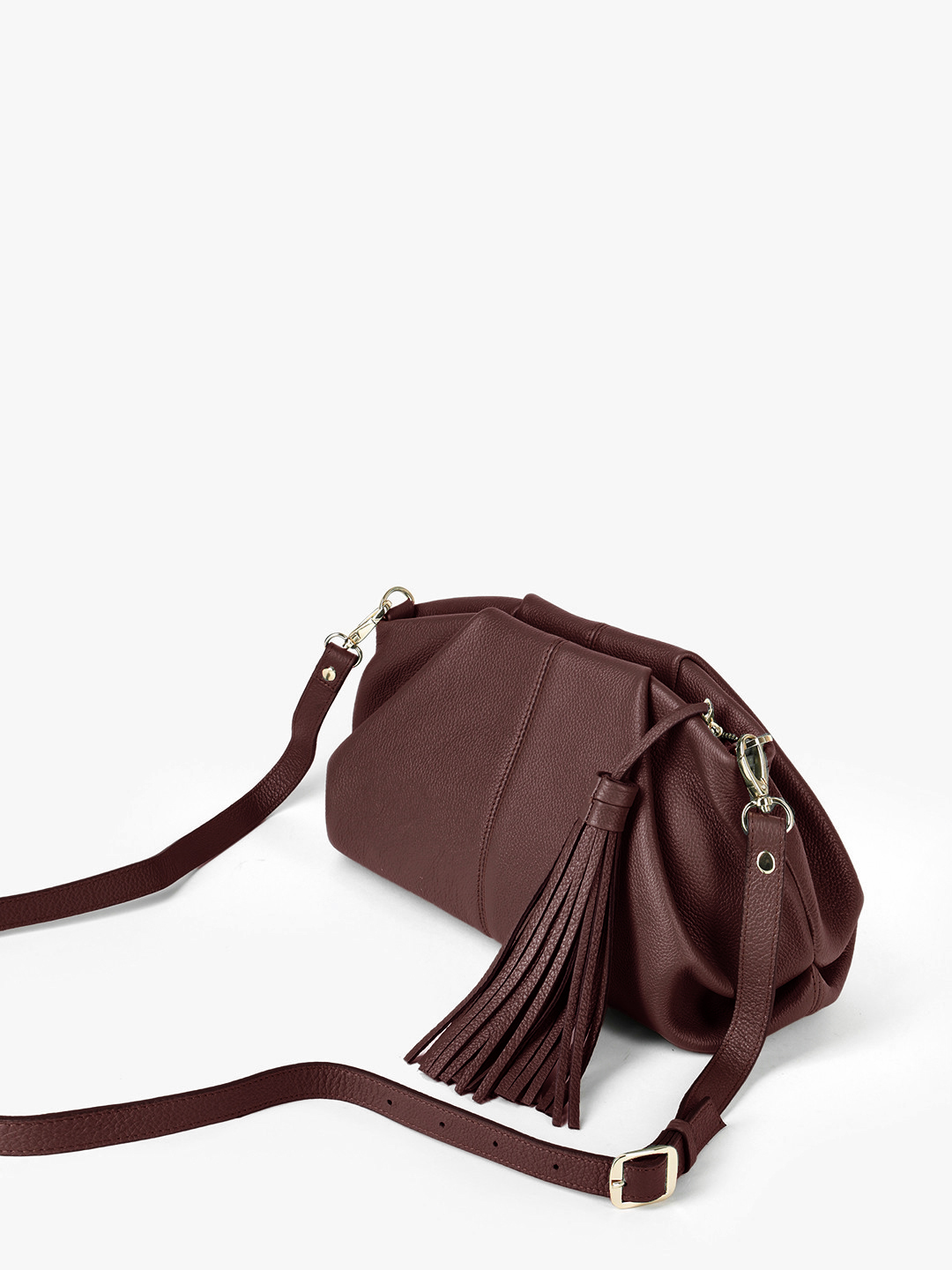 Клатч из натуральной кожи бордового цвета от FOLLE с объемной кисточкой