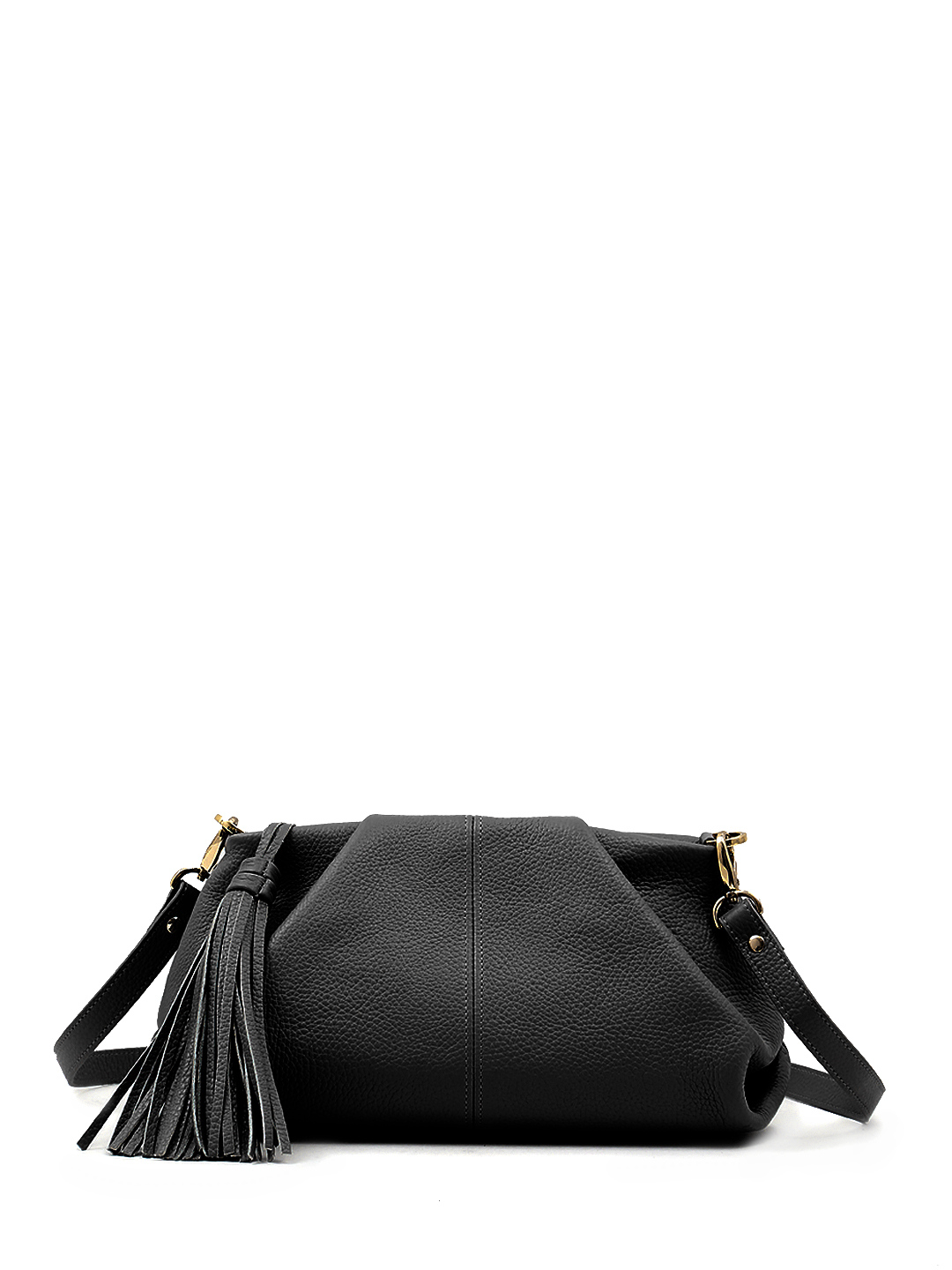 Клатч из натуральной кожи черного цвета от FOLLE с объемной кисточкой