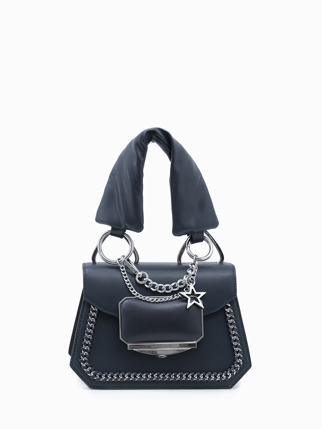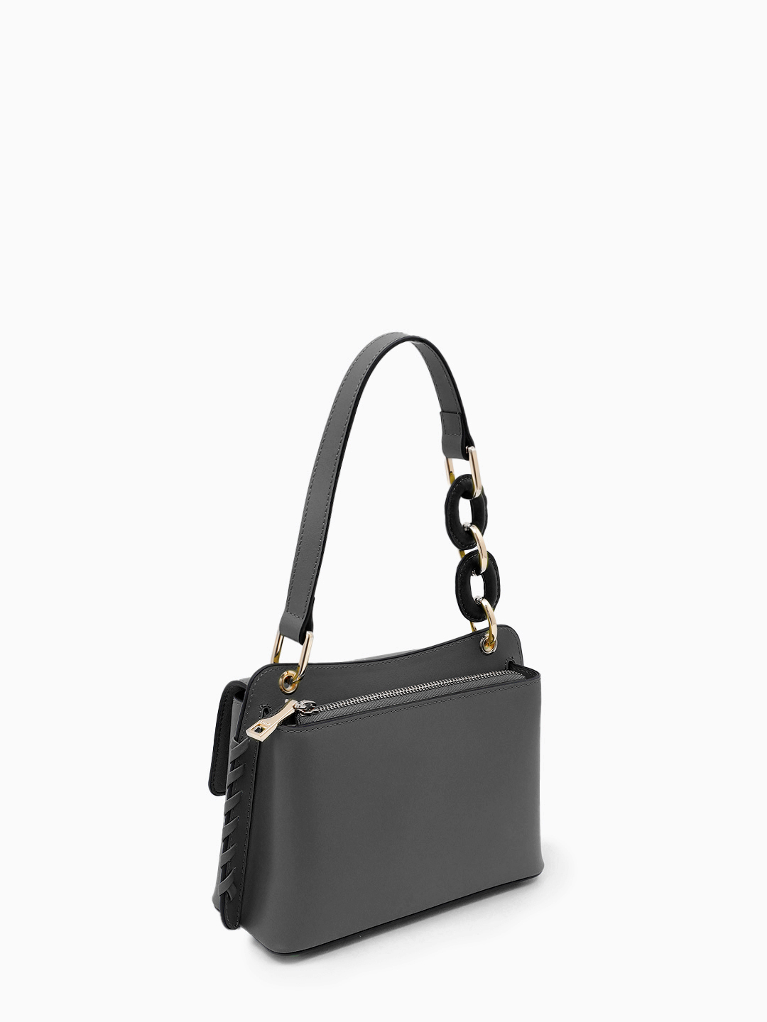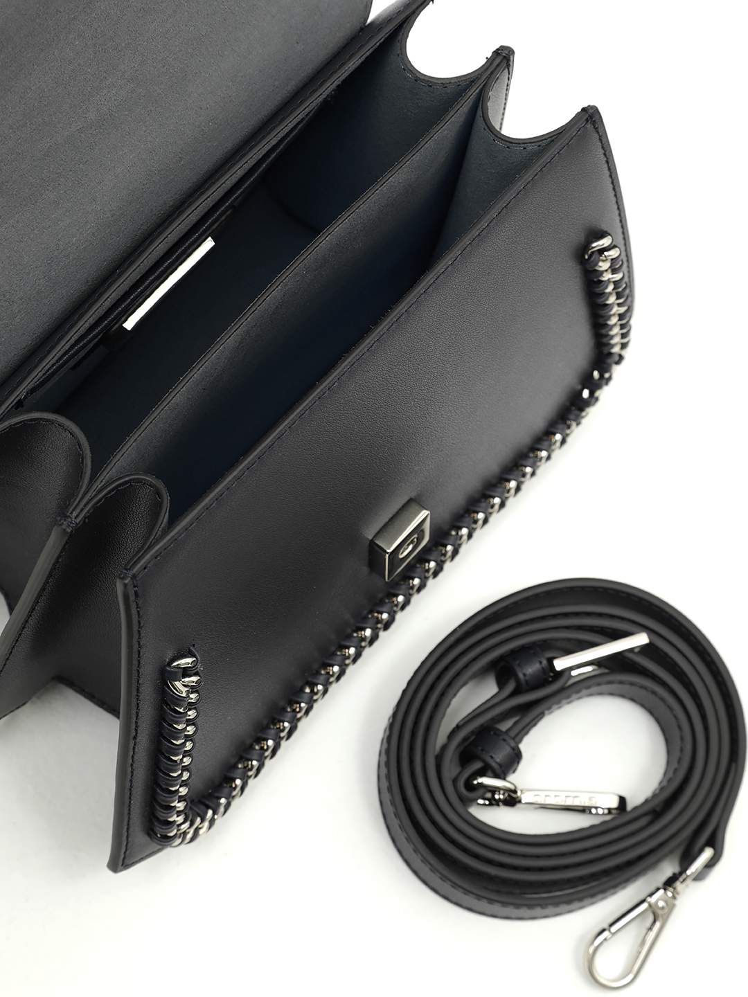 Сэтчел от Cromia в черном цвете со звеньями из натуральной кожи и фирменной фурнитурой