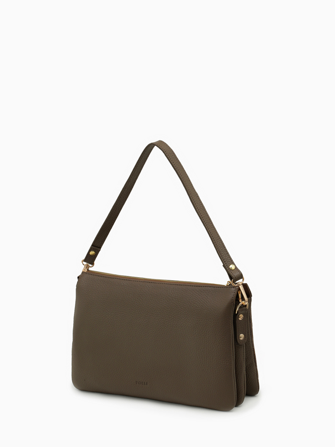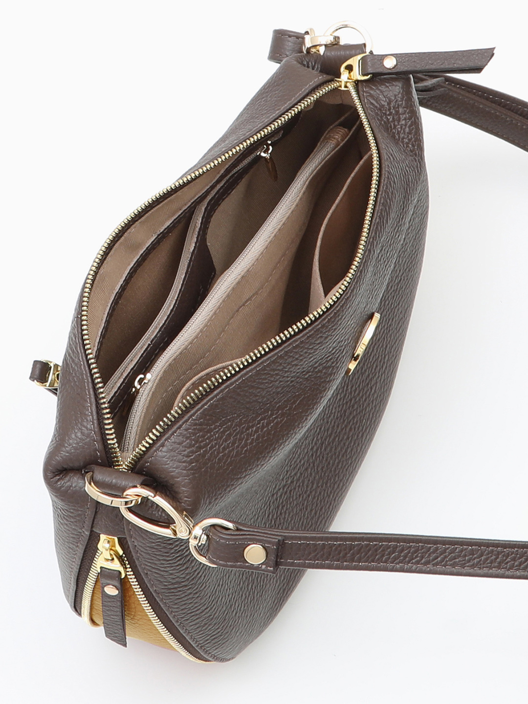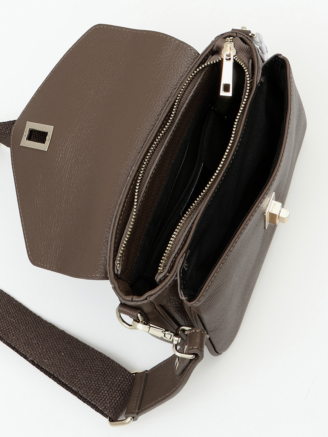 Сумка кросс-боди от итальянского бренда FOLLE из натуральной кожи шоколадного оттенка