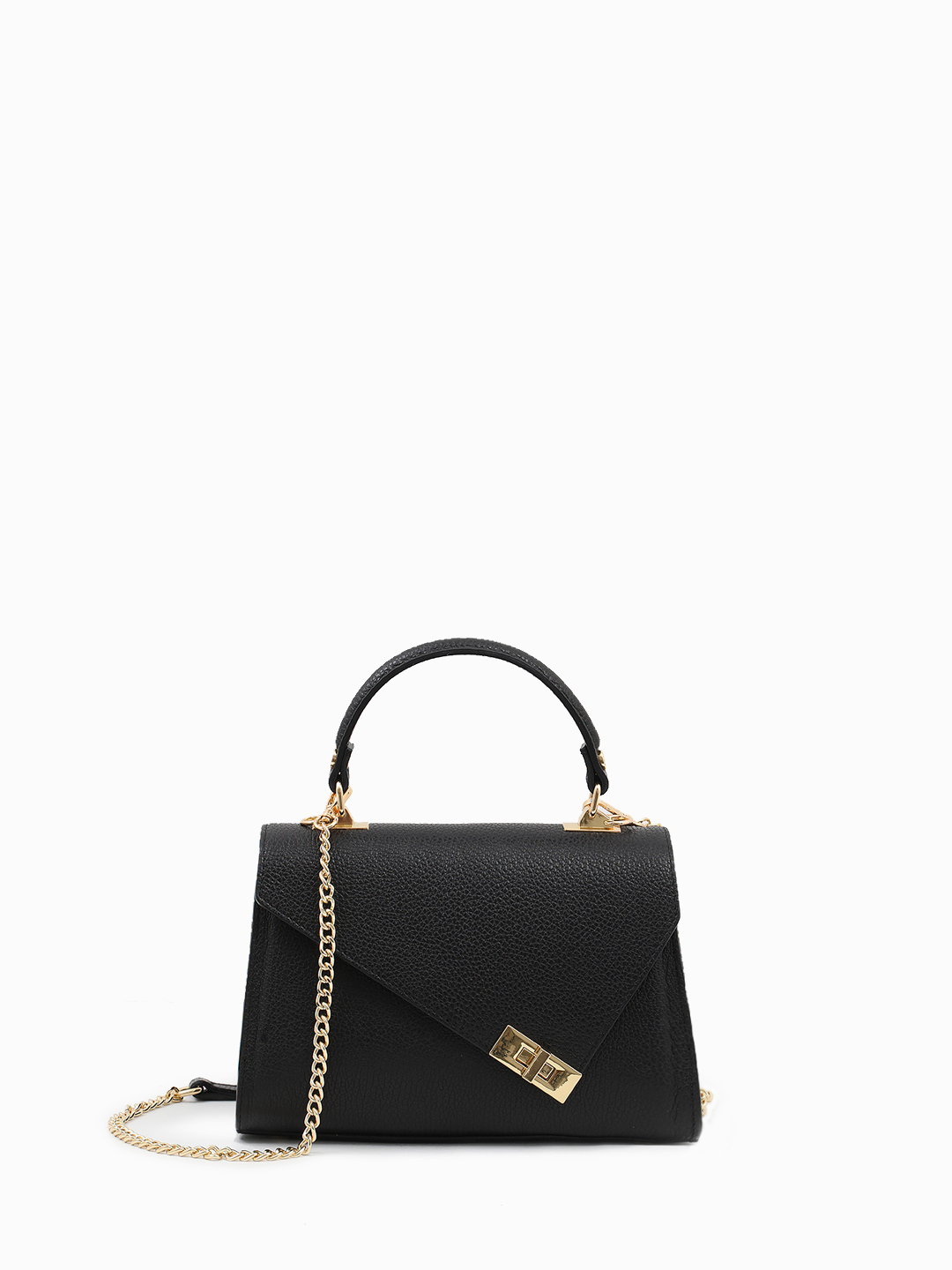 Сумка-сэтчел с треугольным клапаном от BE NICE из натуральной кожи чёрного цвета