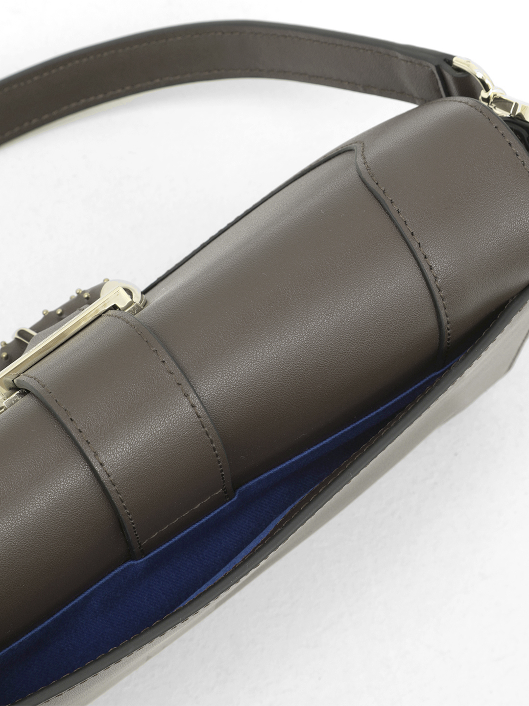 Багет от Cromia в натуральной гладкой коже цвета тауп с фурнитурой в виде пряжки