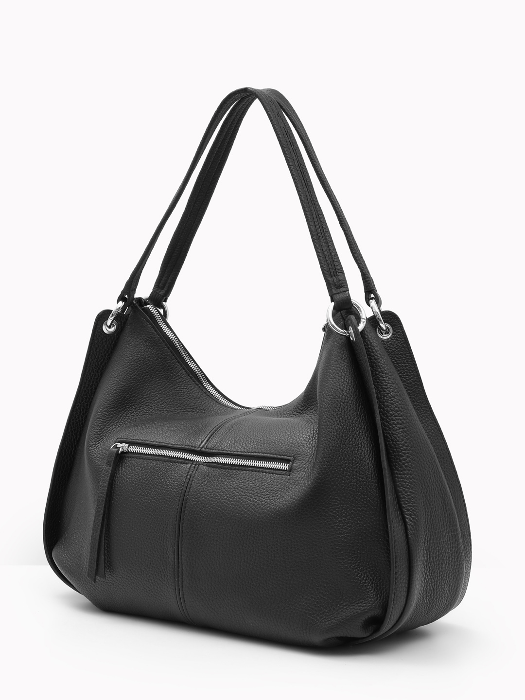 Базовая сумка хобо от бренда FOLLE в черной натуральной коже