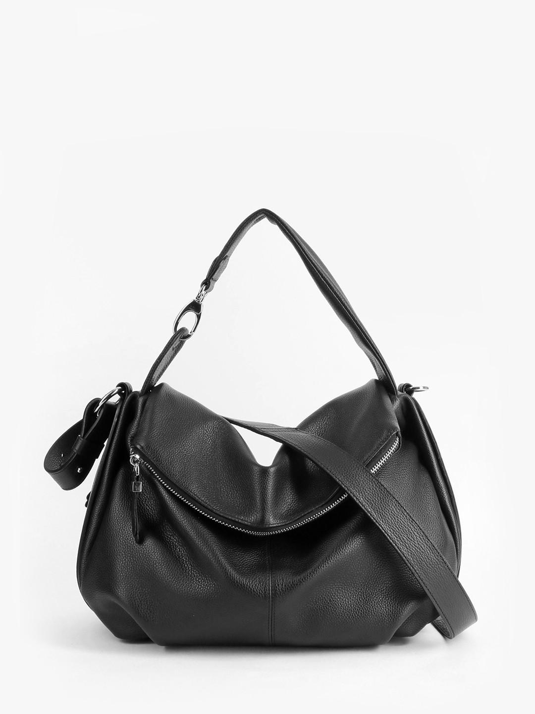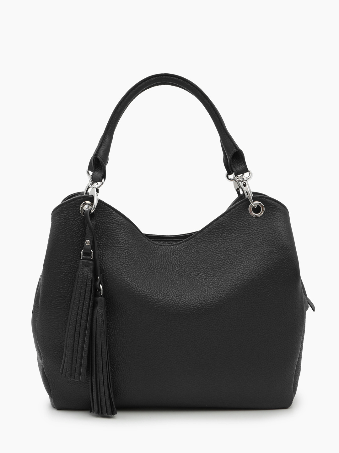 Сумка-хобо из зернистой чёрной кожи с двумя кисточками от KELLEN