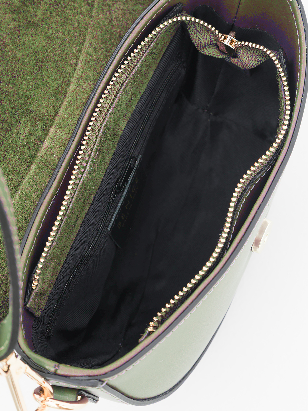 Небольшой боулер SOFIA с клапаном от BE NICE из натуральной кожи оливкового цвета