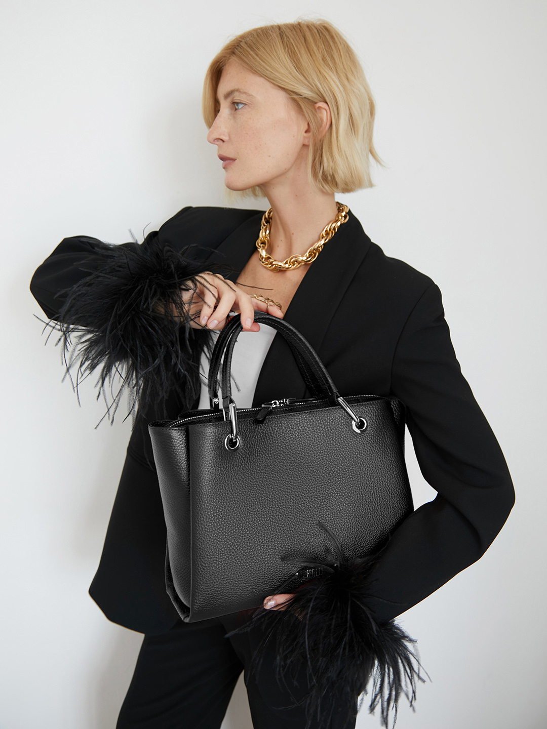Сумка-тоут с патчем из металлических букв от KELLEN в чёрном цвете