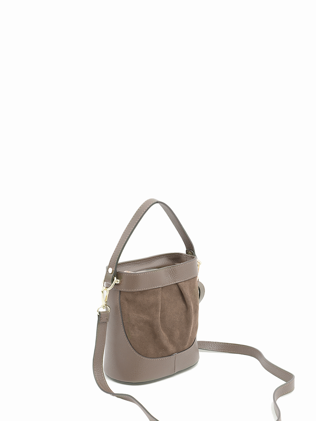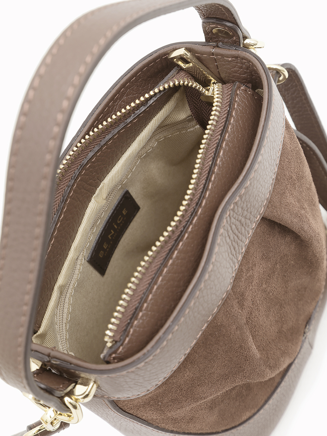 Небольшая сумка в цвете тауп из натуральной кожи и замши от BE NICE