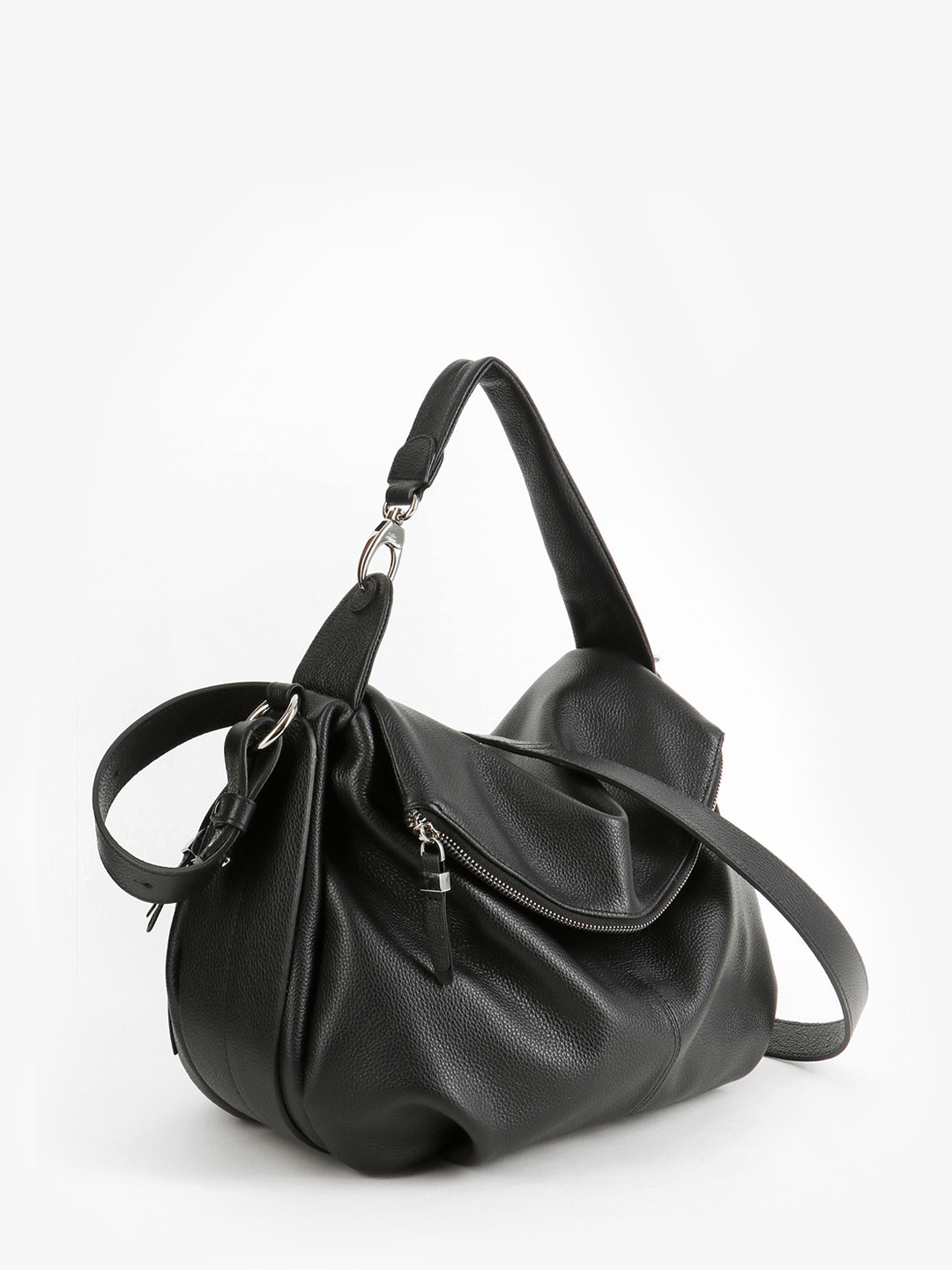 Мягкий мешок с поворотной серебристой фурнитурой от KELLEN в чёрном цвете