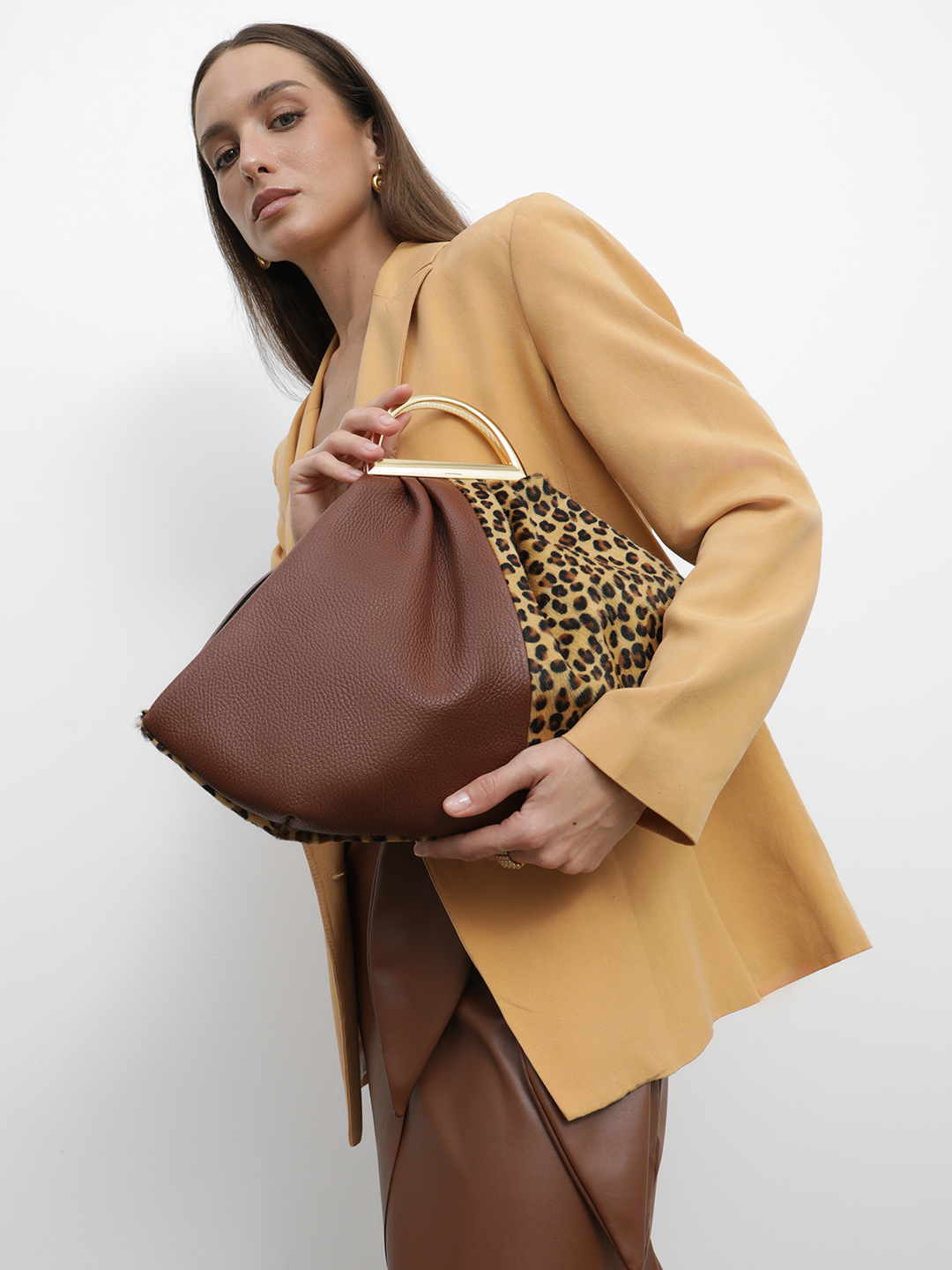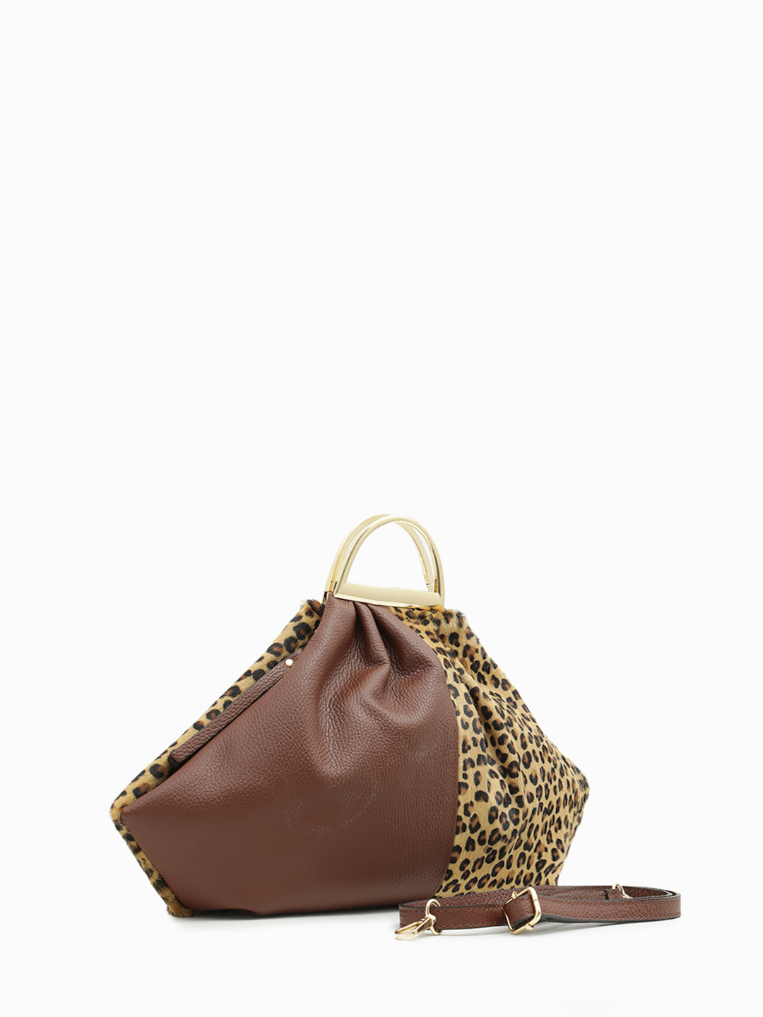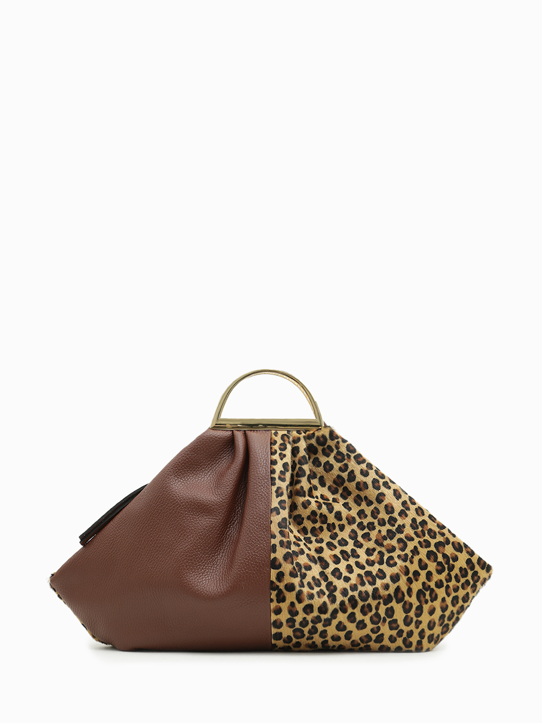 Сумка трапеция AMBRA из натуральной кожи и меха с принтом леопард от BE NICE